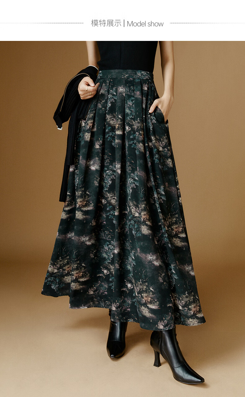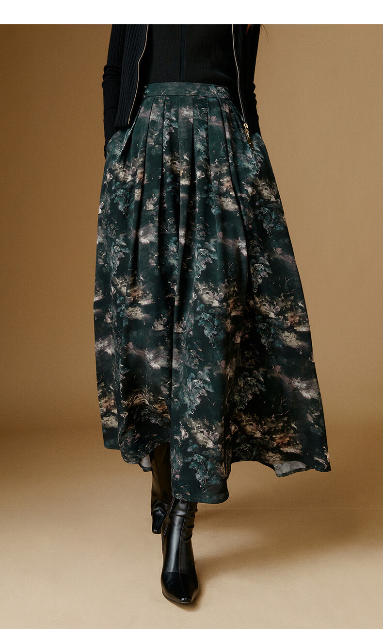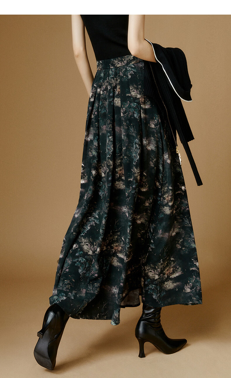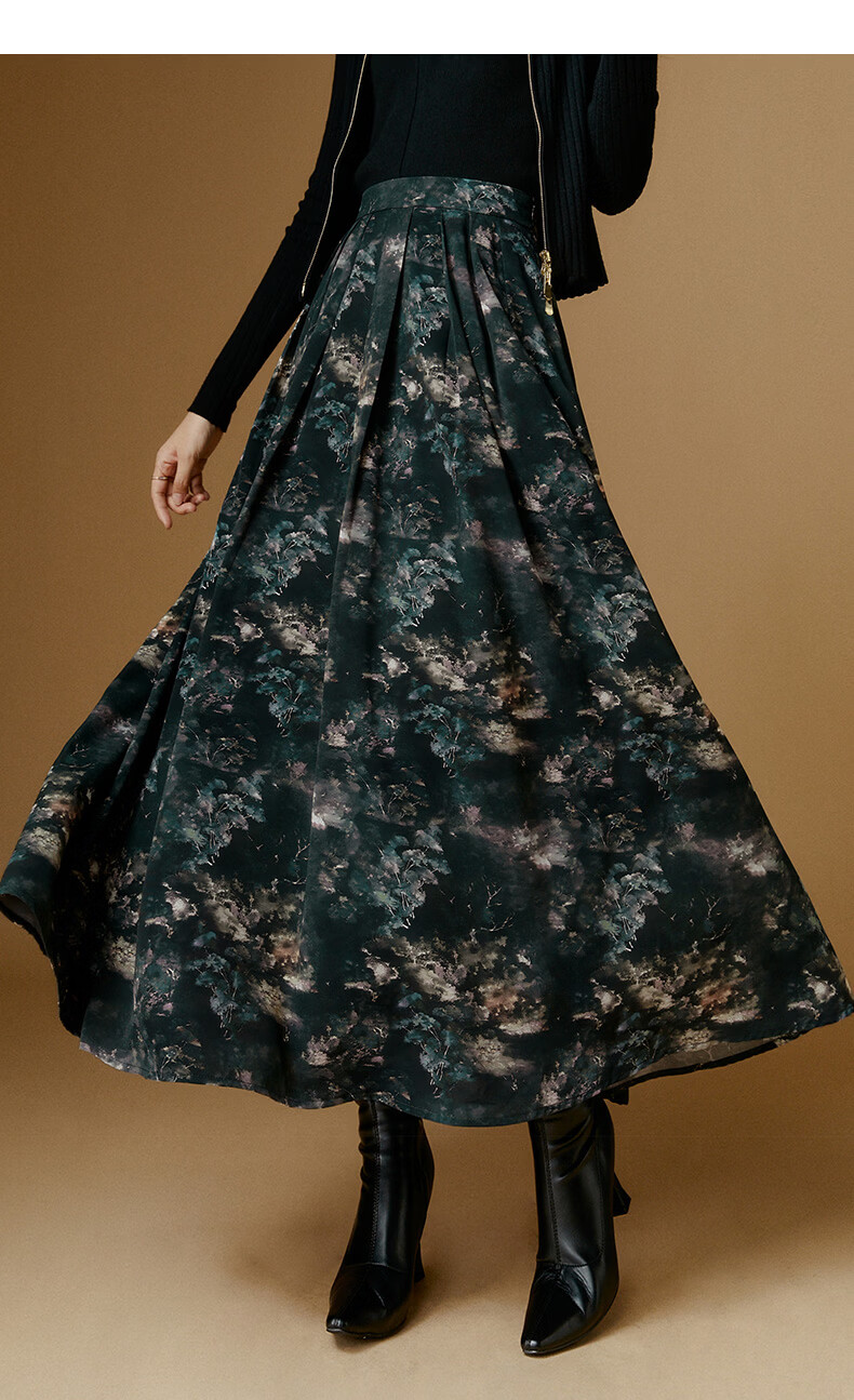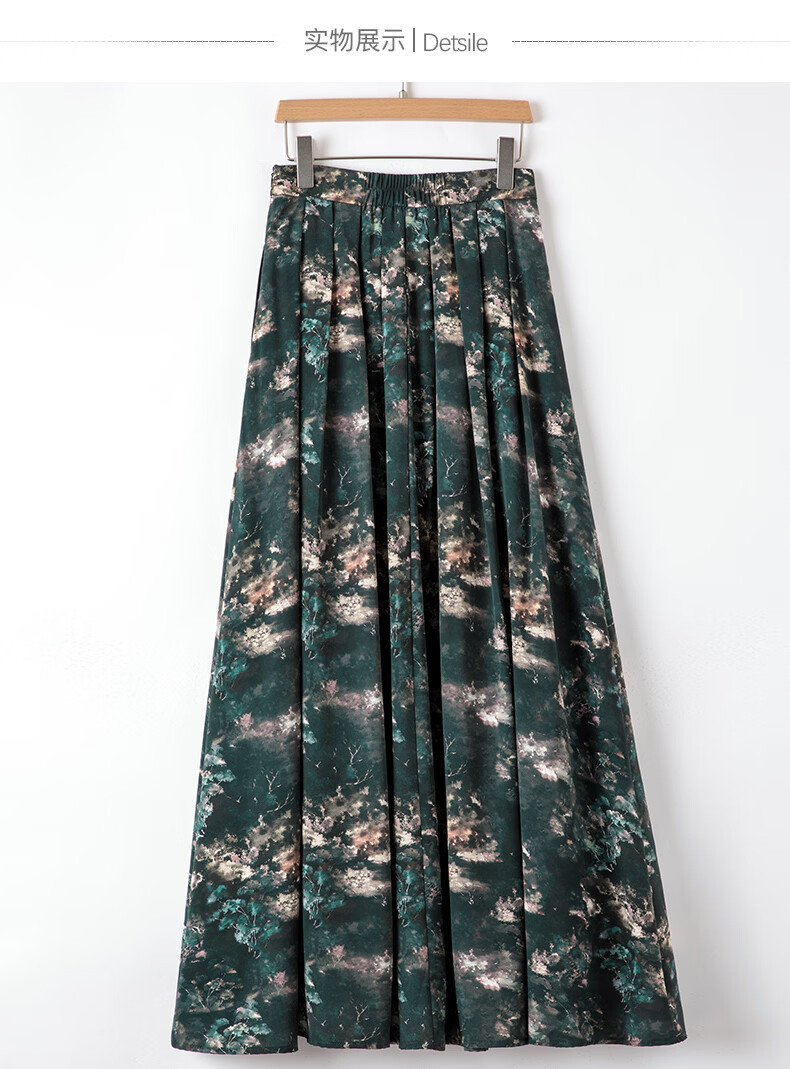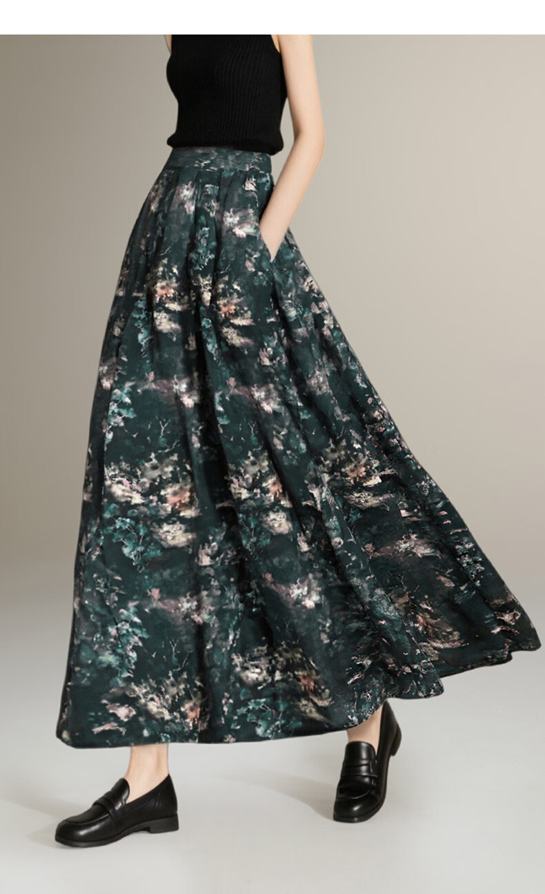 晚白【新品】2026年春款时尚复古文艺风长裙雪纺印花减龄大摆半身裙 花色 XL