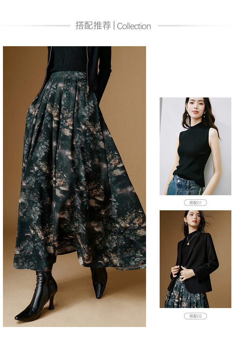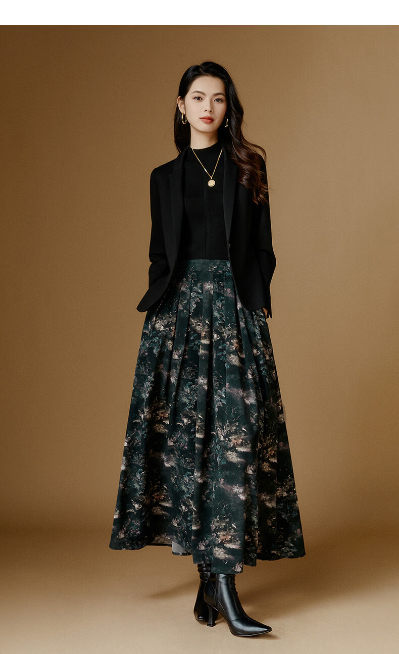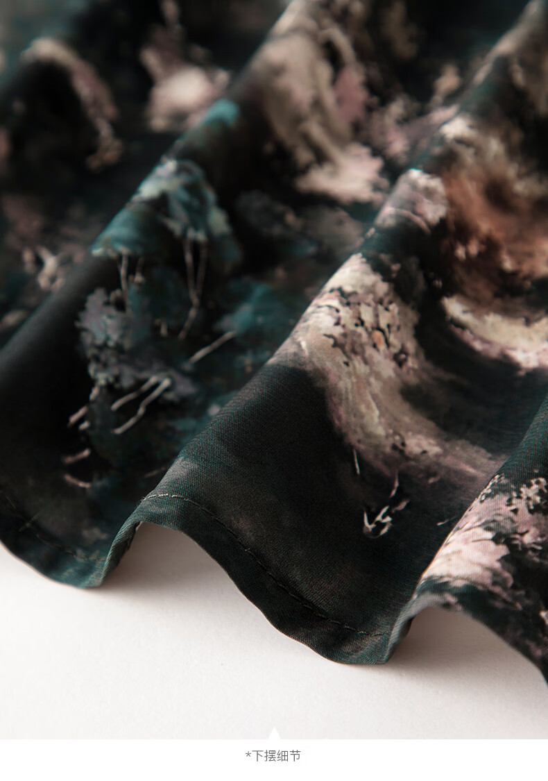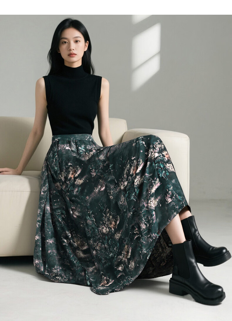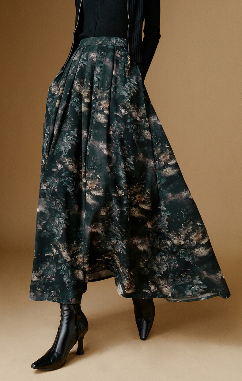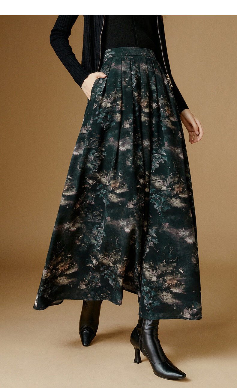 晚白【新品】2026年春款时尚复古文艺风长裙雪纺印花减龄大摆半身裙 花色 XL