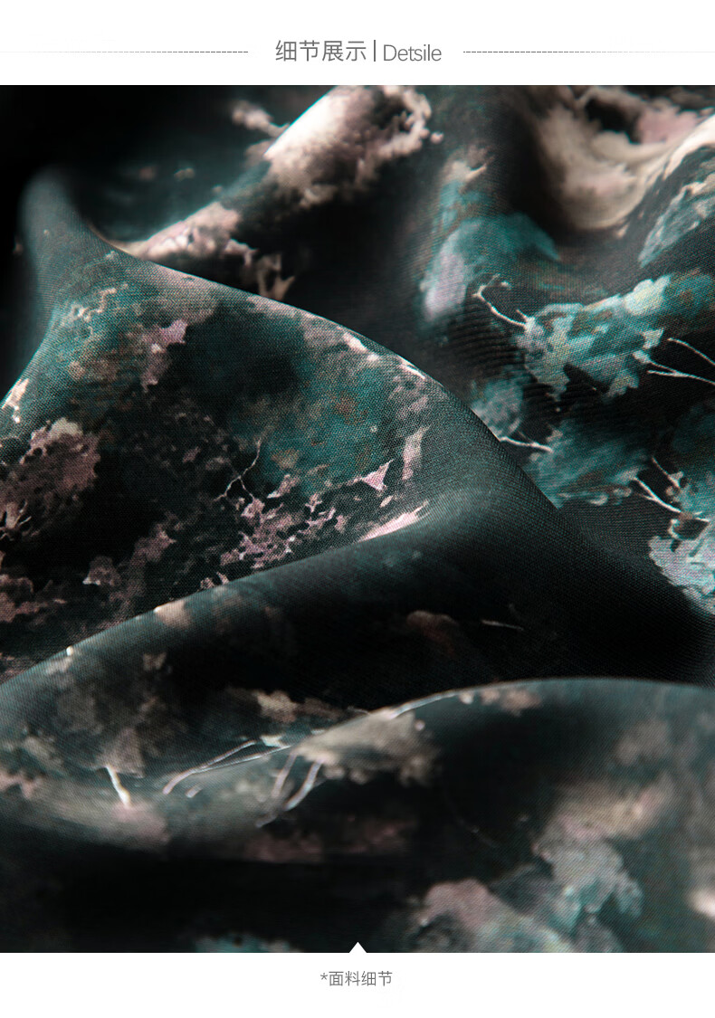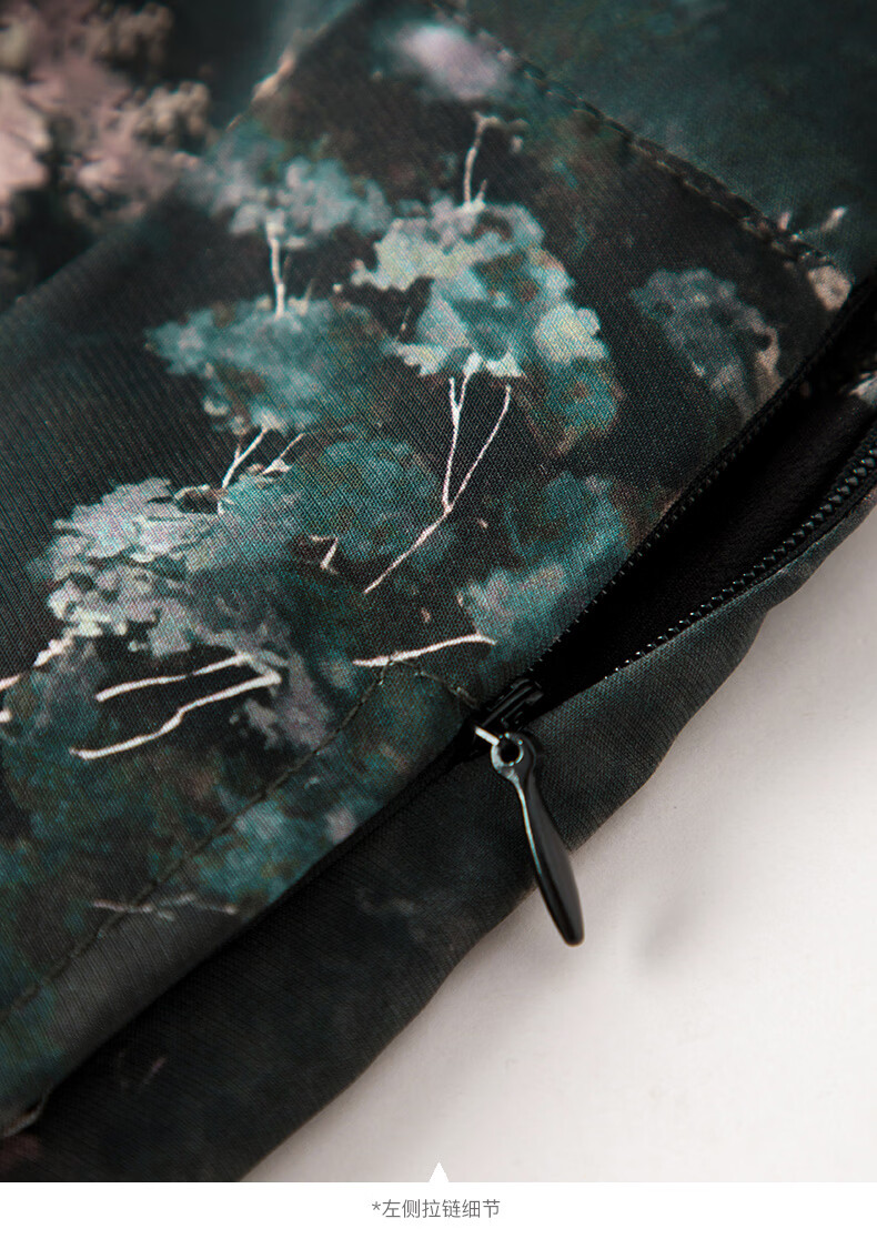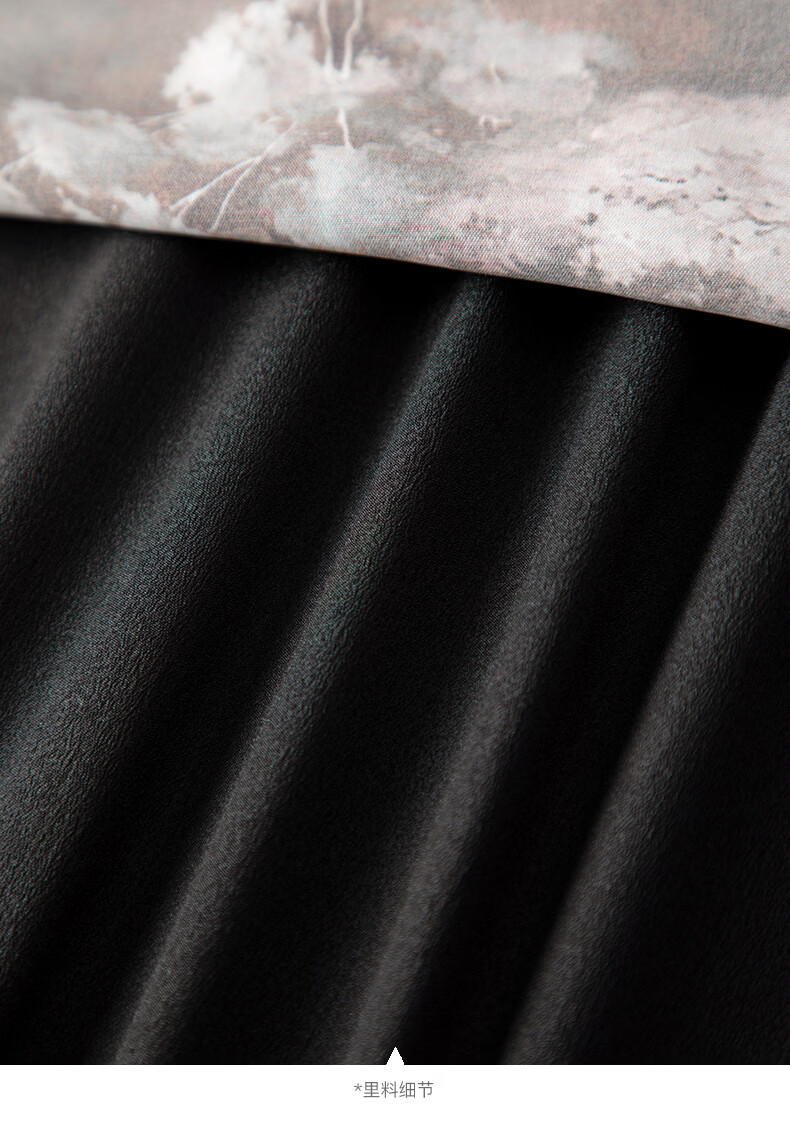 帕罗(PALUOPO)夏真丝碎花法式连衣裙桑蚕丝女士五分袖收腰中长裙 黑色 L (165/88A)