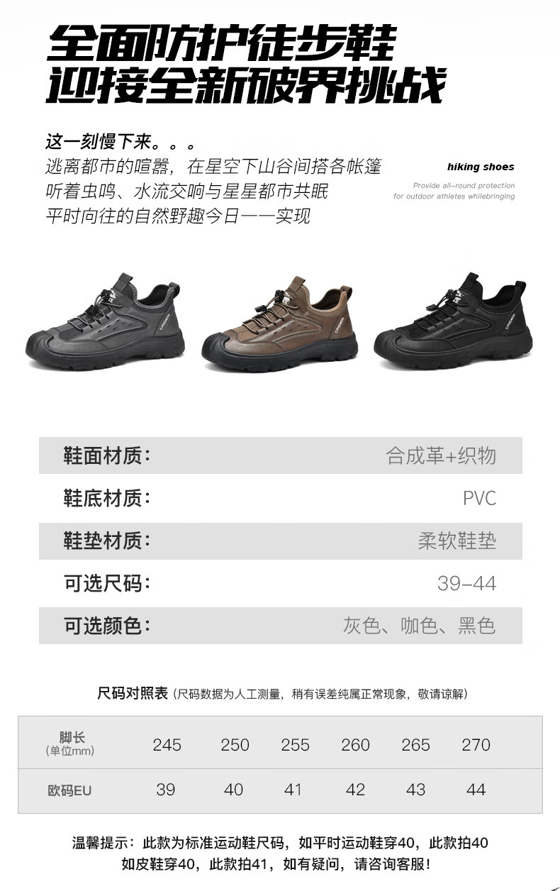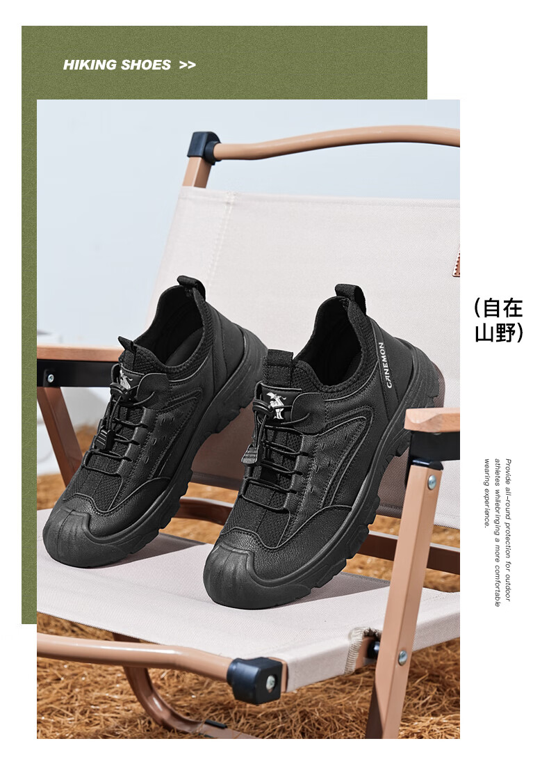 保罗骆驼男鞋春季新款男士网面透气休闲鞋防滑耐磨户外徒步鞋子男 黑色895 42