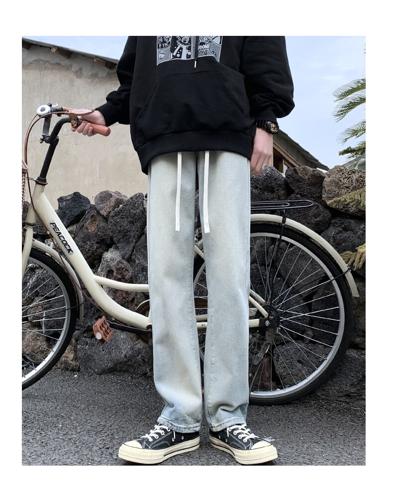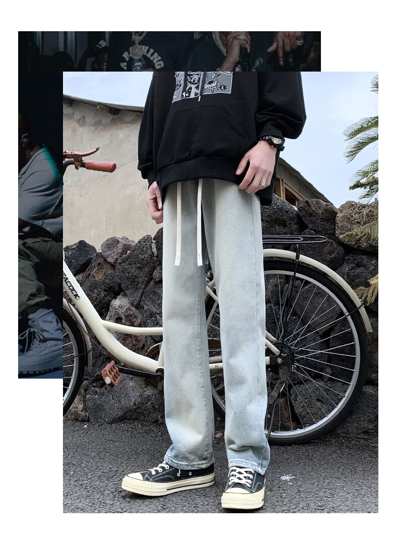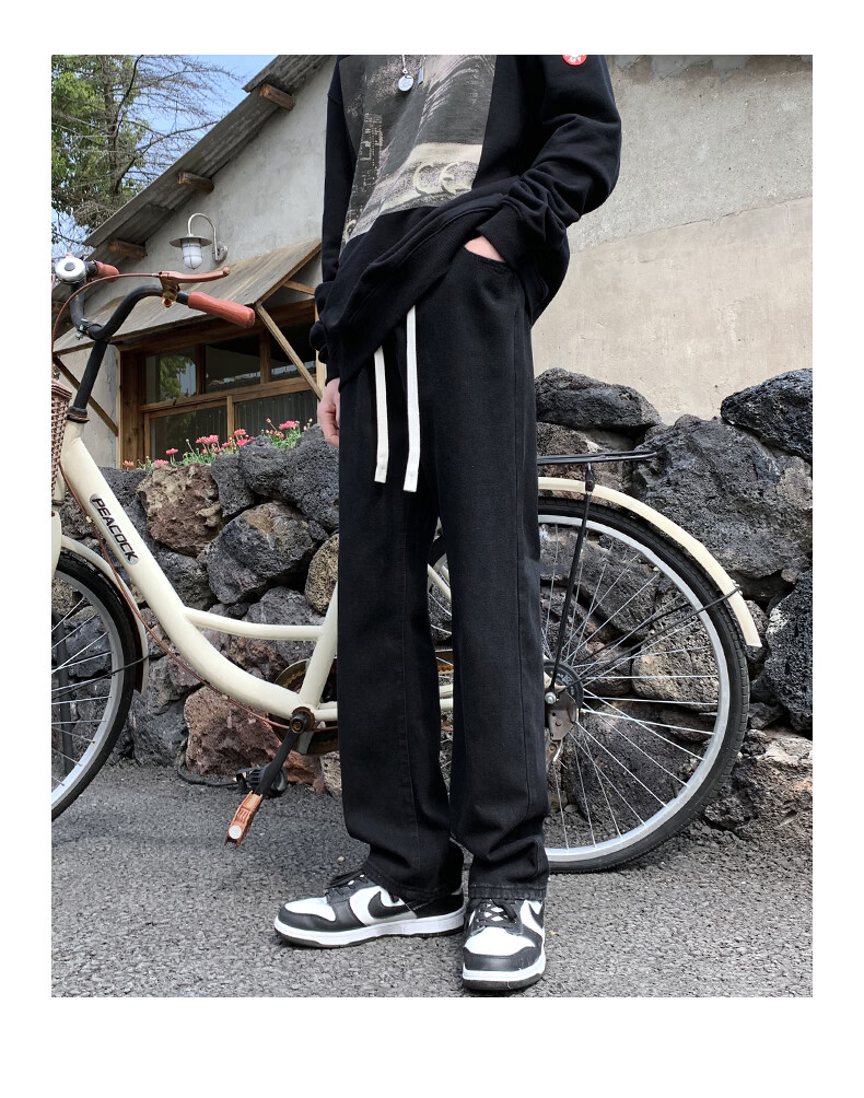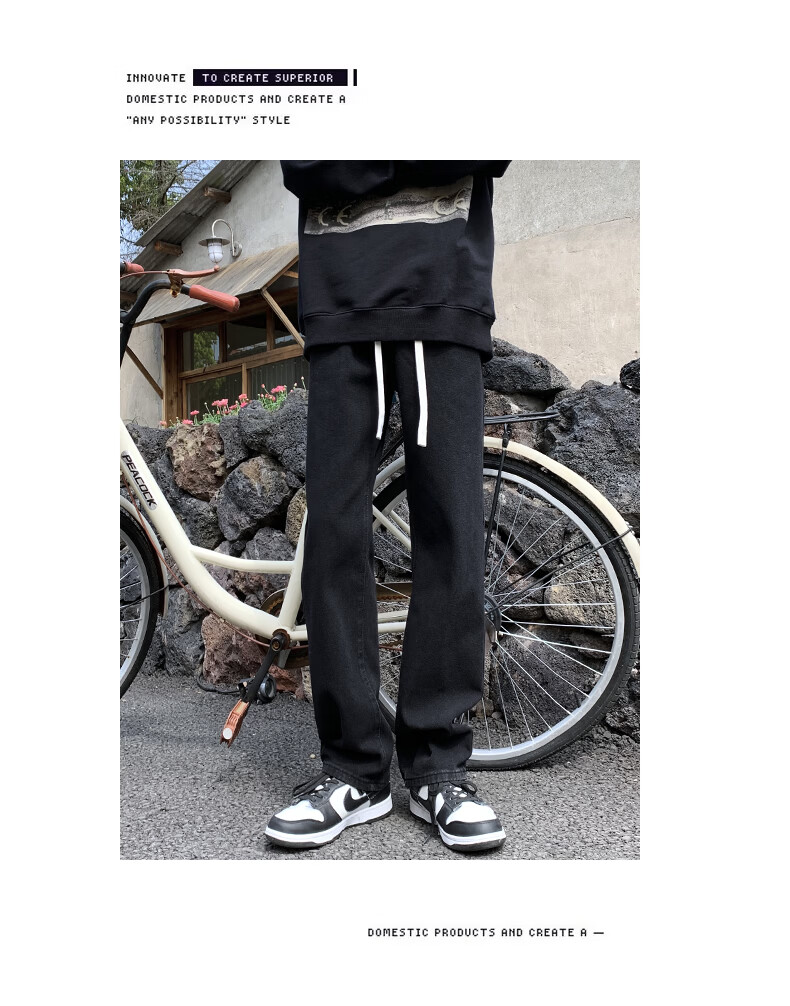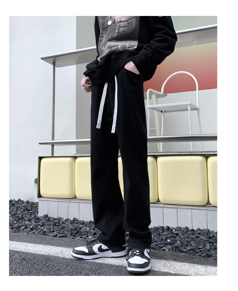 班尼路(Baleno)裤子男春秋季重磅针织休闲裤学生运动百搭系带宽松阔腿男士直筒裤