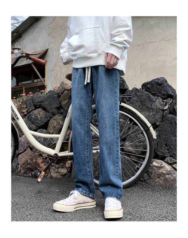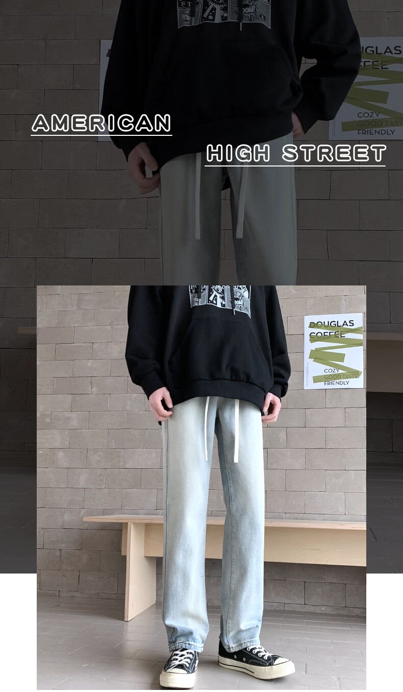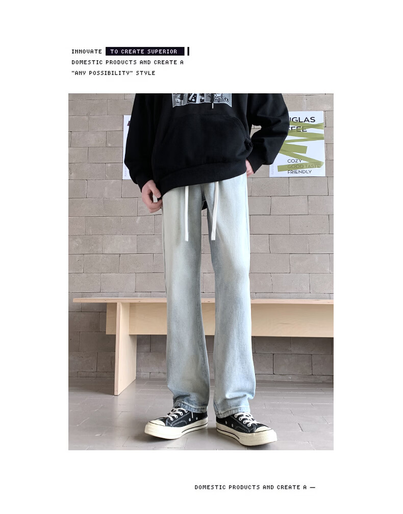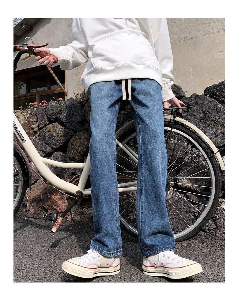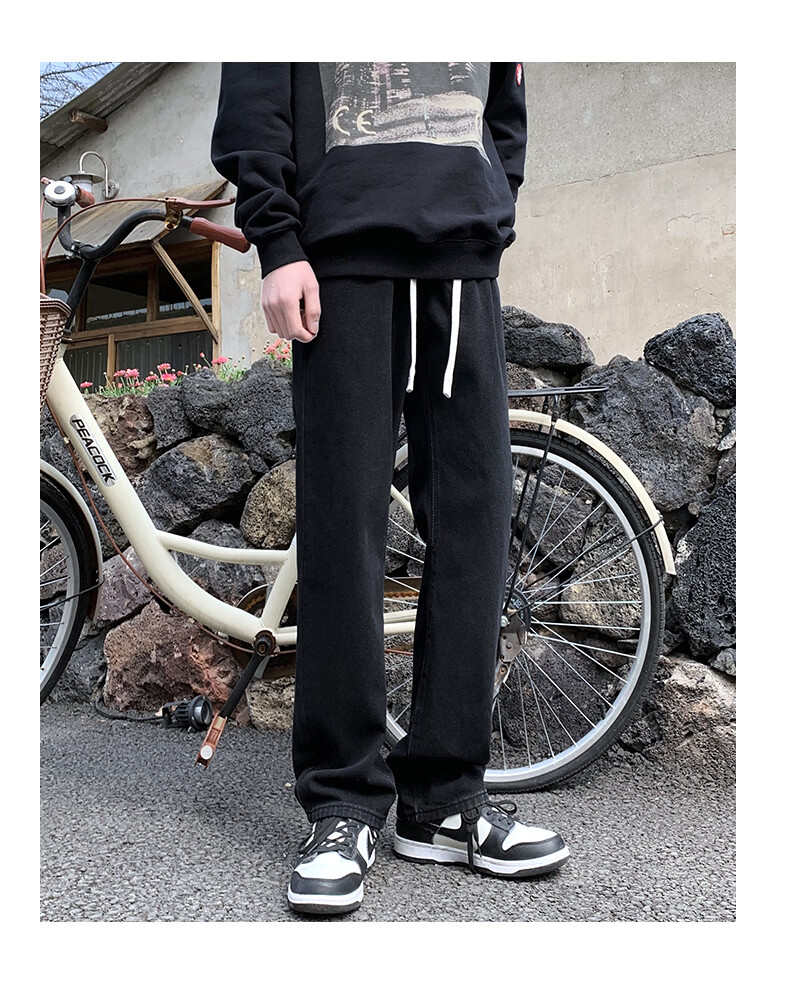 班尼路(Baleno)裤子男春秋季重磅针织休闲裤学生运动百搭系带宽松阔腿男士直筒裤