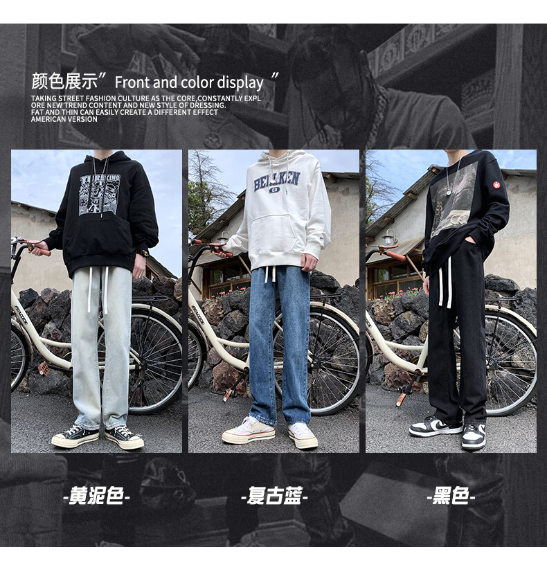 真维斯黑色牛仔裤男士弯刀夏季复古男生美式直筒裤休闲长裤新款修身裤子 黑色 S