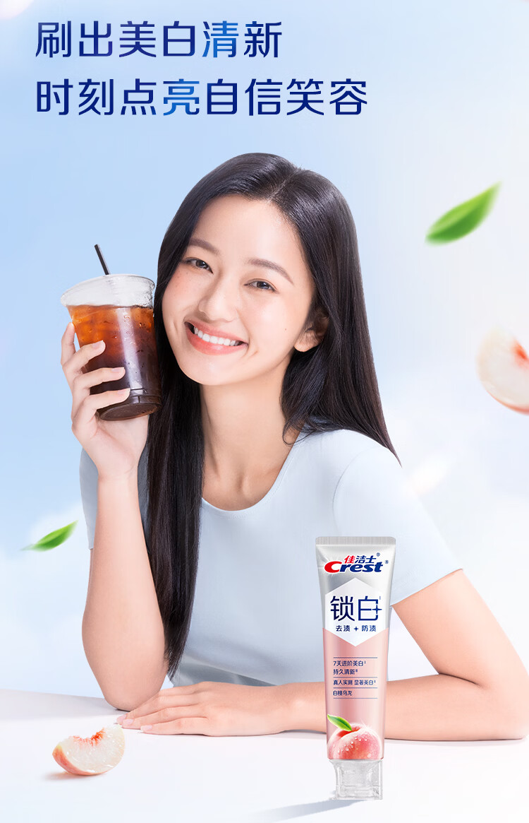 佳洁士新锁白双重精华美白清新牙膏白桃茉莉去渍2支共240g京东自营