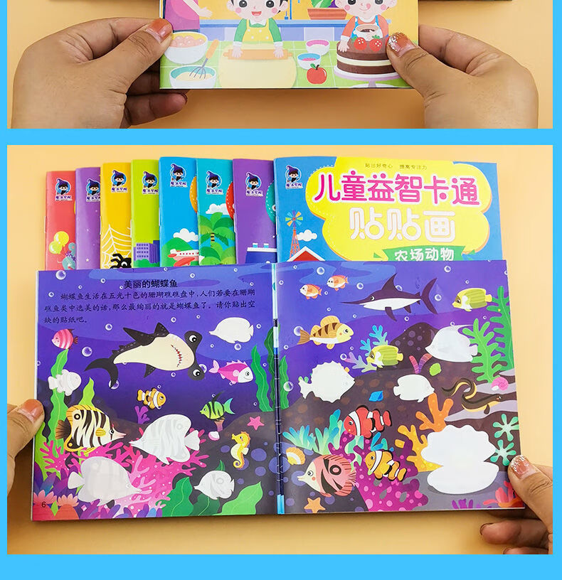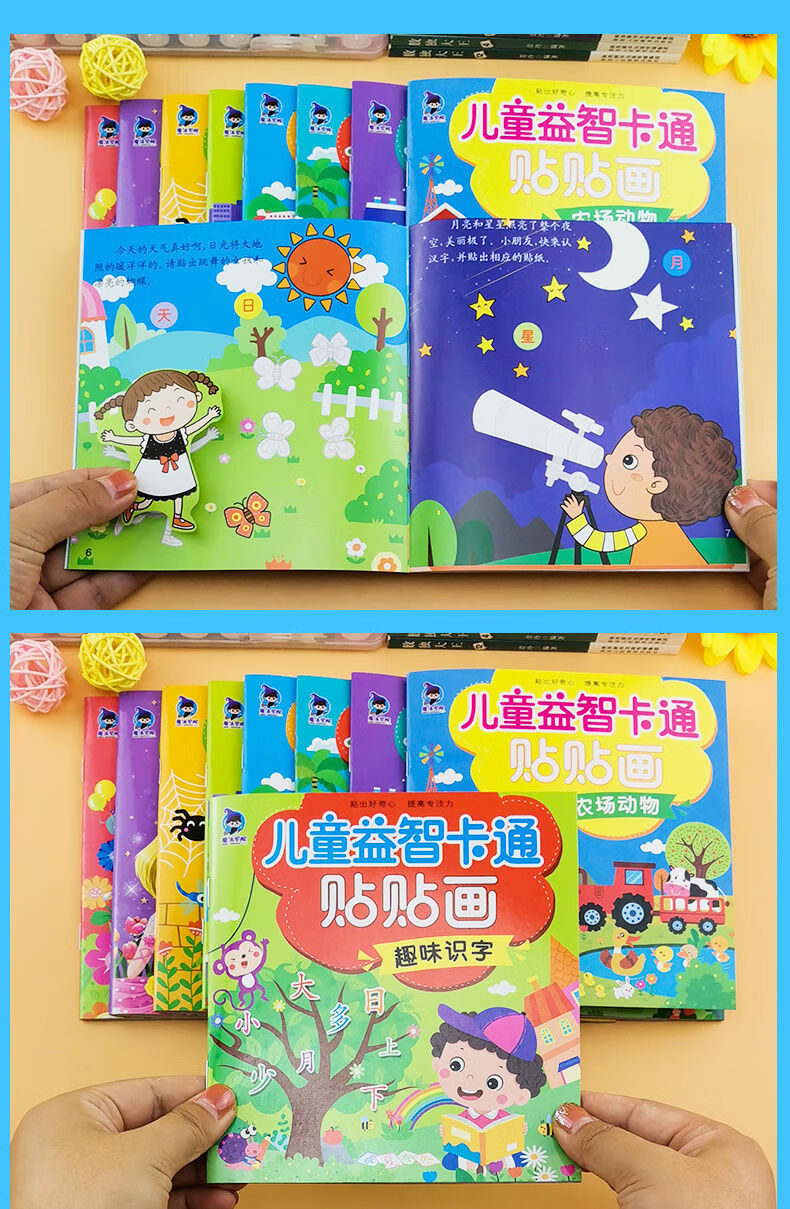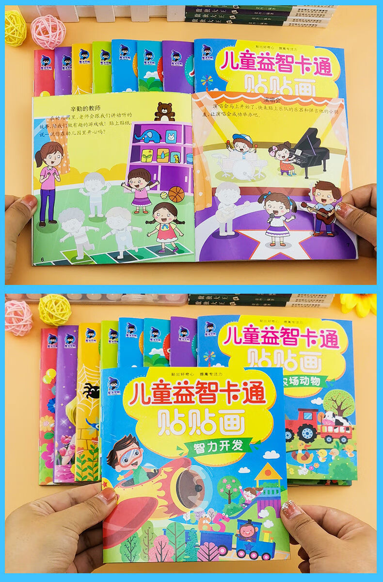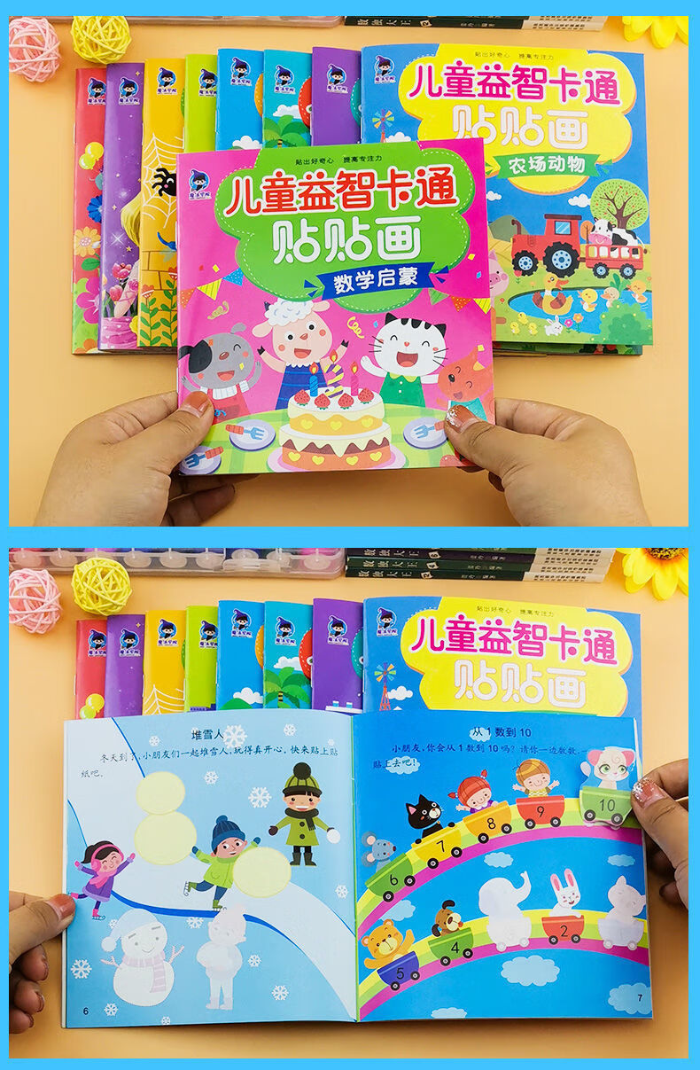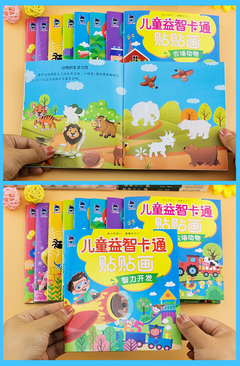 儿童专注力贴纸书2-3-4-5-6岁宝宝卡通贴贴画动脑益智游戏早教书 】2本全脑开发贴纸书 无规格