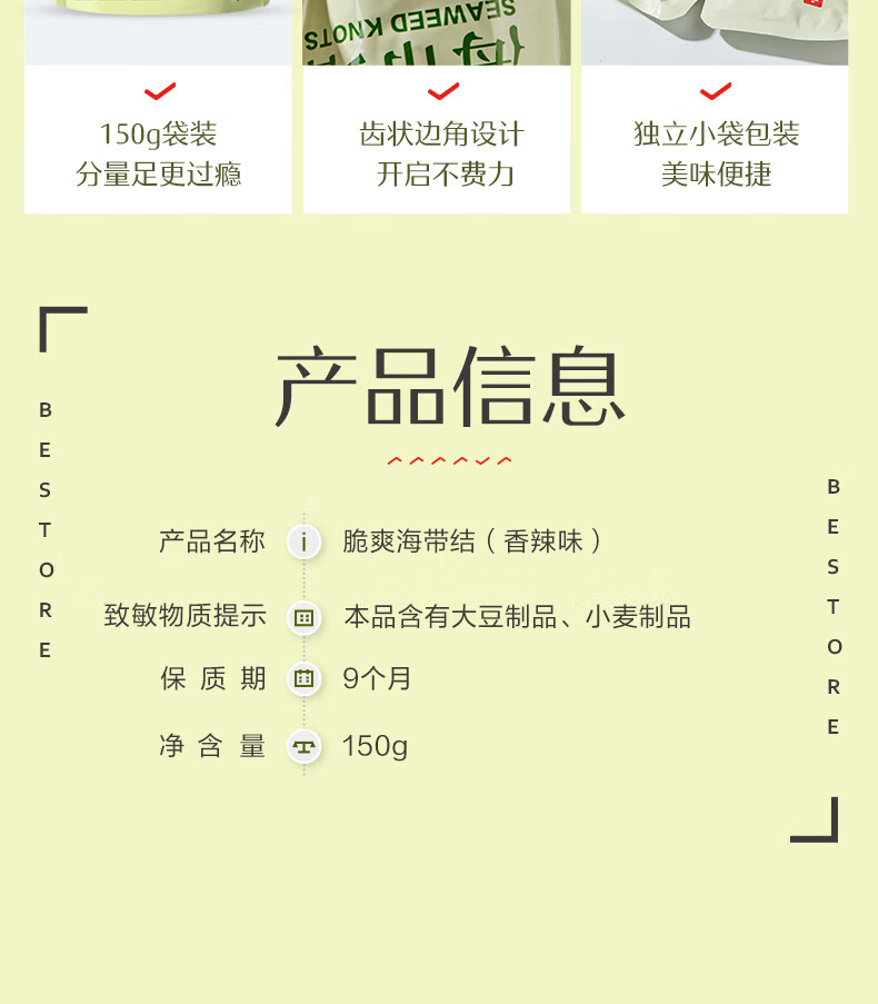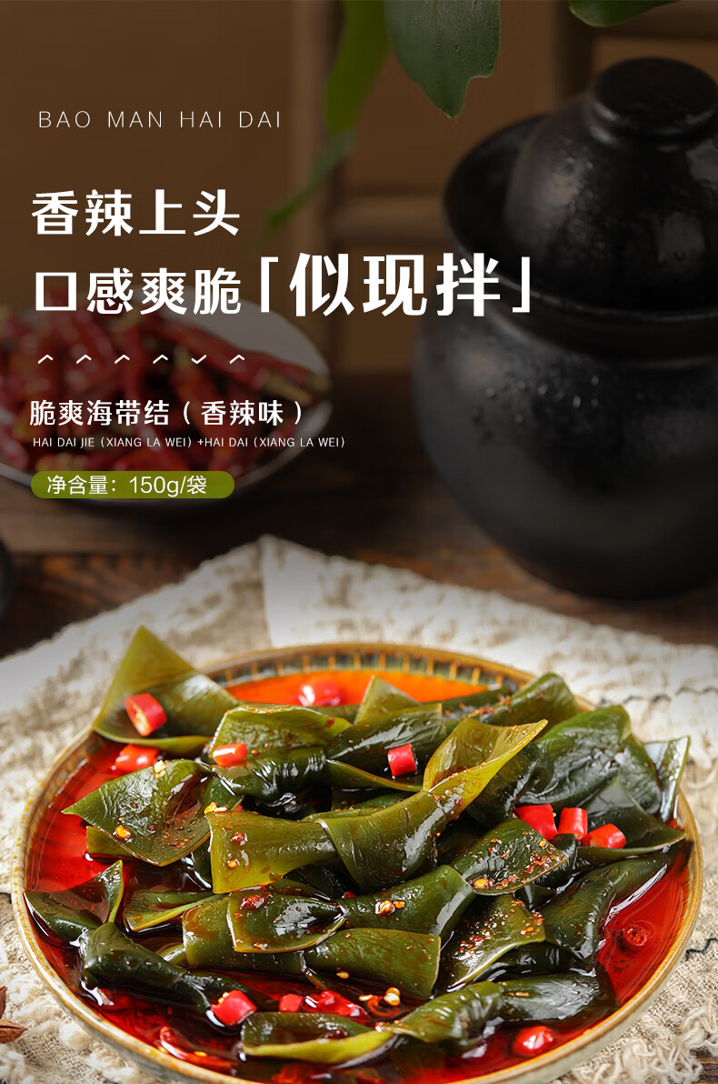 良品铺子 脆爽海带结香辣味150g素食即食海带解馋海味休闲零食海带即食