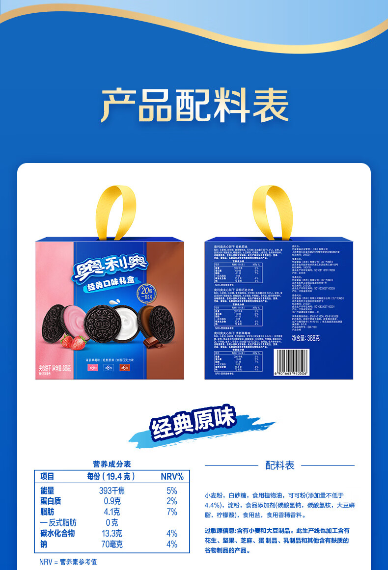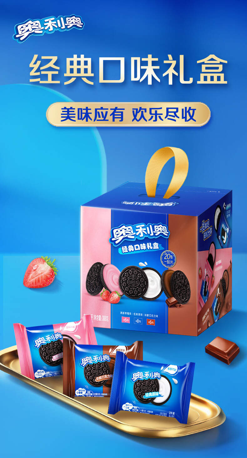 奥利奥(Oreo)夹心饼干玩心礼盒混合三口味388g 休闲零食大礼包早餐下午茶