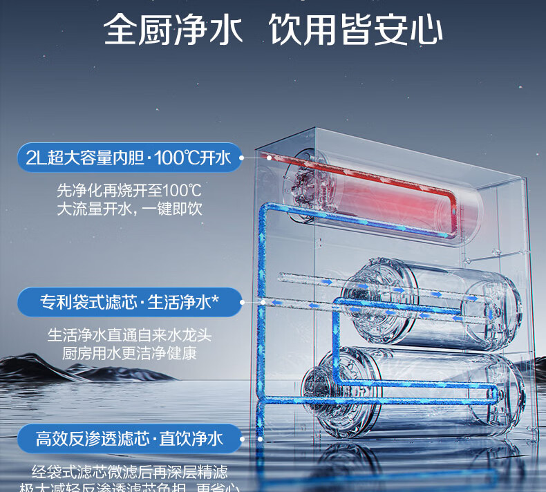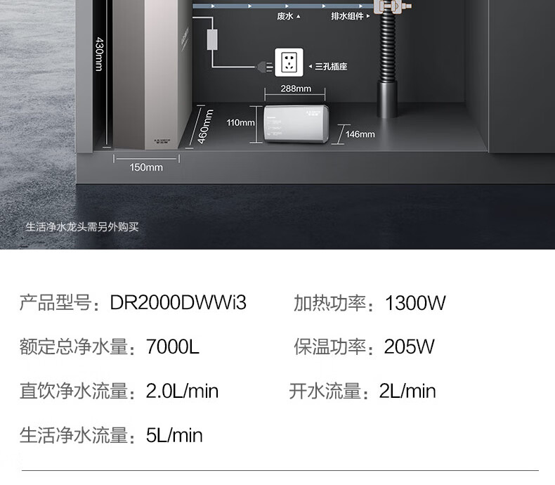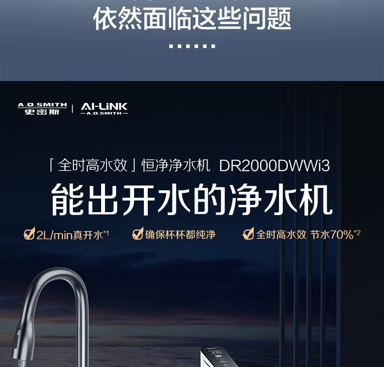 史密斯(A.O.SMITH)【净热双出水】家用净水器加热直饮一体厨房专用台下用即热饮水机DR2500SWi升级款【DR2000DWWi3】 全时高水效恒净净水器