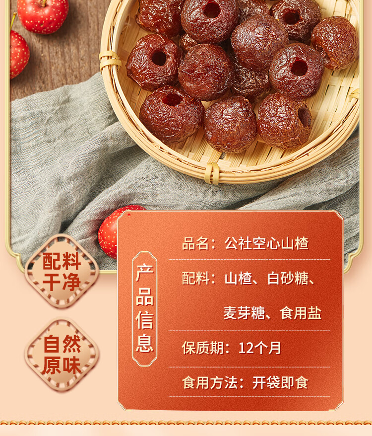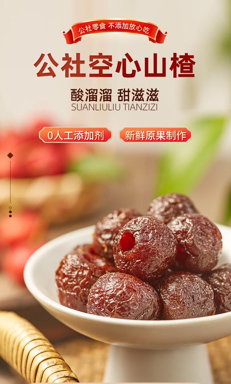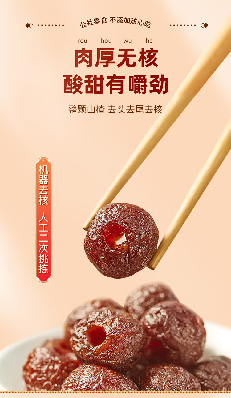 沂蒙公社空心山楂250g小包装无核小火烘烤 蜜饯果脯休闲办公零食