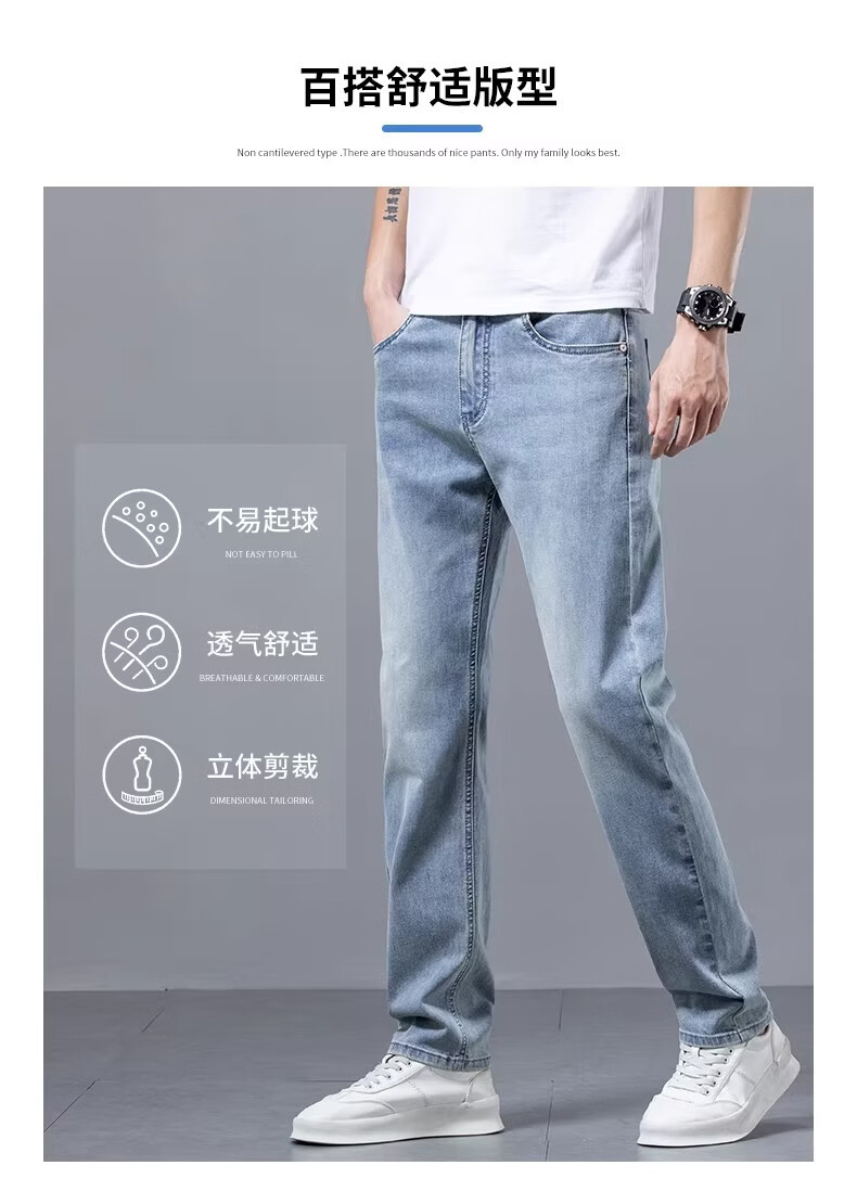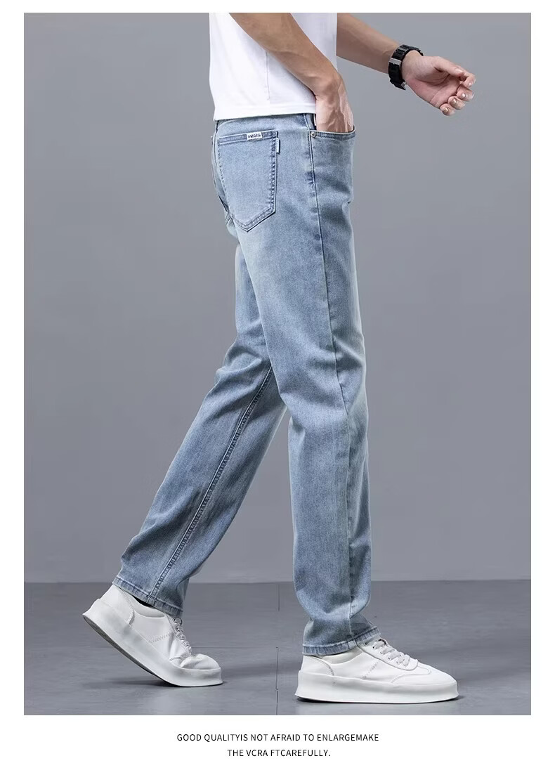 真维斯(Jeanswest)2026新款秋季浅色牛仔裤男士简约修身时尚直筒弹力休闲长裤子男款 浅蓝色 32 【腰围2尺5】