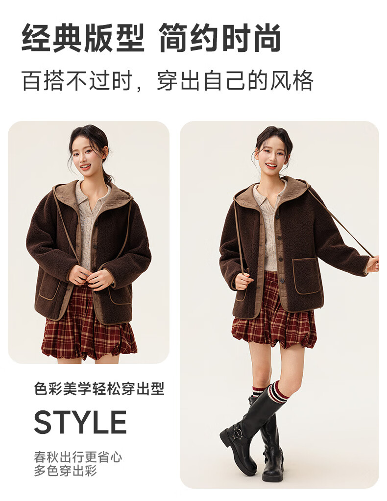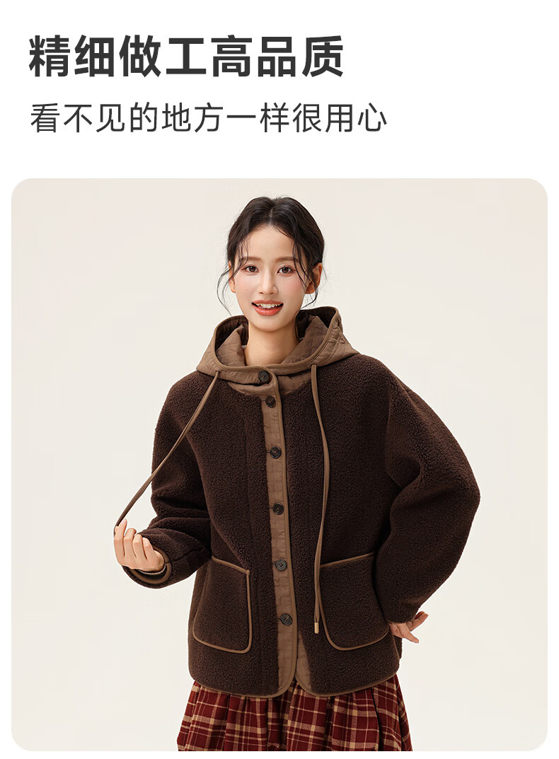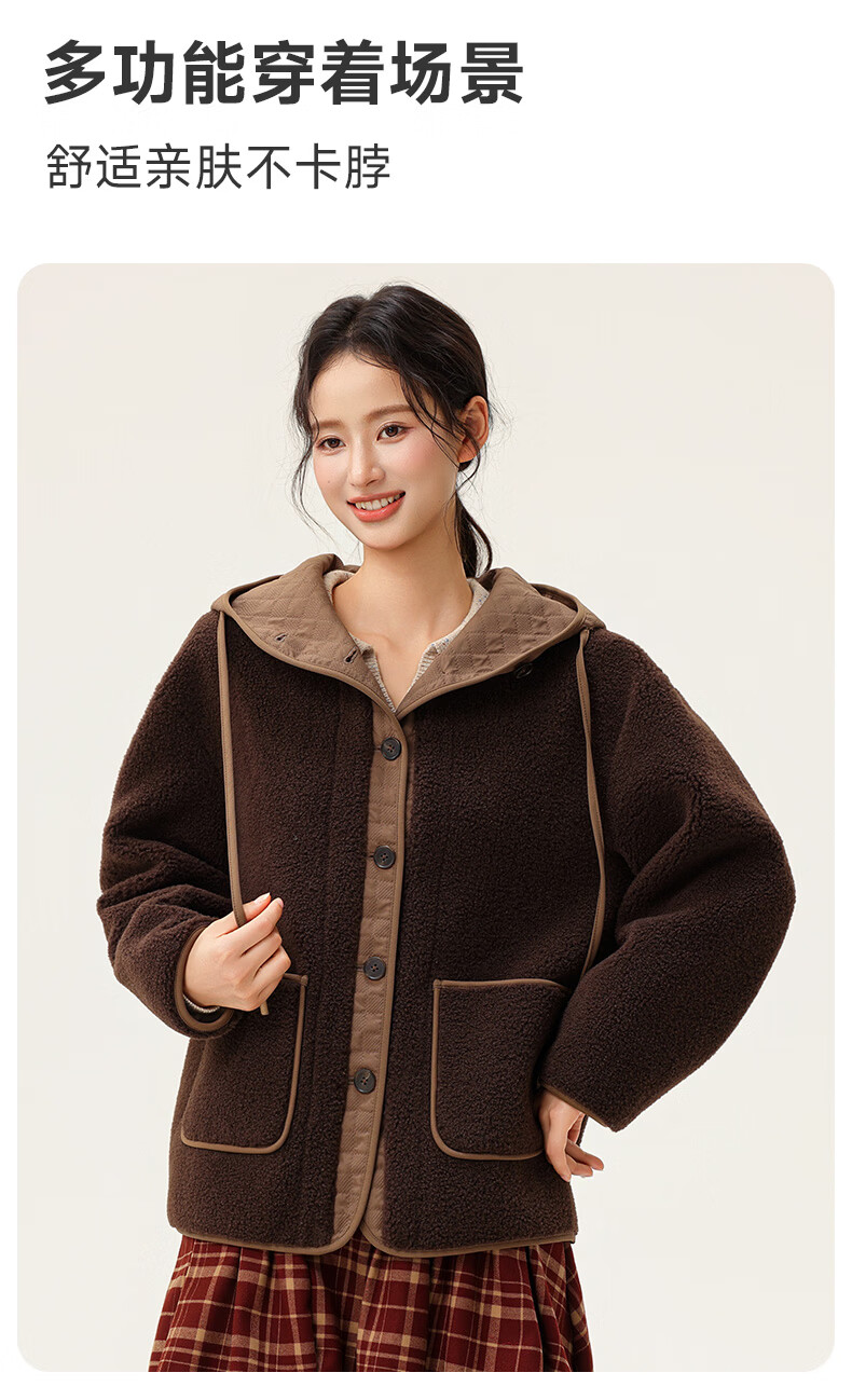 雪中飞羊羔毛摇粒绒外套女短款2026年新款百搭美拉德秋冬加厚抓绒衣夹克 咖啡色 160/84A (100-120斤)