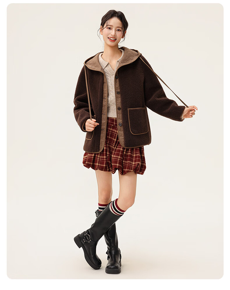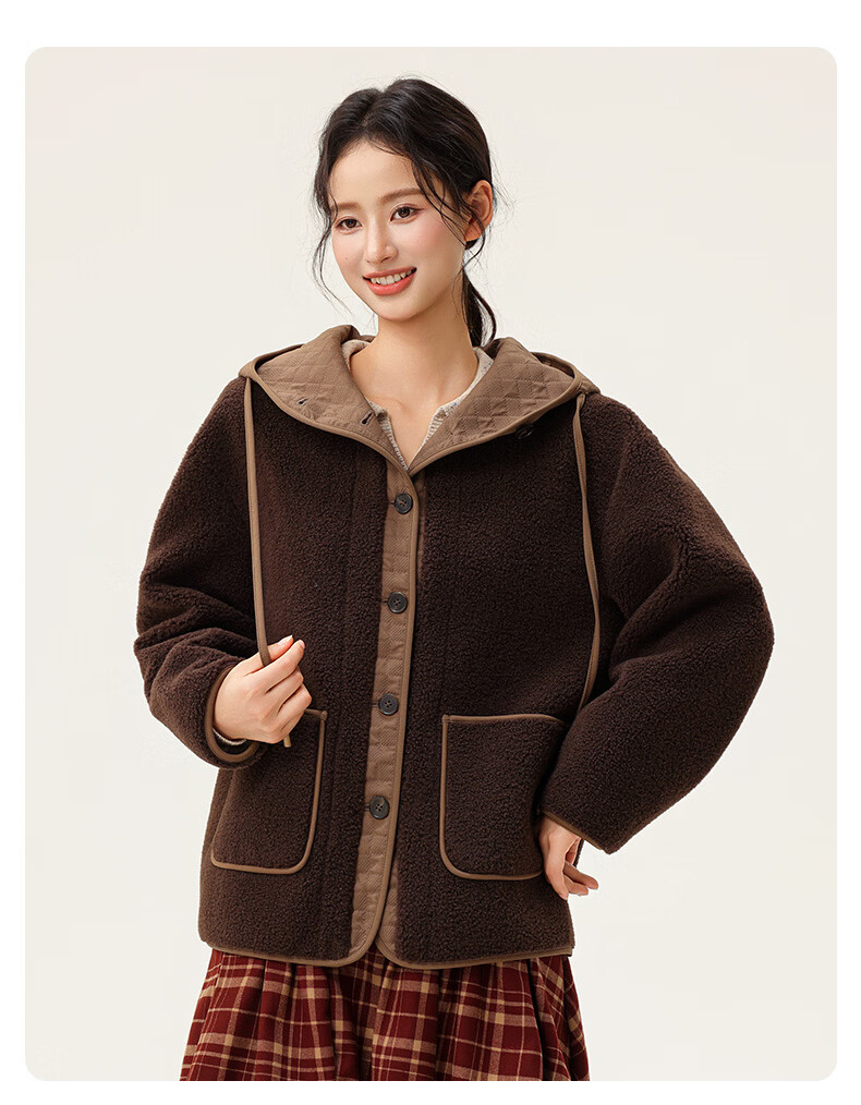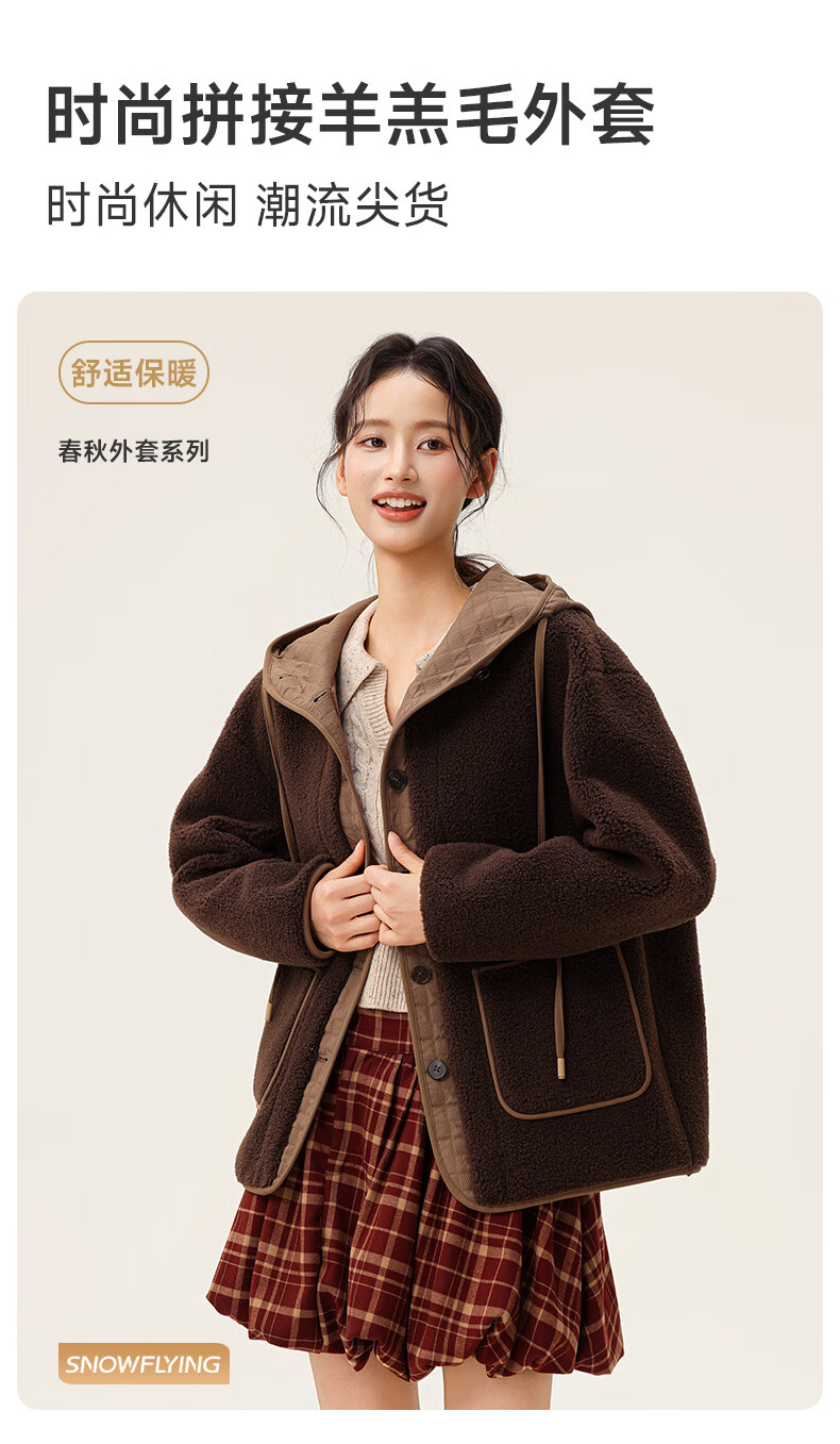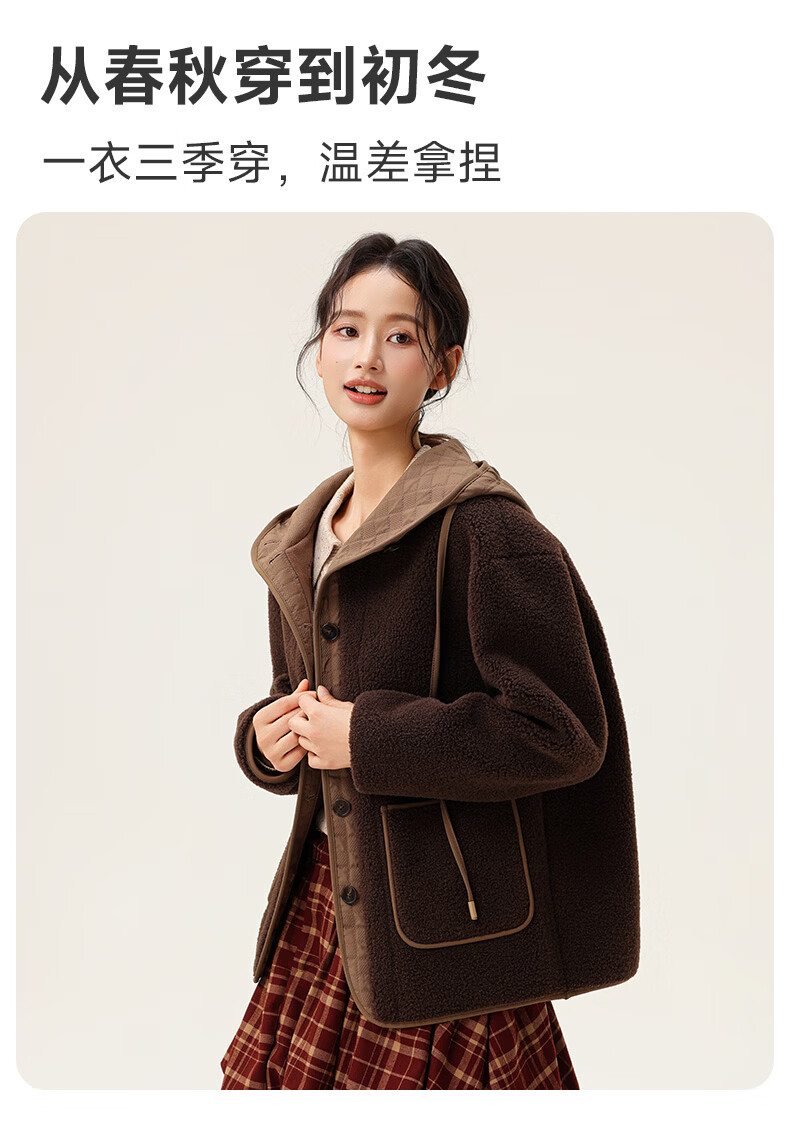 雪中飞羊羔毛摇粒绒外套女短款2026年新款百搭美拉德秋冬加厚抓绒衣夹克 咖啡色 160/84A (100-120斤)