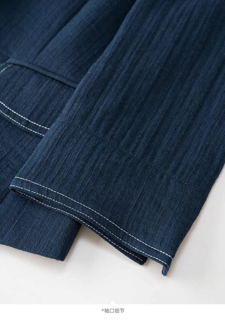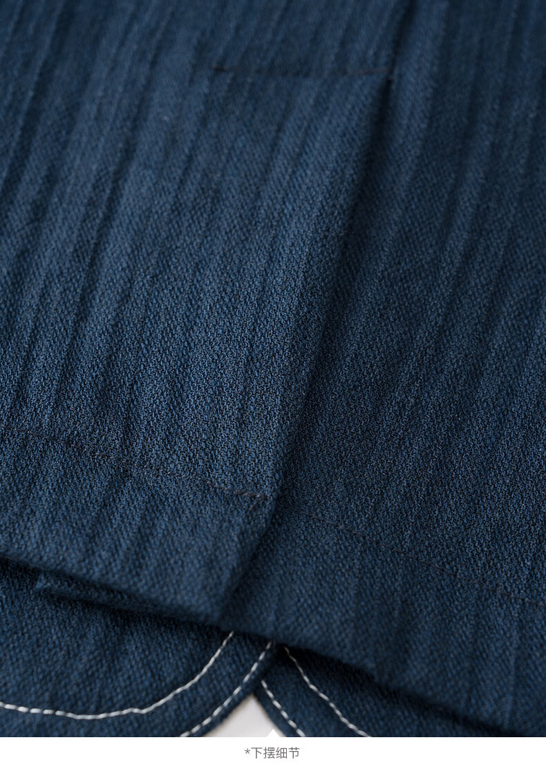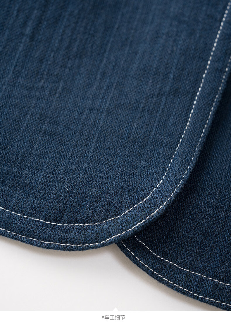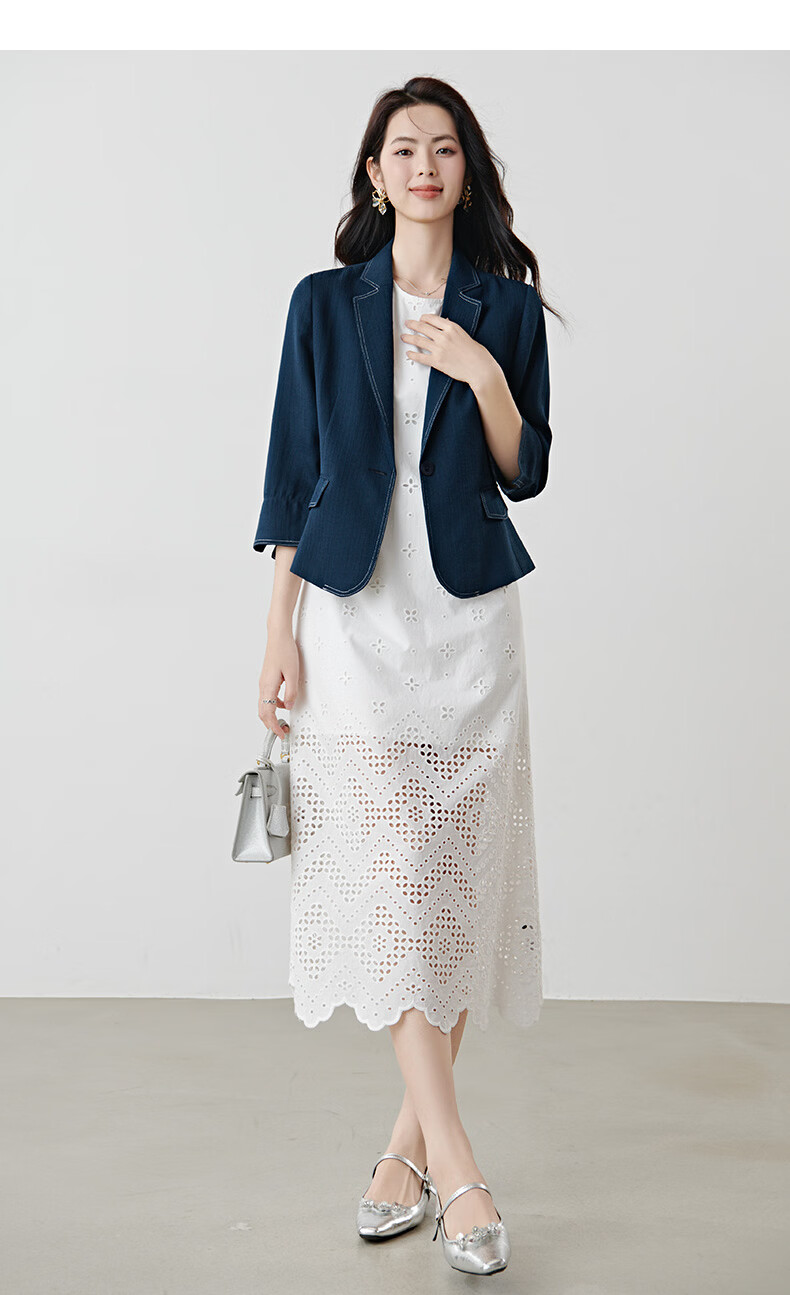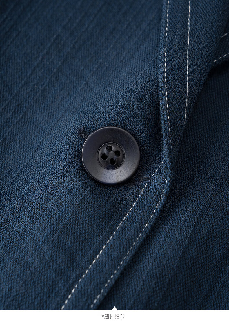 晚白【新品】2026春撞色平驳领棉麻感西装精简通勤小个子显高短外套女 深蓝色 S