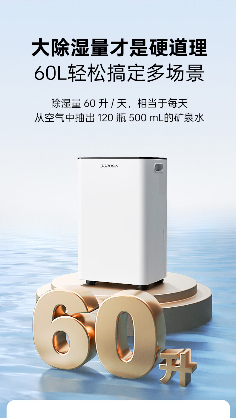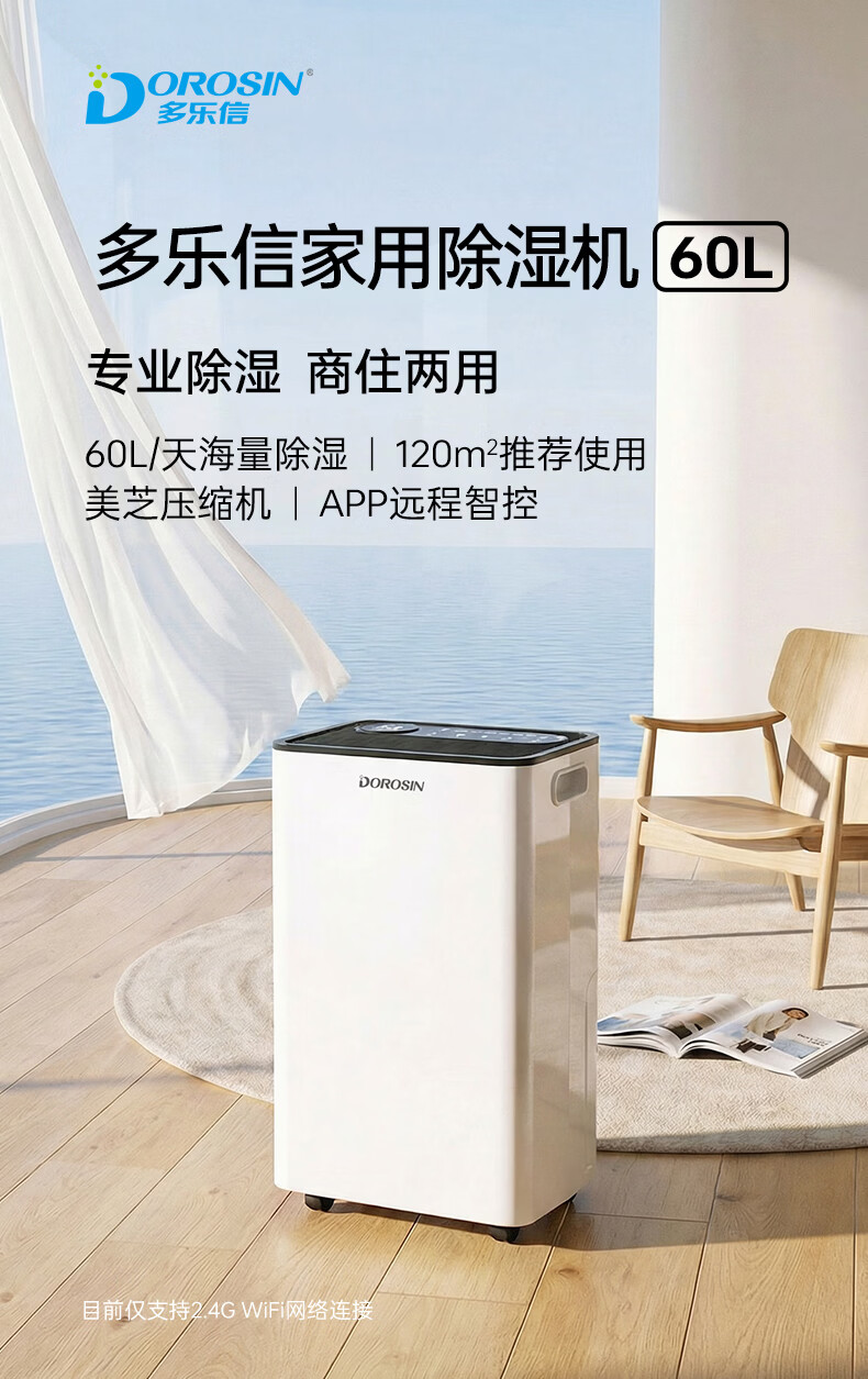 多乐信(DOROSIN)除湿机/抽湿机 60升/天120㎡ APP智控大功率大户型别墅办公室地下室商业家用除潮吸湿干衣 ER-60