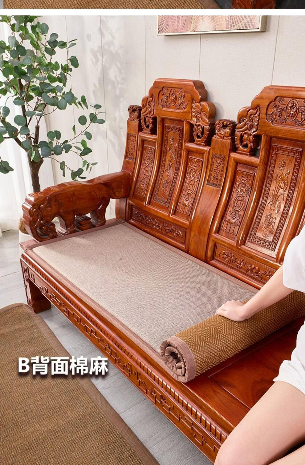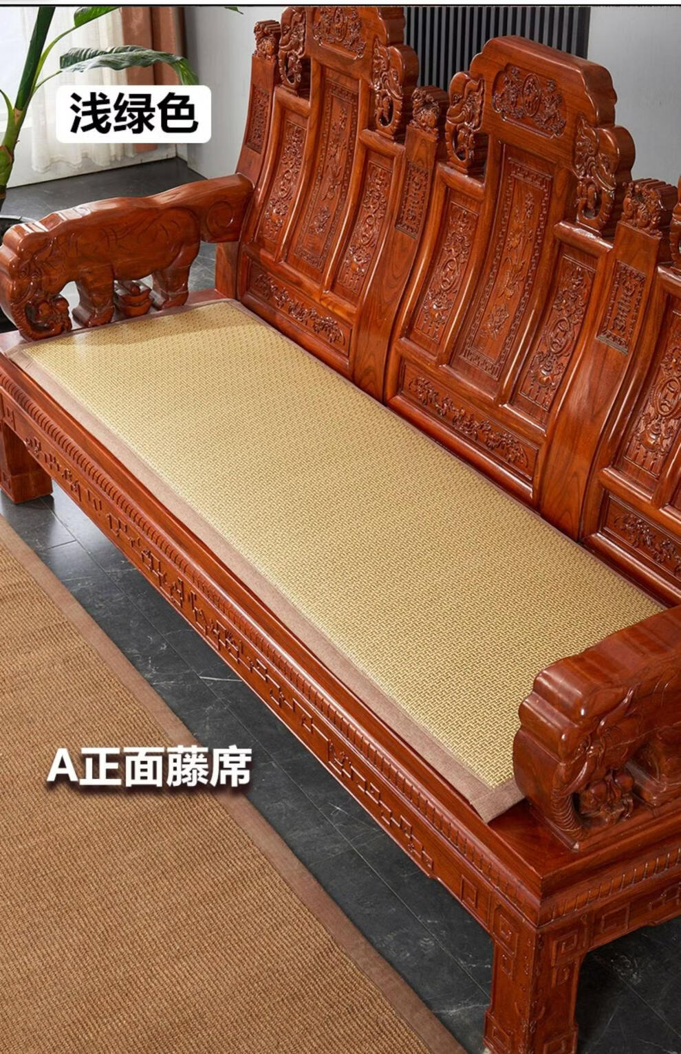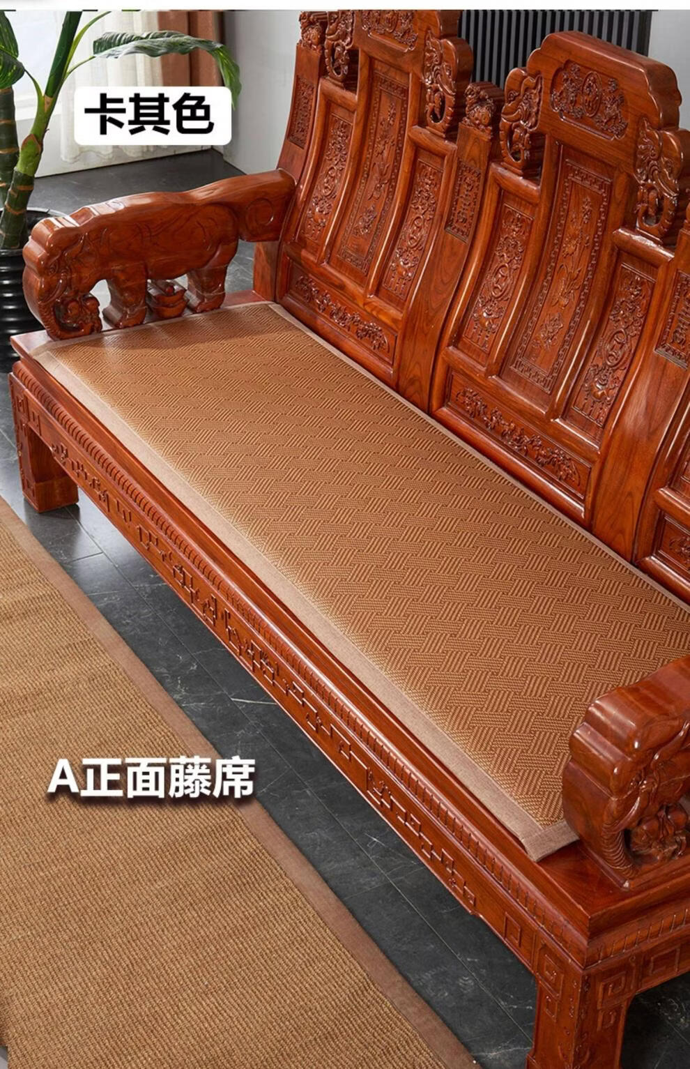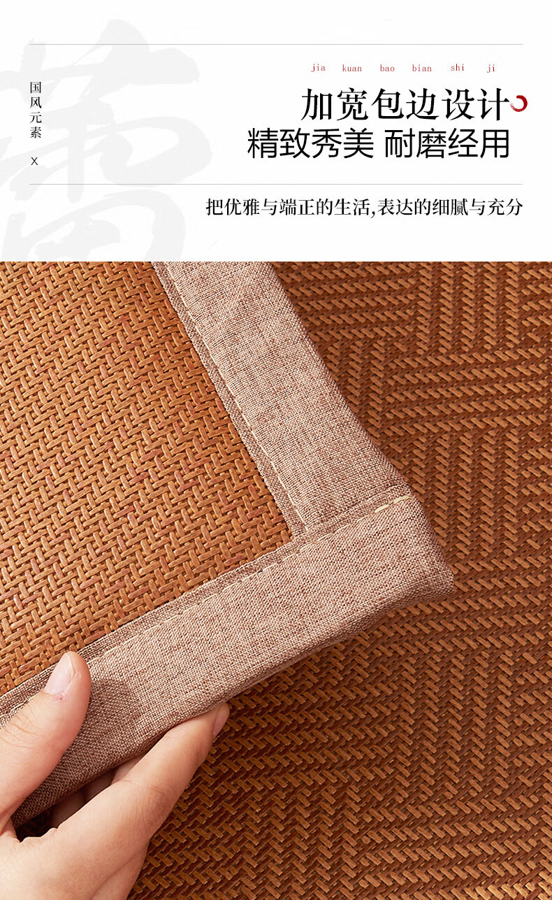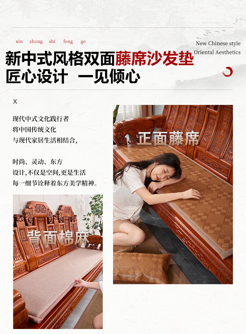 正圣藤席沙发垫四季通用防滑2026年新款双面可用夏季木沙发凉席坐垫 九宫格驼色+正面藤席+背面棉麻 50*50cm升级加厚2.5厘米双面可用