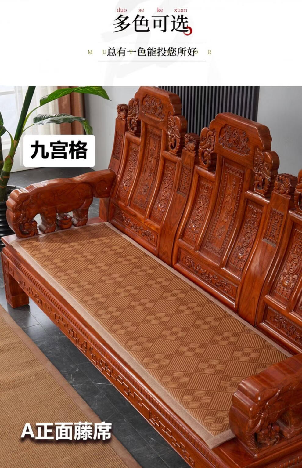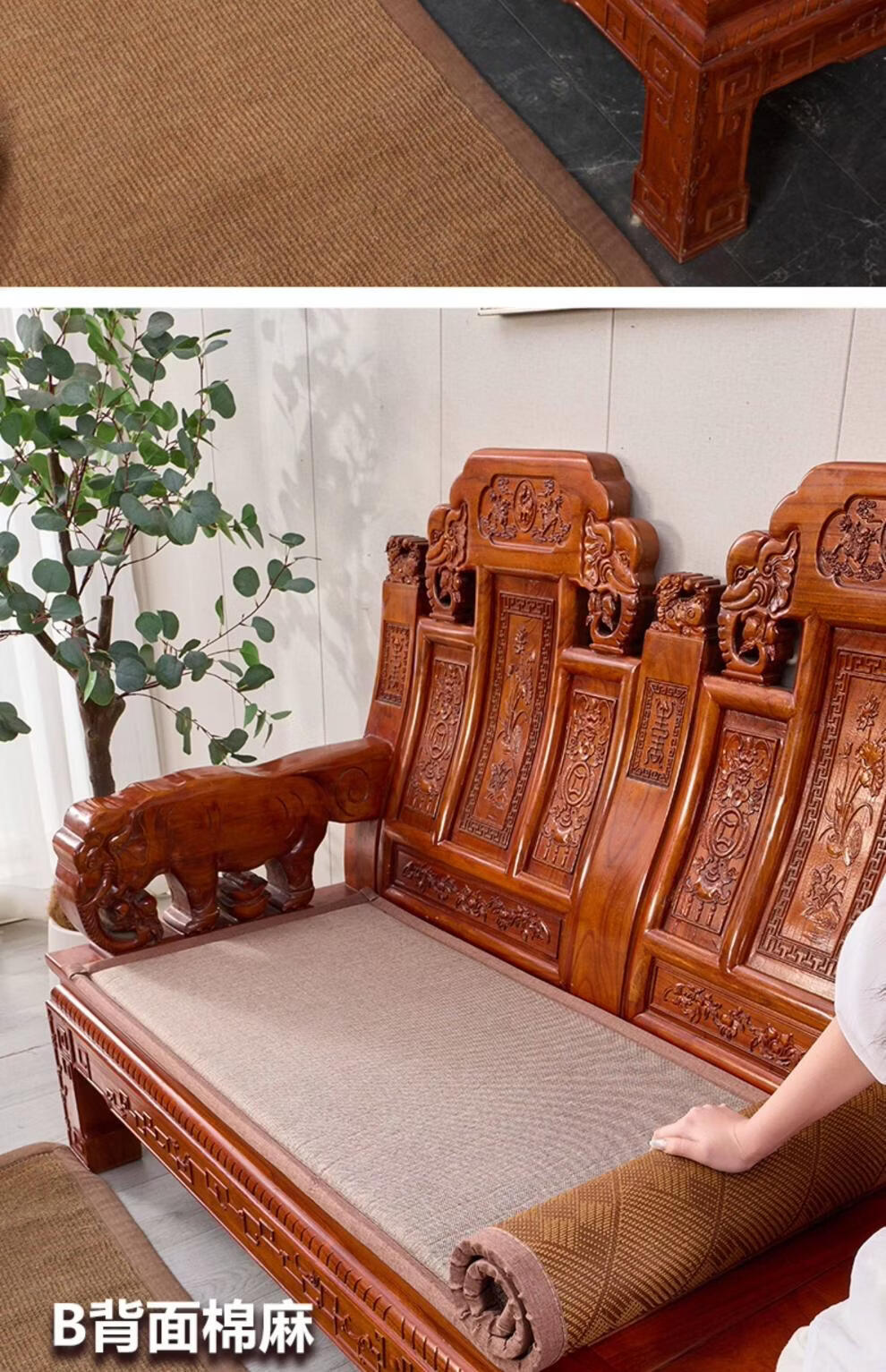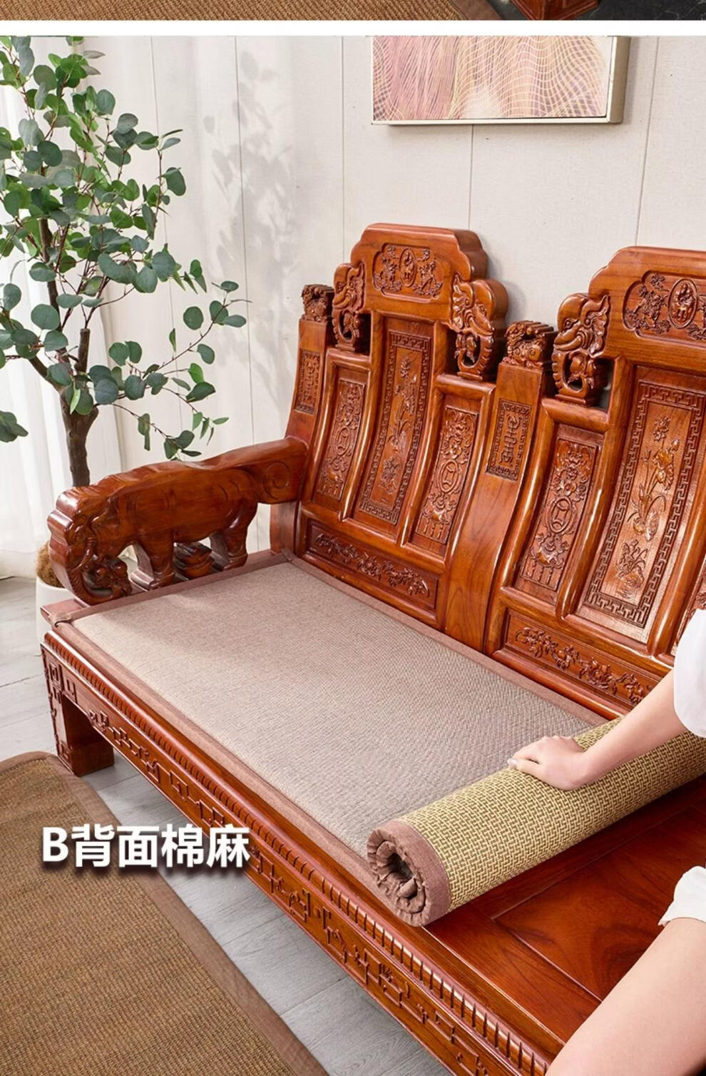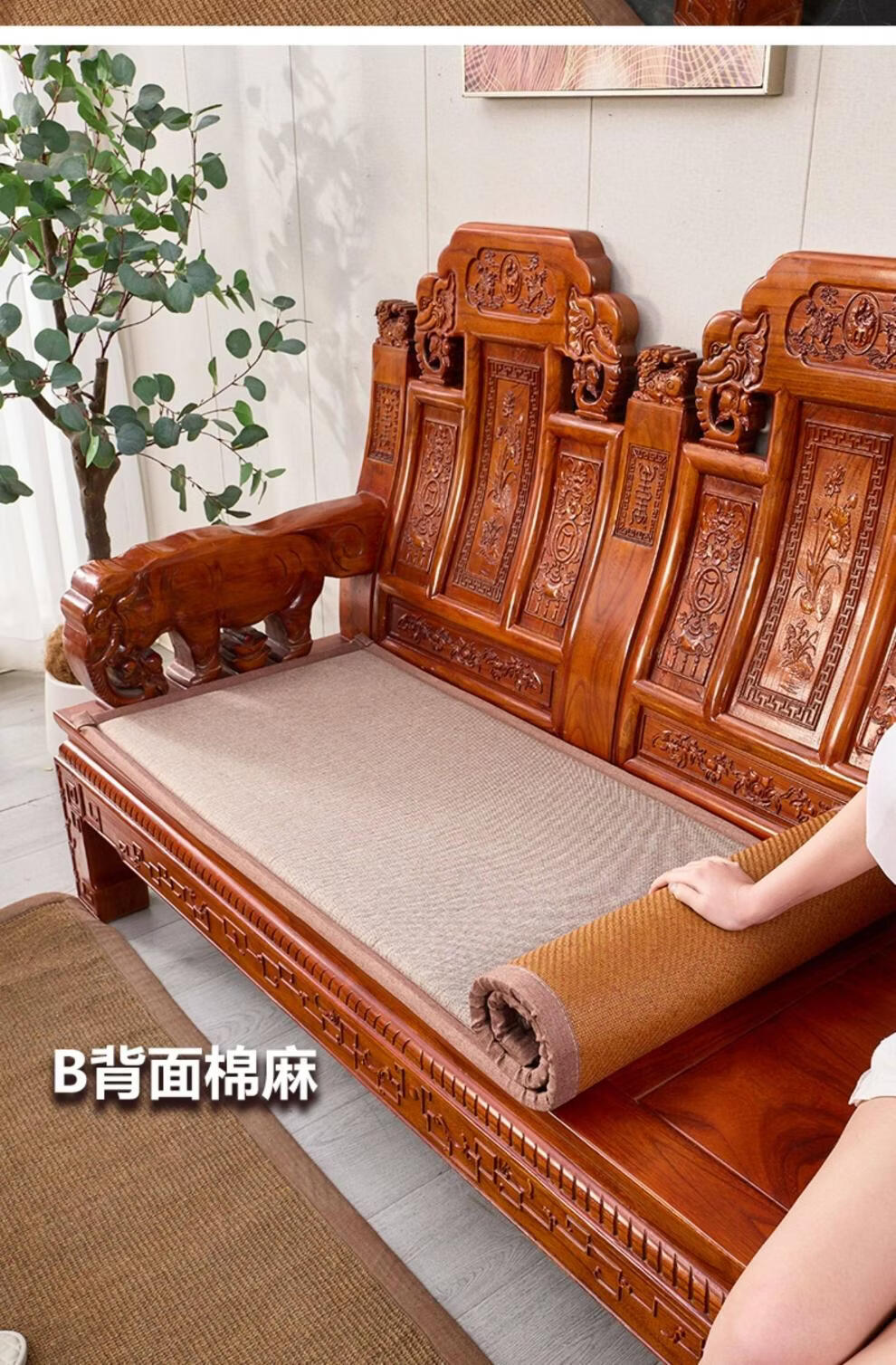 正圣藤席沙发垫四季通用防滑2026年新款双面可用夏季木沙发凉席坐垫 九宫格驼色+正面藤席+背面棉麻 50*50cm升级加厚2.5厘米双面可用