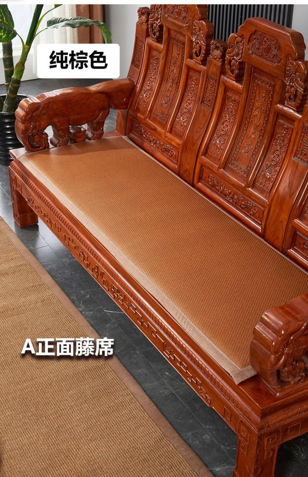正圣夏季凉席沙发垫四季通用防滑2026年新款红木实木沙发坐垫老式椅垫 锦绣红棕(3cm海绵) 三人座50*170cm