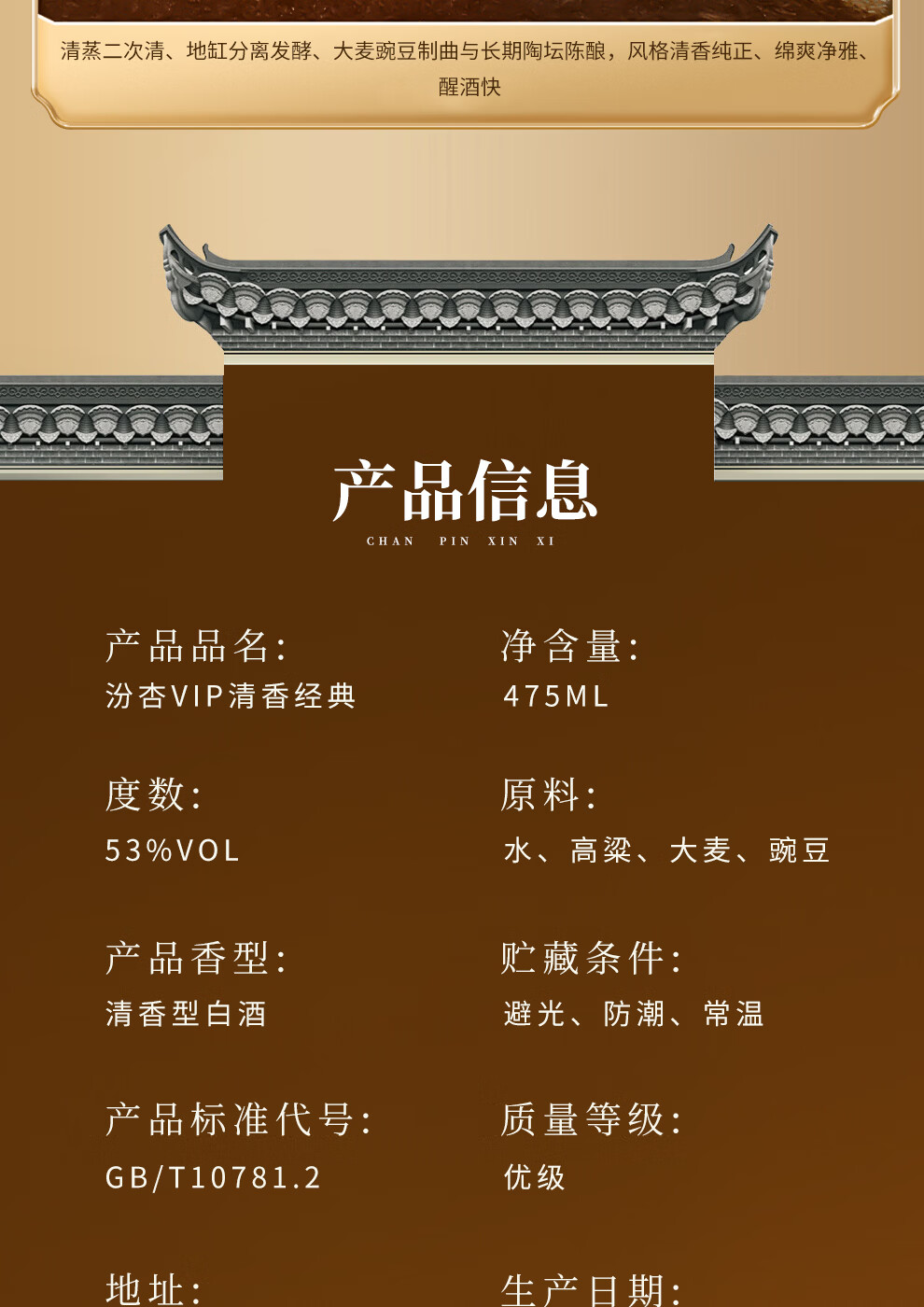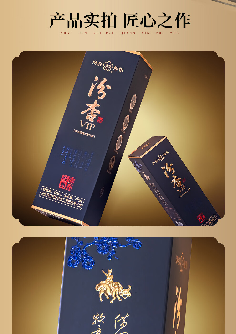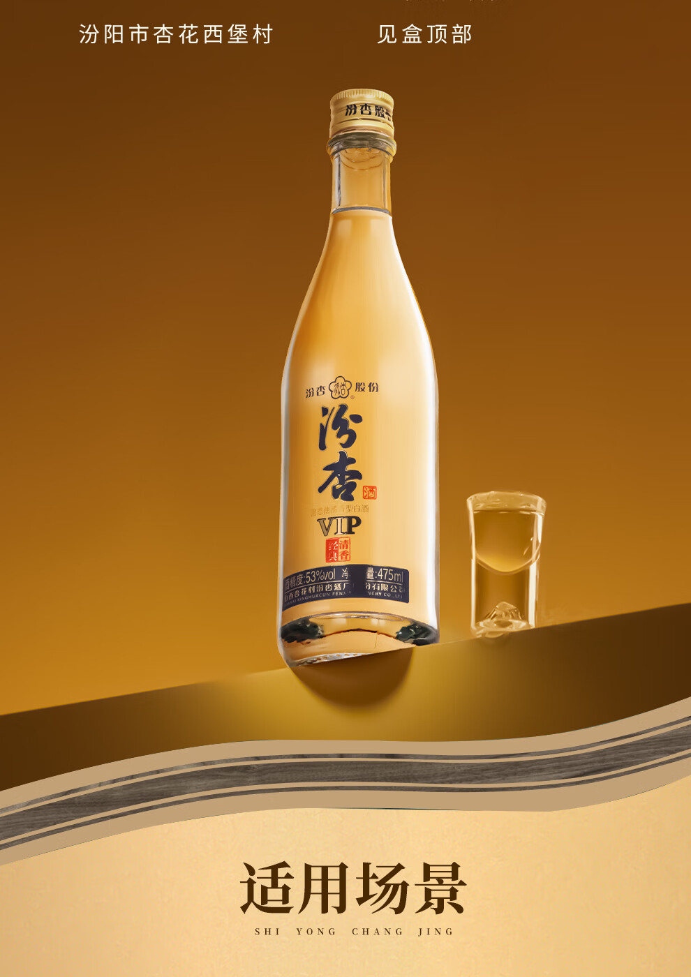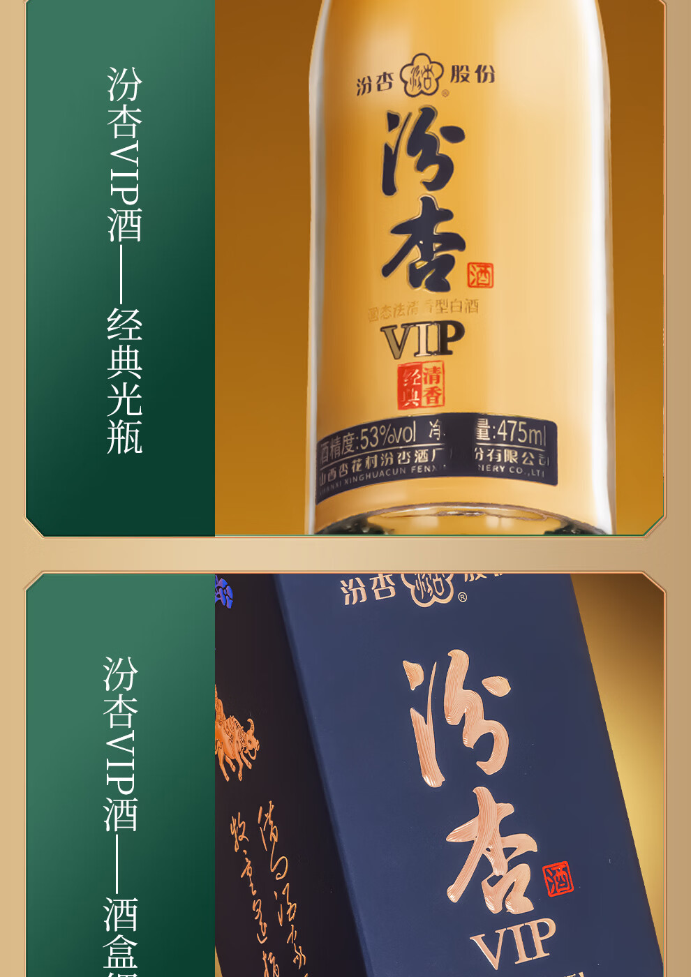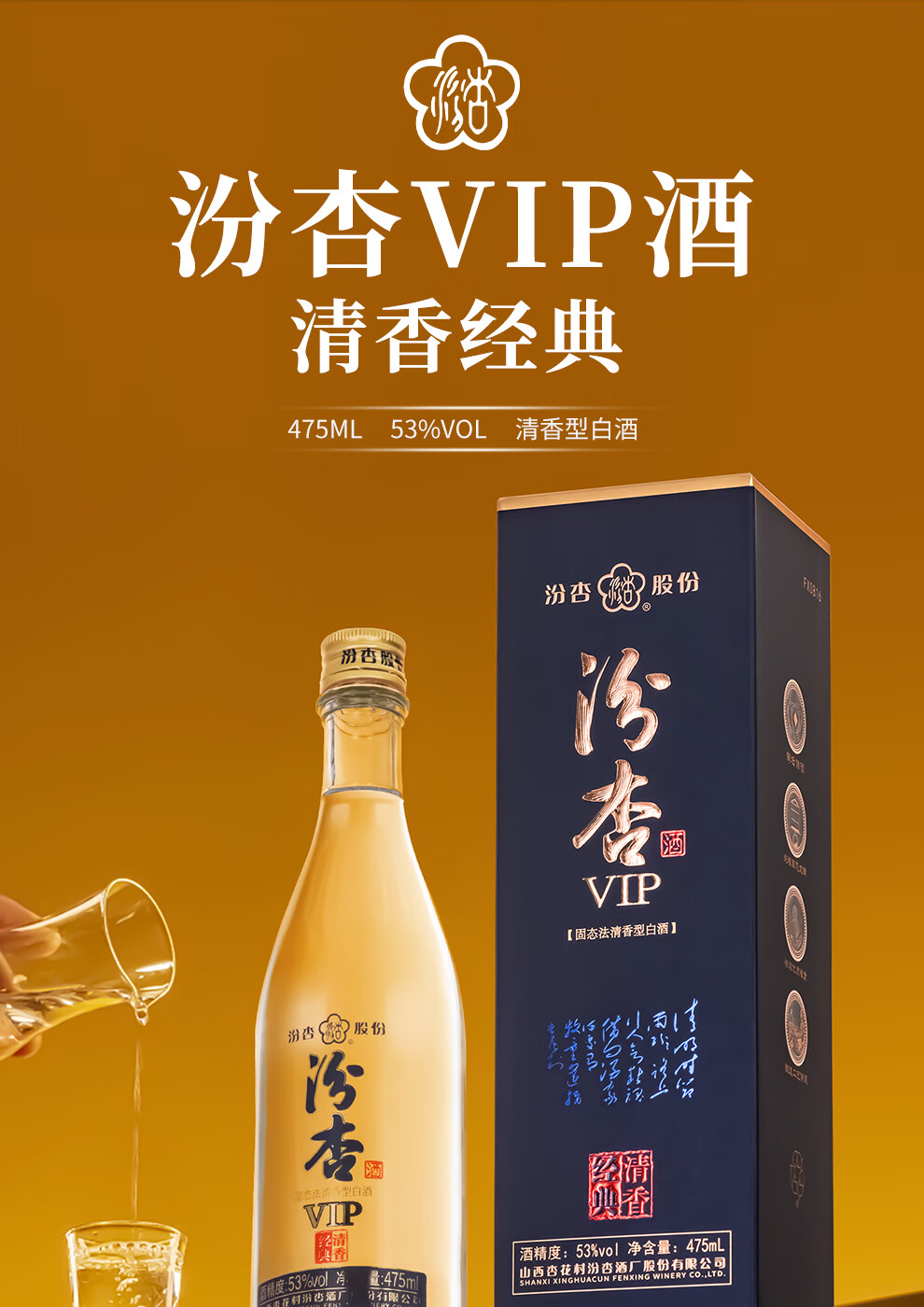 汾杏VIP清香经典 山西杏花村 清香型白酒 粮食酒 高端商务宴请 53%vol 475mL 2瓶 赠礼袋