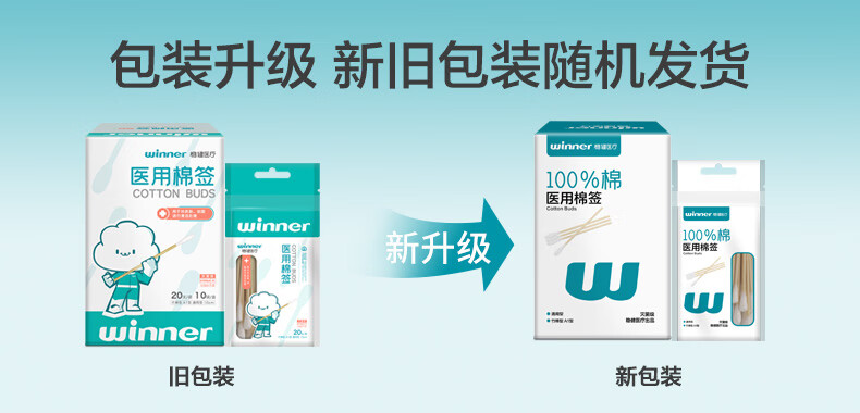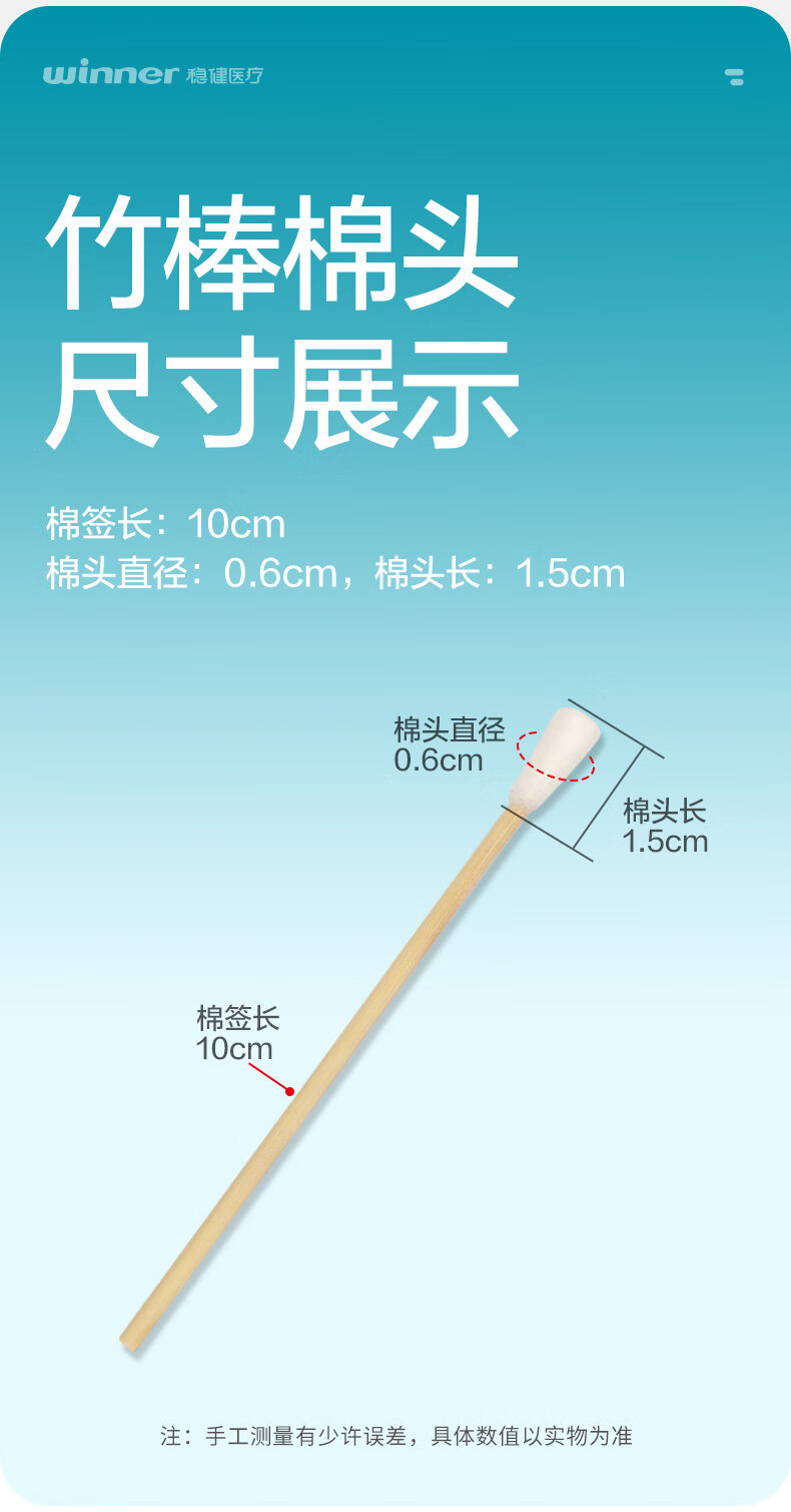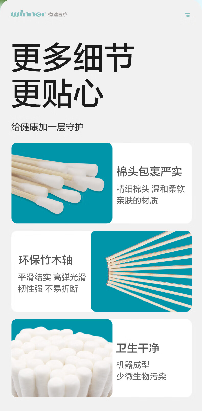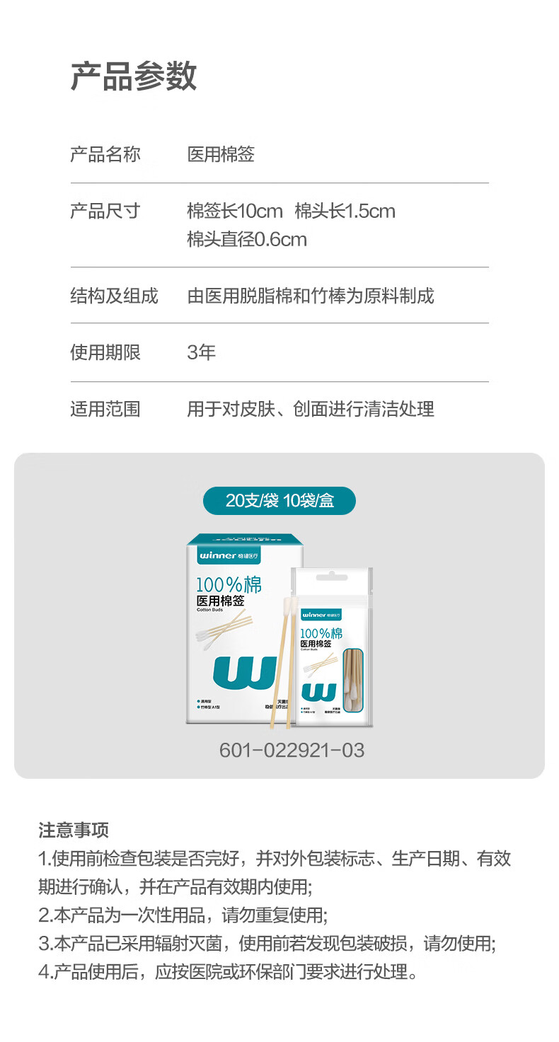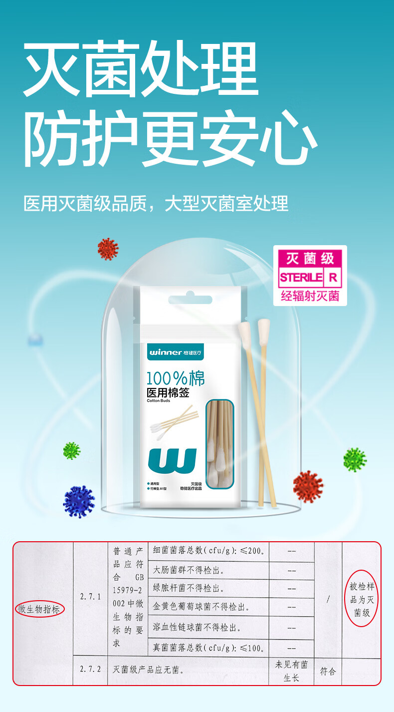 稳健医用灭菌消毒棉签棒平头20支*10袋(200支) 便携装清洁消毒伤口