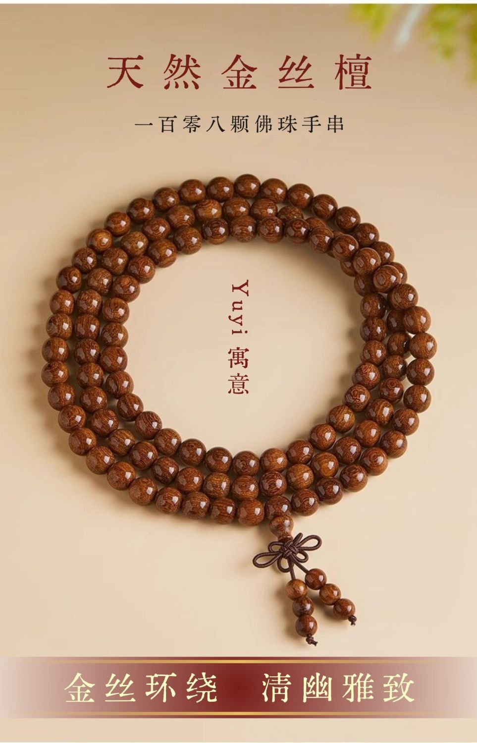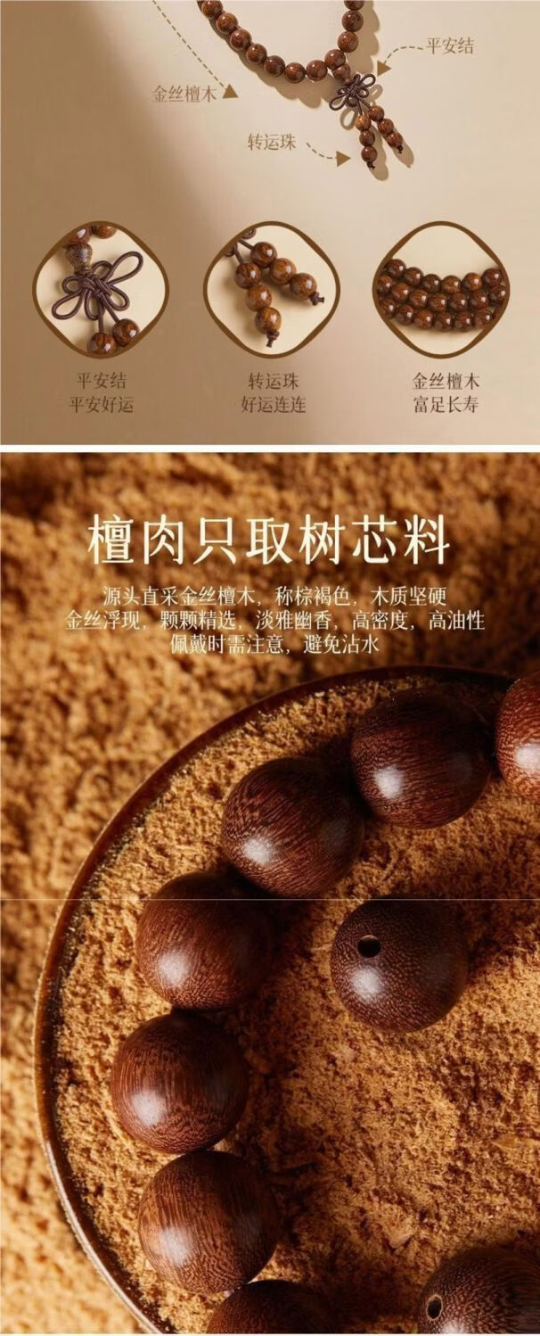 【尊贵品质】金丝108念珠老料手串木质文玩手串挂脖男女 【尊贵品质】金丝108颗木手串礼盒装