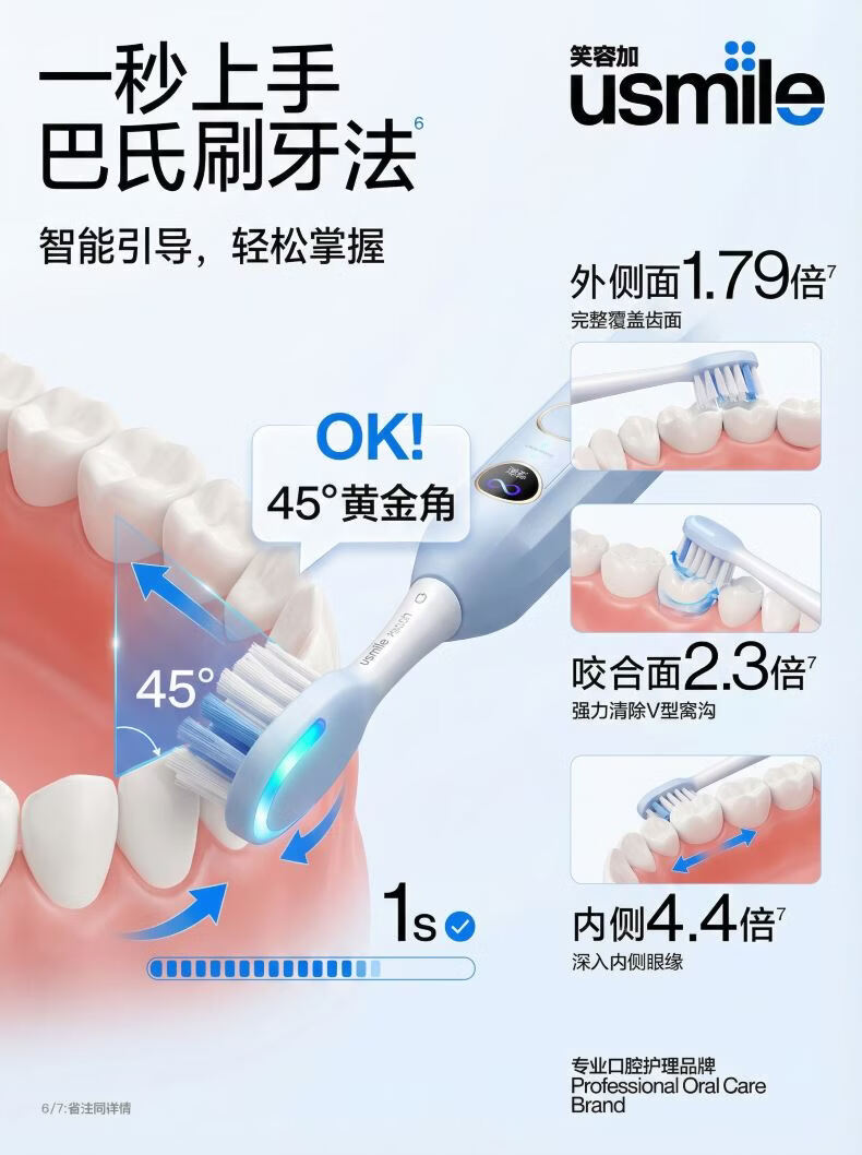 usmile笑容加电动牙刷 成人声波震动电动牙刷经典款 Y10净蓝 情人节礼物 生日礼物 年会礼品