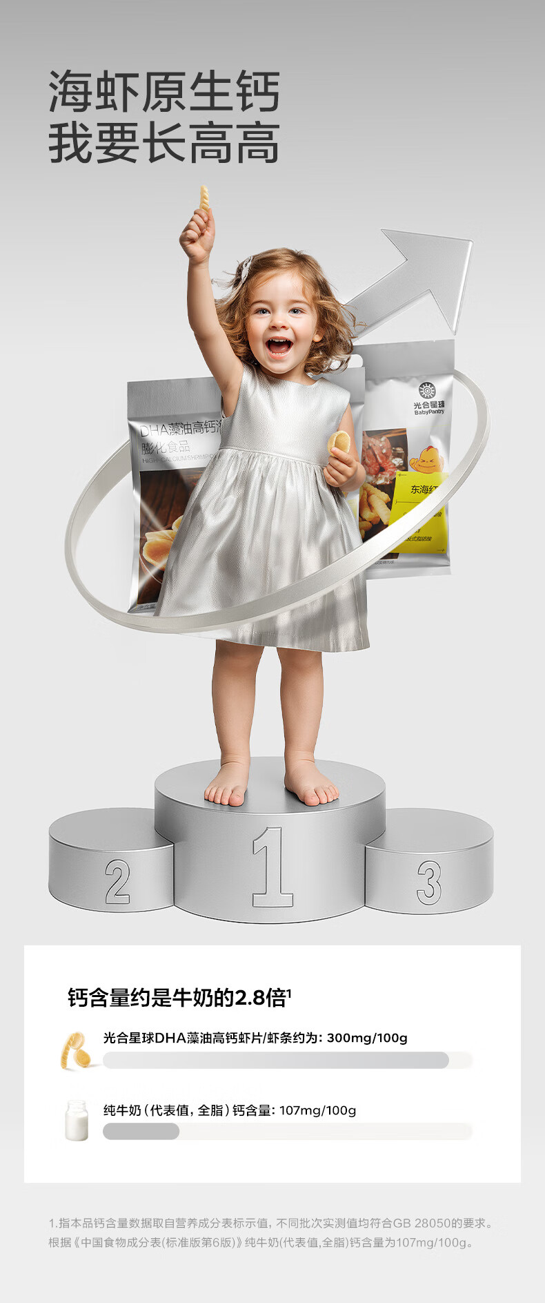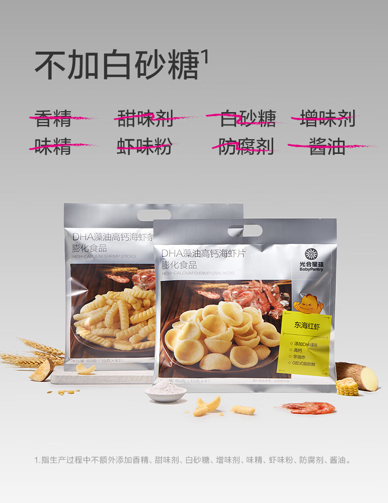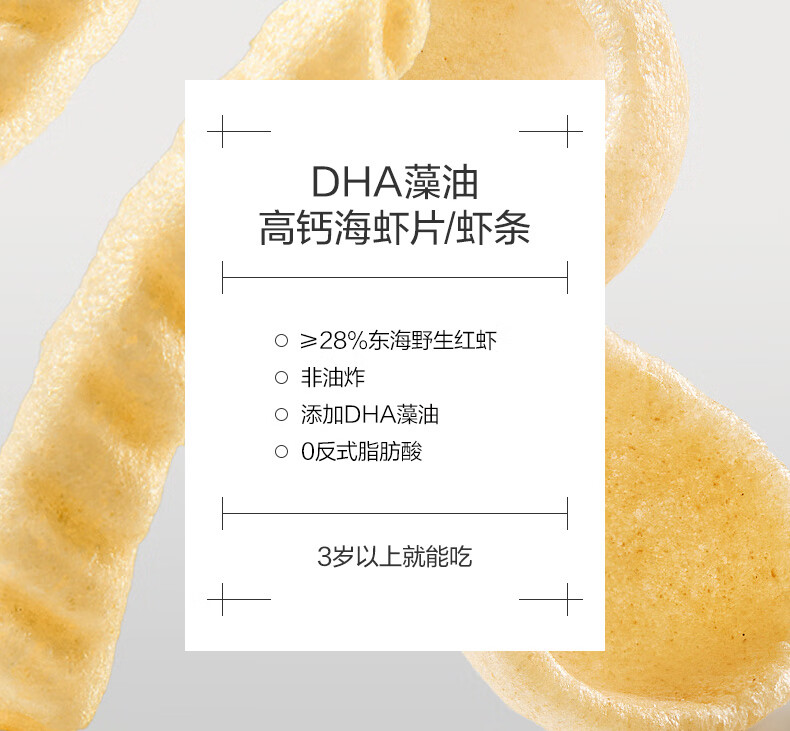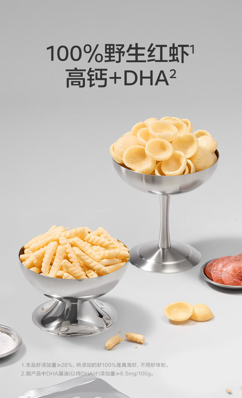 光合星球儿童零食DHA藻油高钙真虾片28%海虾条儿童零食非油炸 60g*3袋
