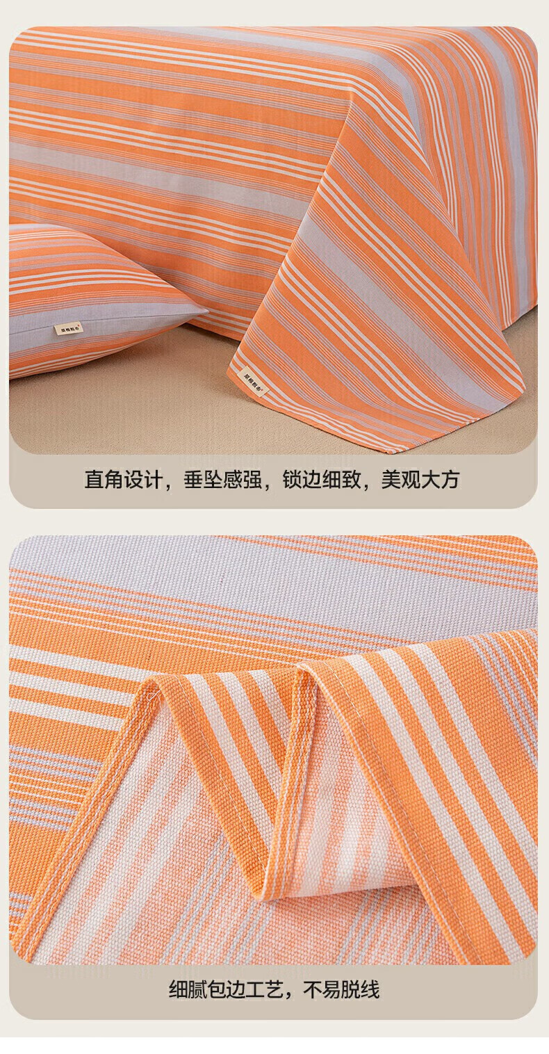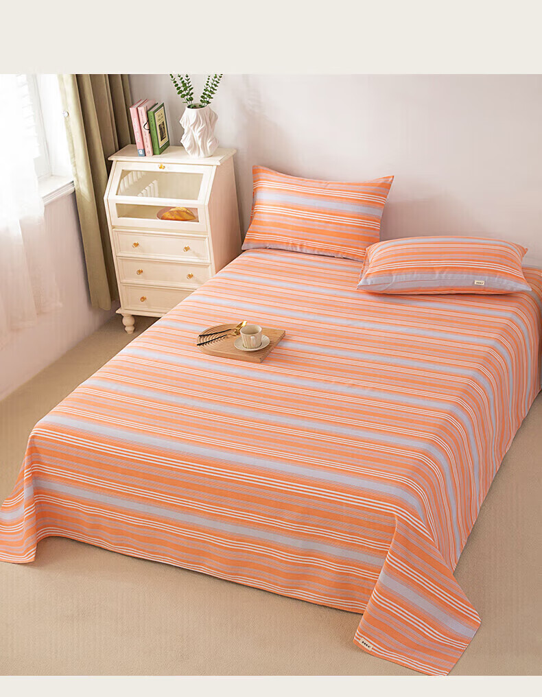 集物一册纯棉三件套学生宿舍单人上下铺床单被套被罩枕套全棉宿舍三件套 浅粉条纹(纯棉平纹) 40支 0.9m上下铺三件套 床单款 (被套150*200cm)