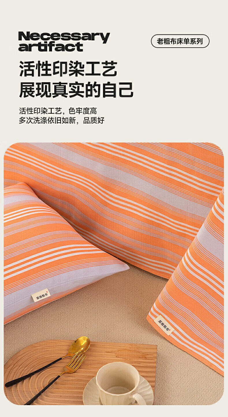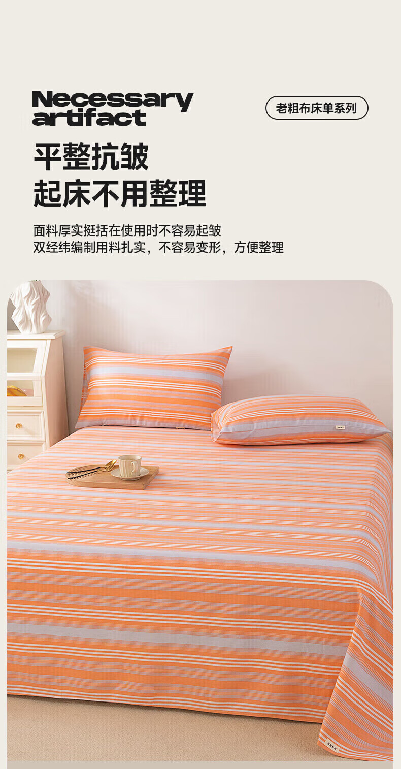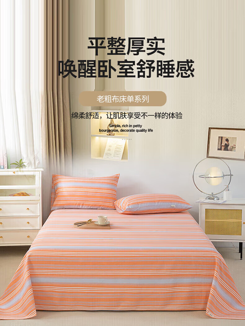 软贝原棉老粗布床单简约格子床单床上用品可水洗老粗布凉席床单 热恋 床单+枕套一对 230cm*240cm
