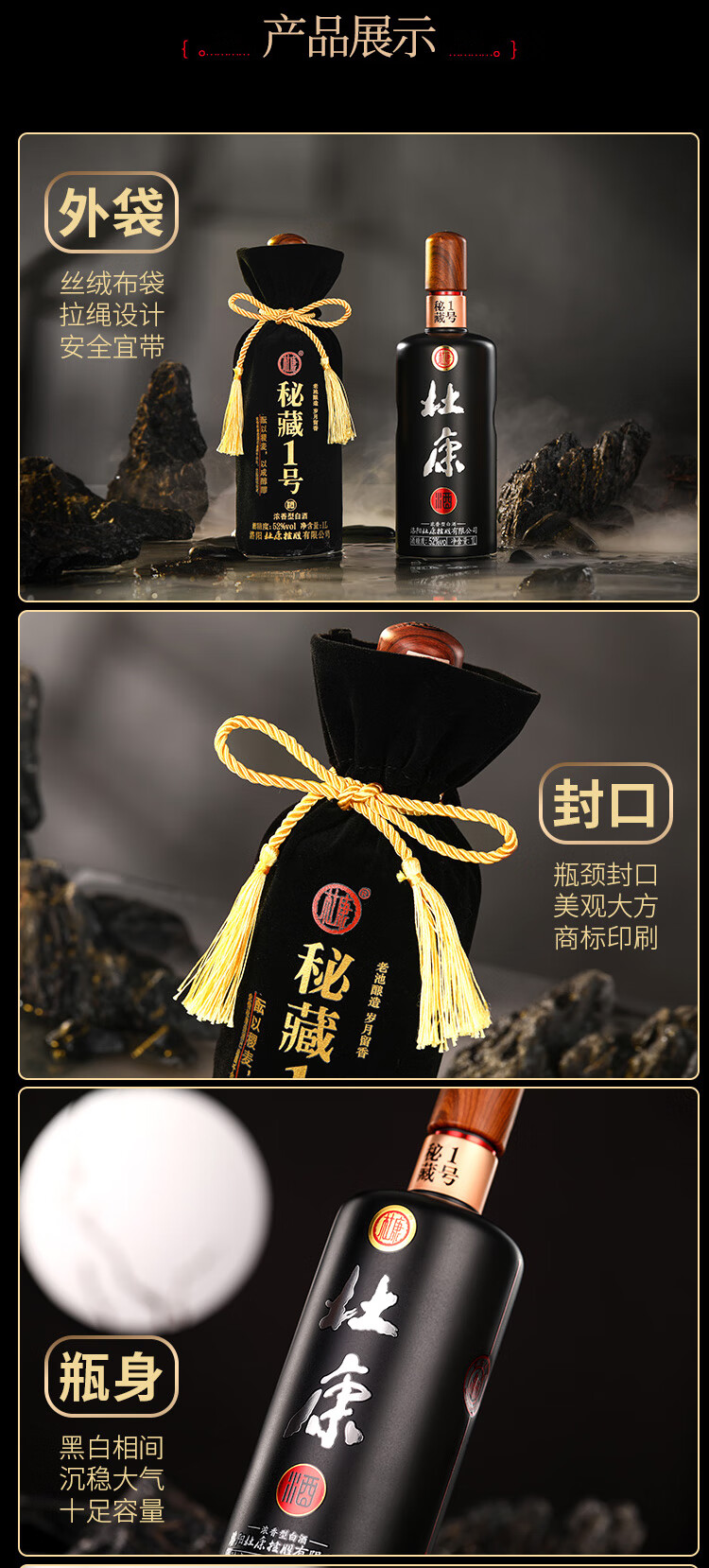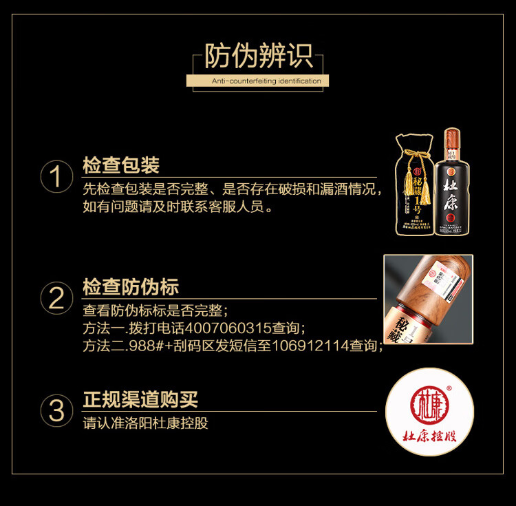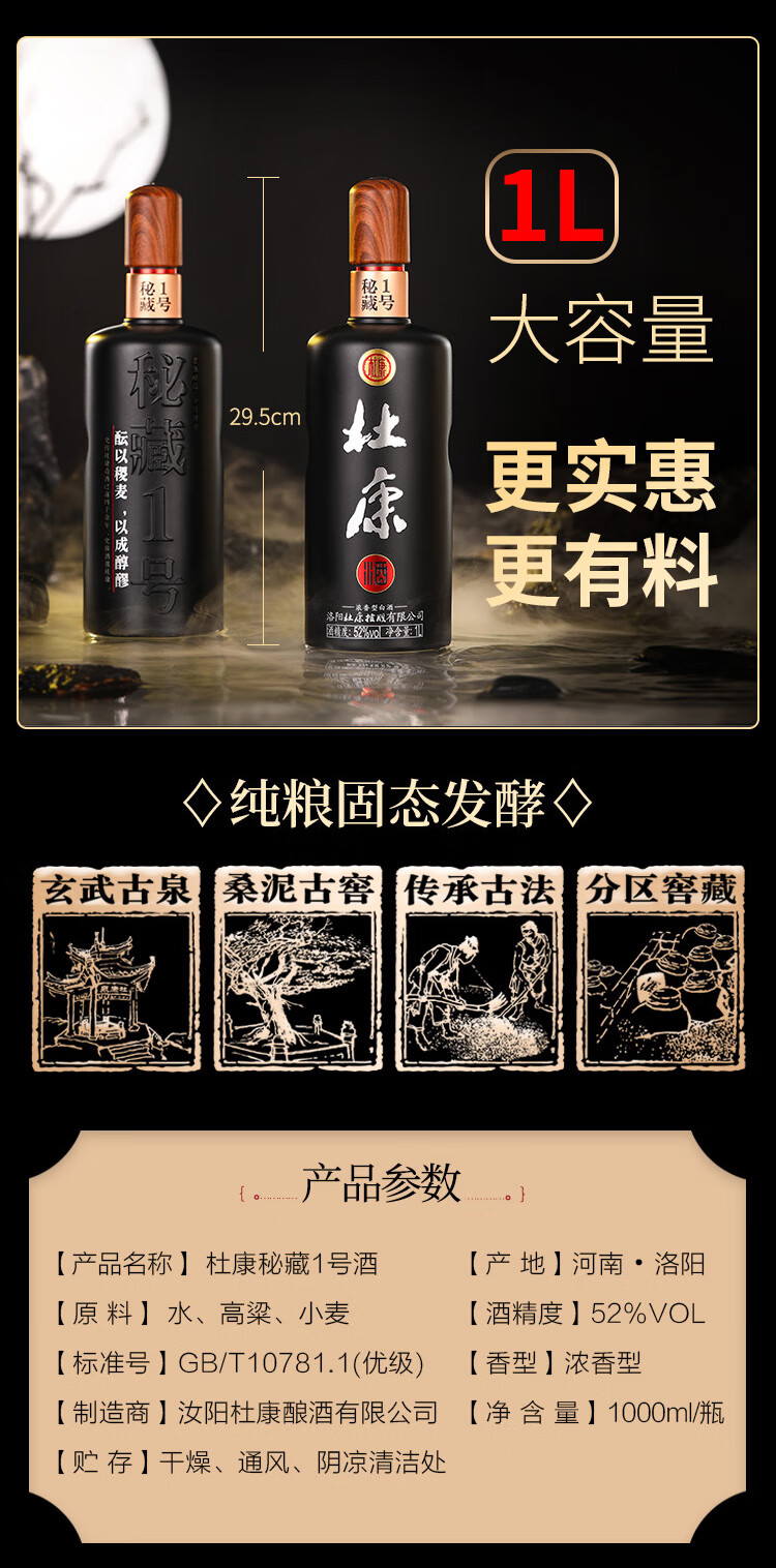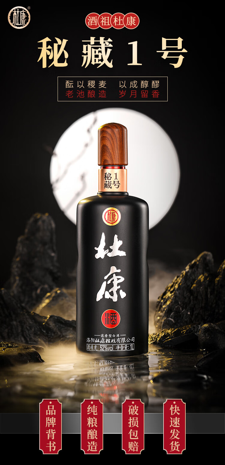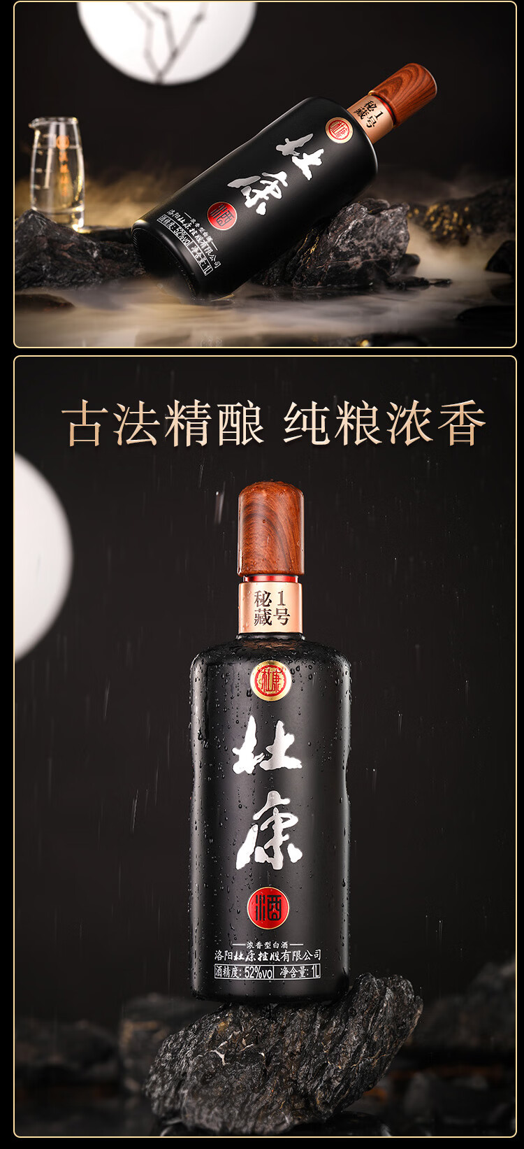 杜康秘藏1号 浓香型白酒 1L大容量 纯粮食酿造酒口粮酒高粱酒送礼 52度 1000mL 1瓶 单瓶装