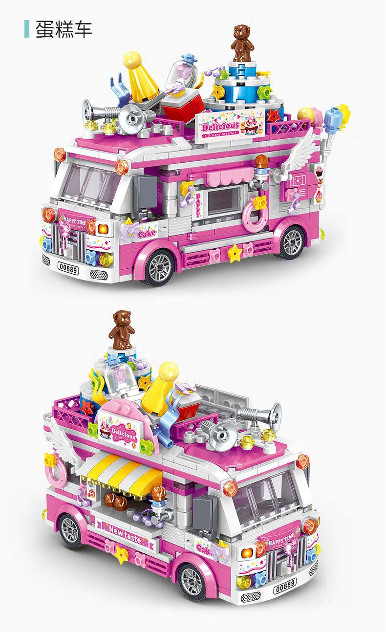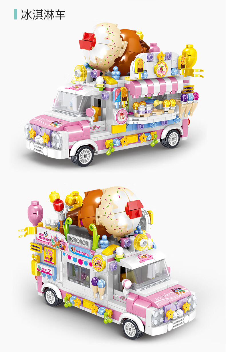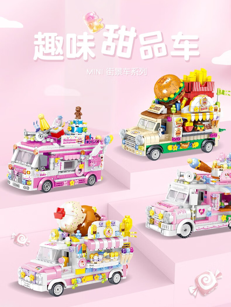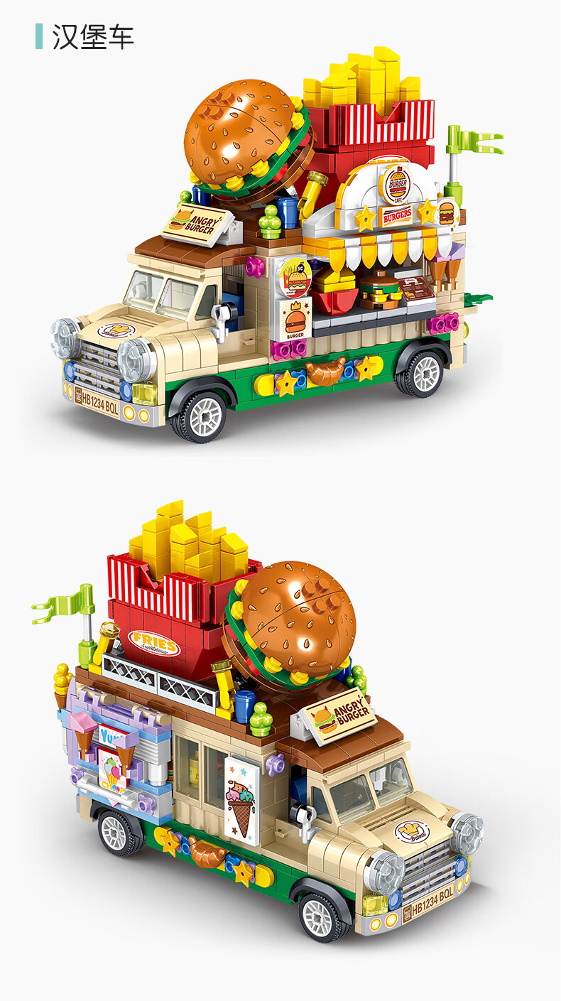 哲高 积木拼装雪糕车冰淇淋汉堡车美食车儿童玩具送女生生日礼物 00891汉堡车-638PCS