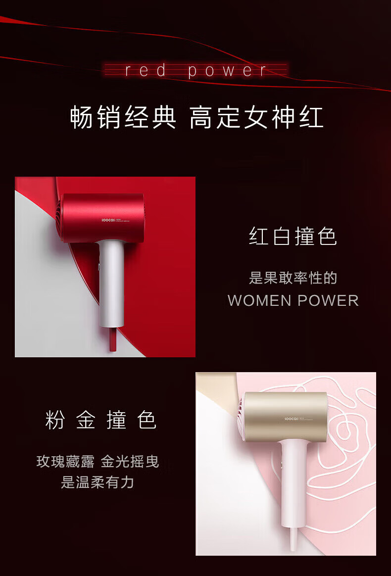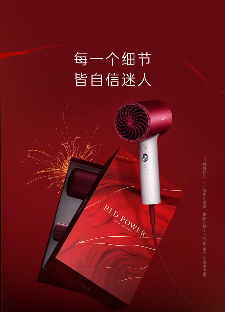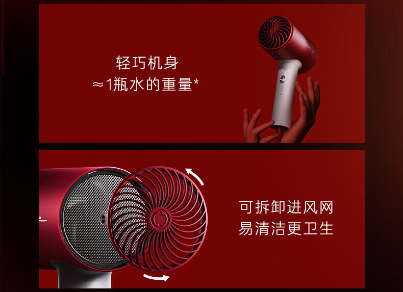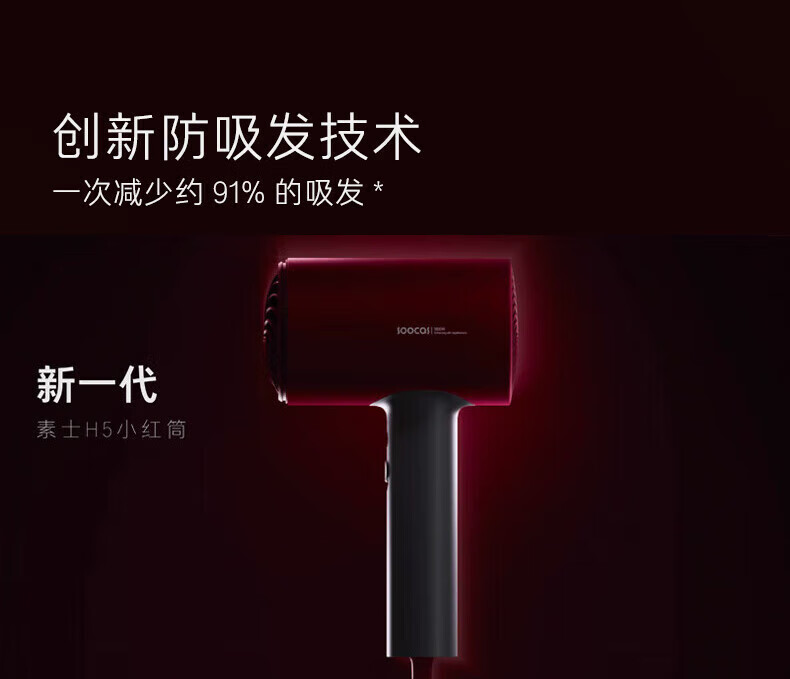 SOOCAS素士负离子护发吹风机H5恒温速干大功率电吹风 H5 女神红礼盒装
