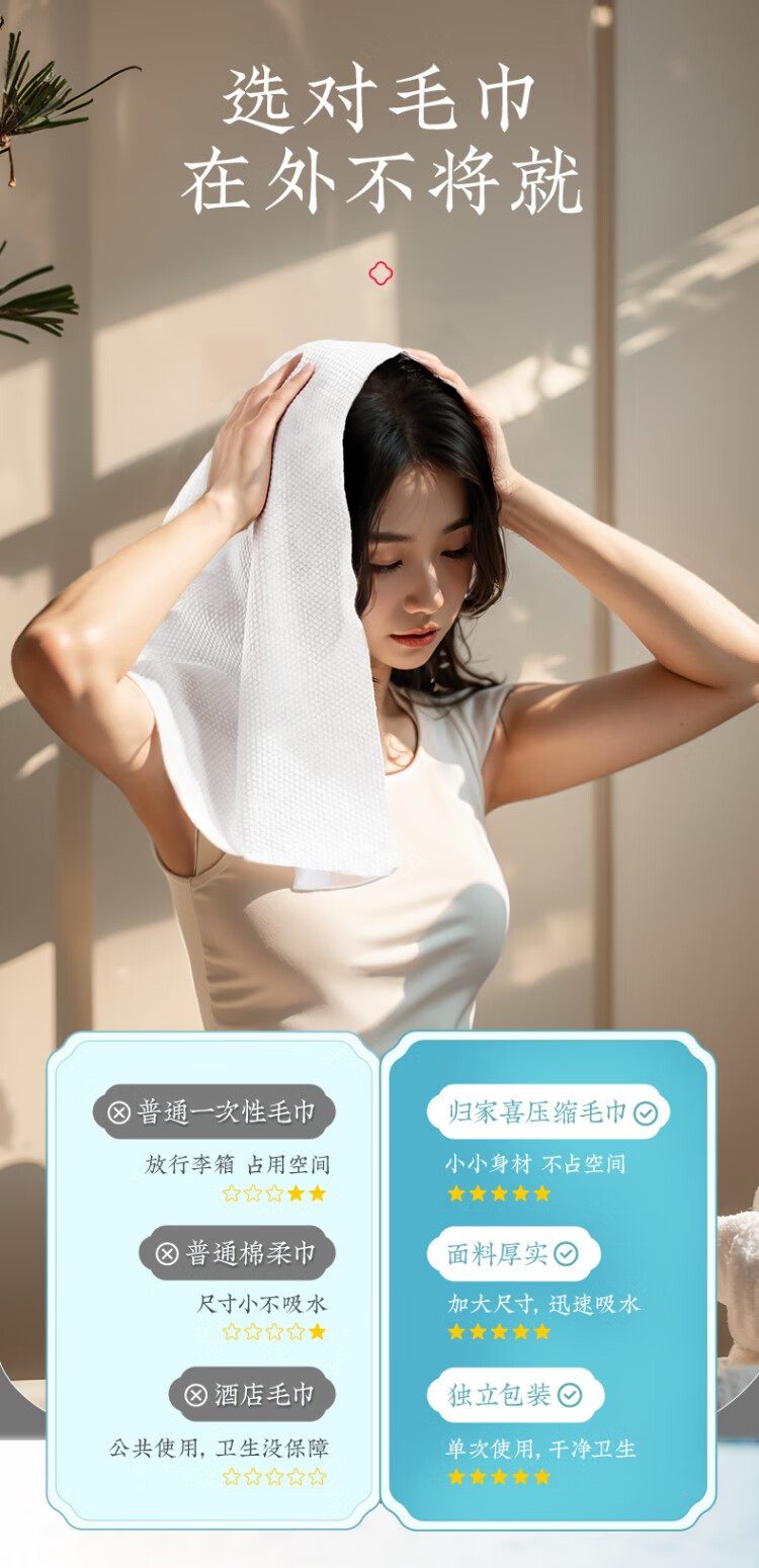 归家喜一次性浴巾真空包装加厚大号柔软便携大毛巾成人旅游酒店洗澡必备 一次性浴巾70*100cm【20条】