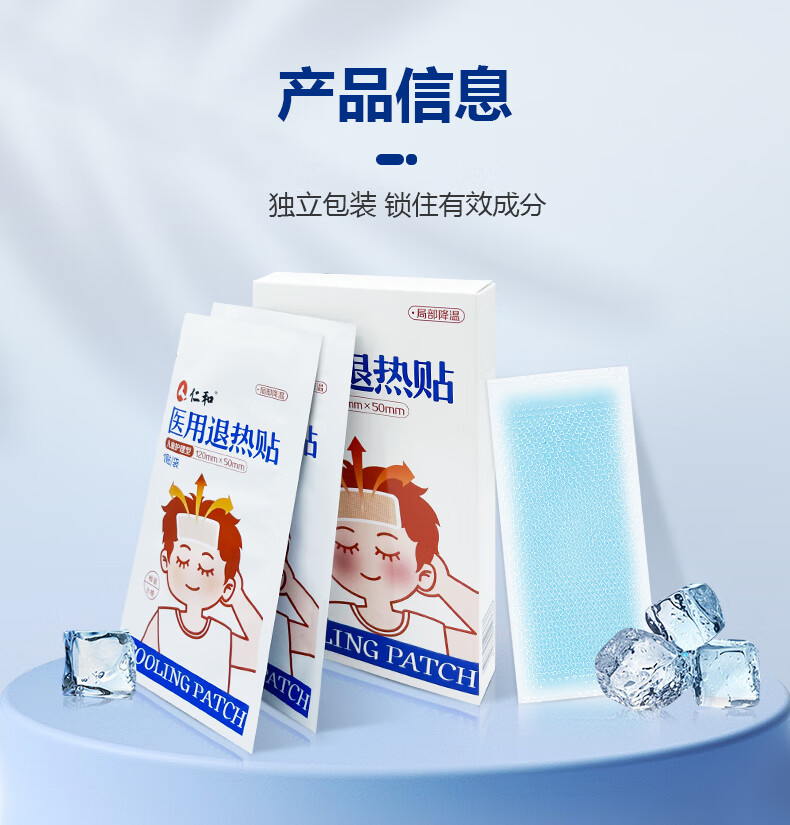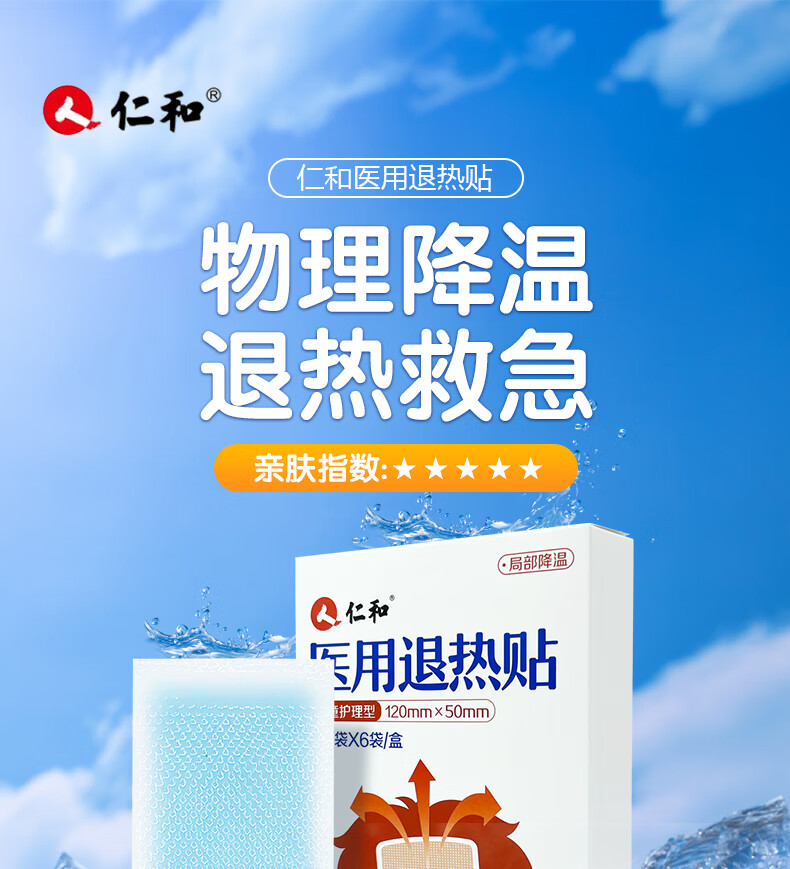 仁和医用退热贴3-12个月婴儿1-6-12岁幼儿童退烧清凉贴成人发烧发热 医用级退热贴3盒18贴装