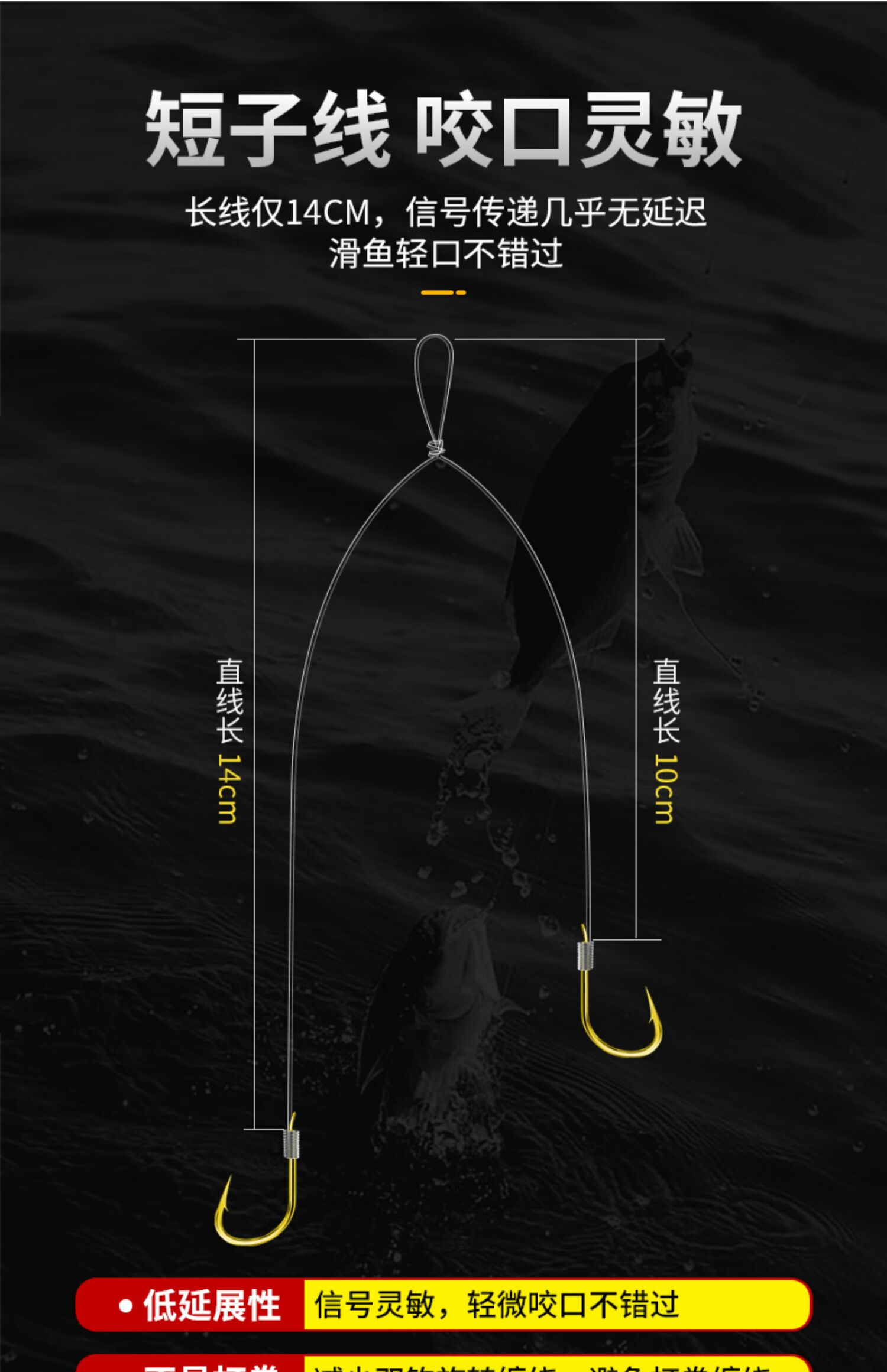 金袖短子线双钩袖钩成品绑好高档鱼钩金海夕秋田狐溪流小鱼钩鲫鱼 25cm短子线金袖有刺【钩5#线0.8+钩6#线1.0】 20付/盒【强化拉力】
