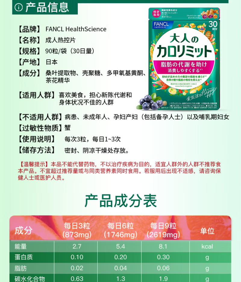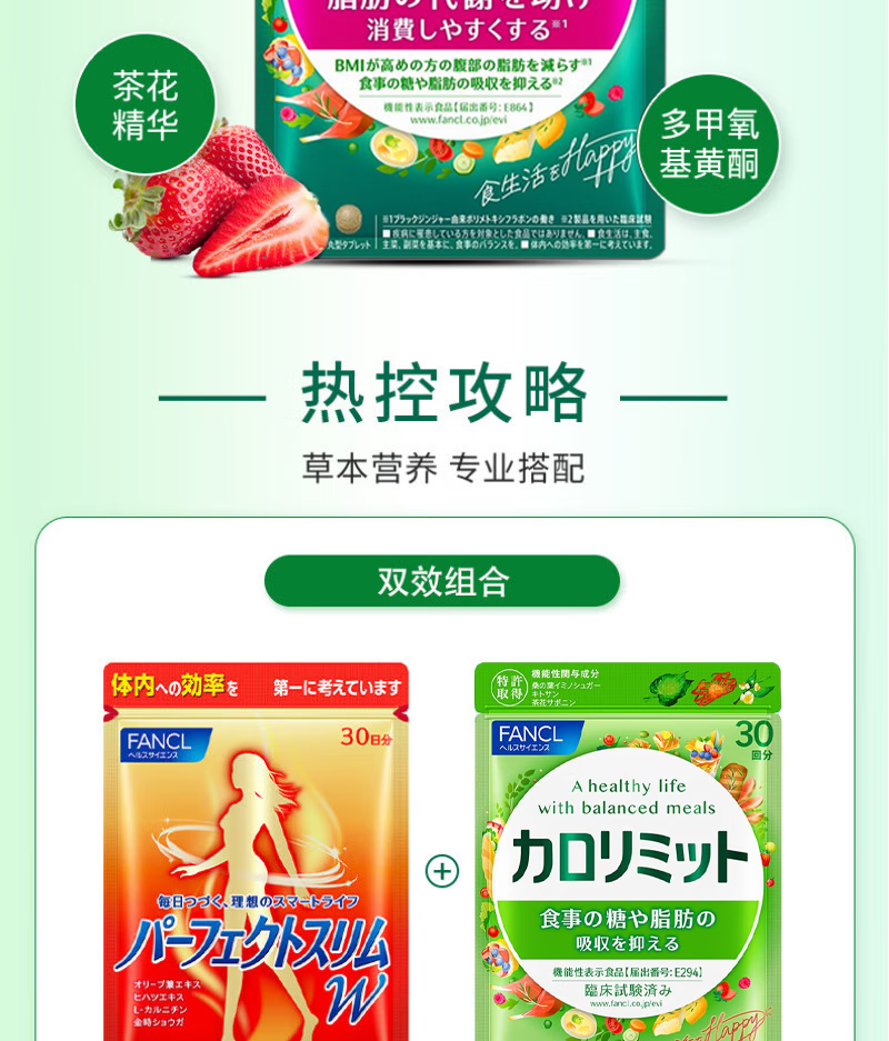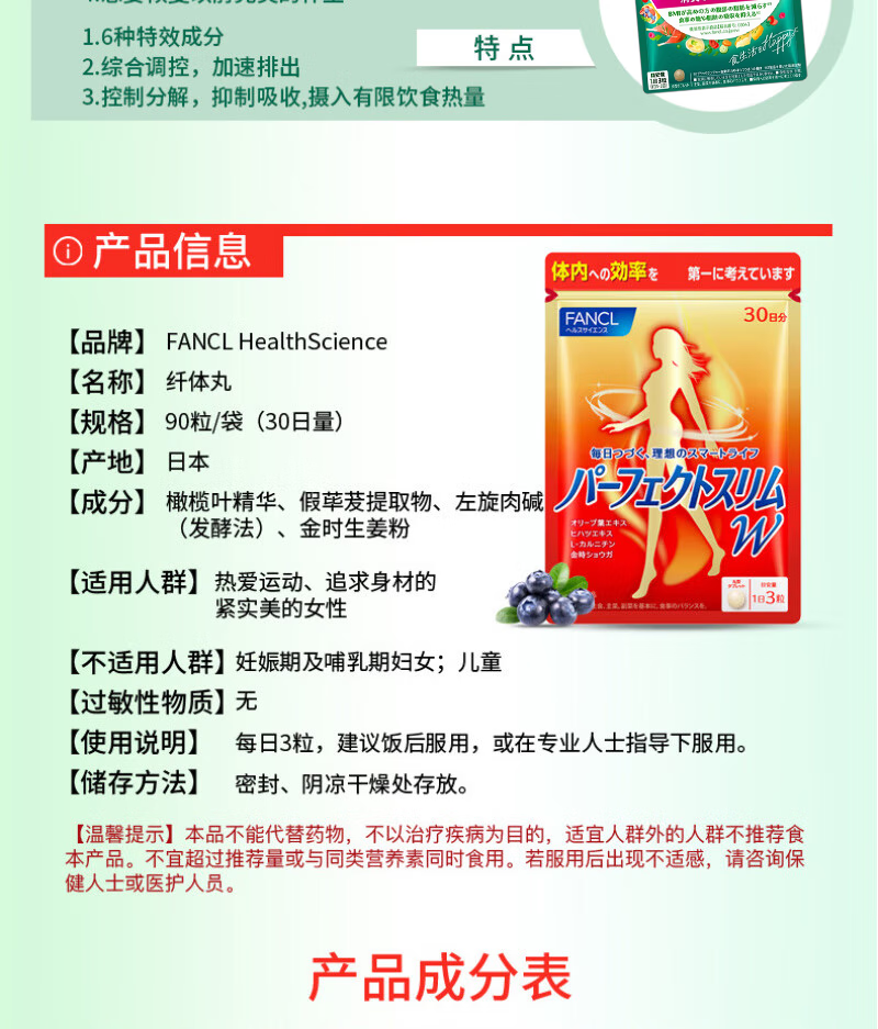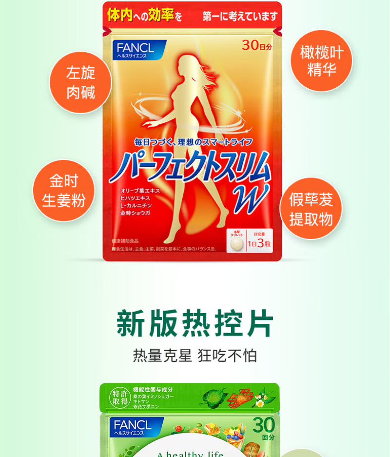 FANCL HealthScience芳珂 成人热控纤体丸 减重减脂减肥口服即食燃脂瘦肚子 热控片 90粒*1袋