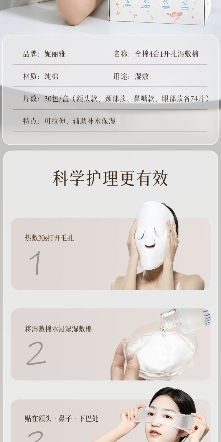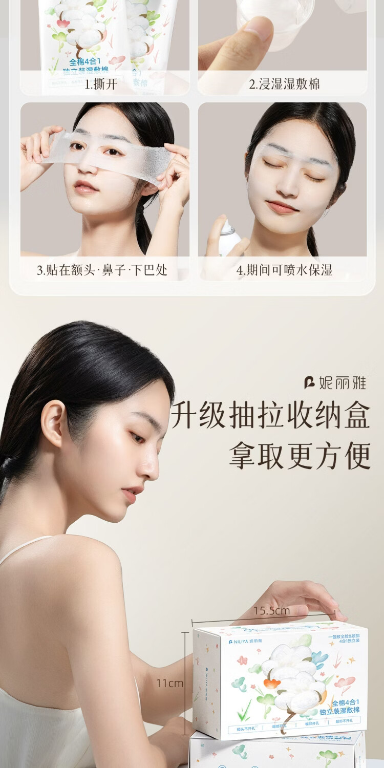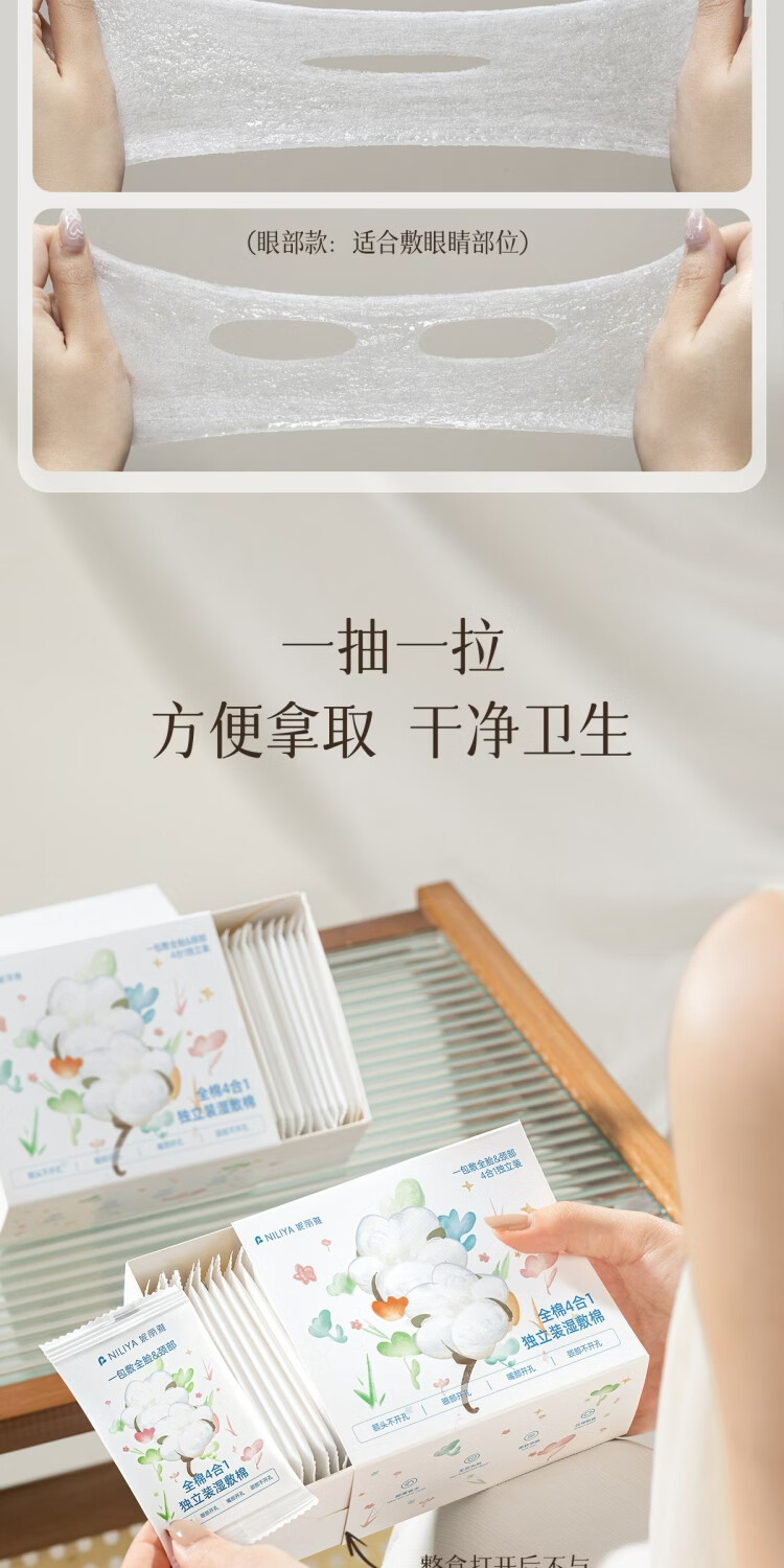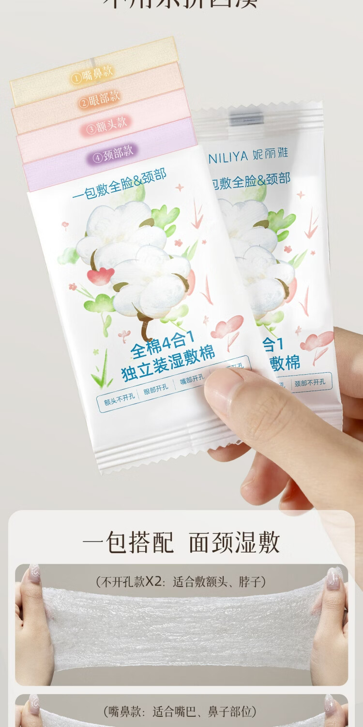 妮丽雅100纯棉开口四合一独立装湿敷棉可拉伸专用开孔式化妆棉 薄款 90包 【独立装/4合1】纯棉3盒/90包-送工具