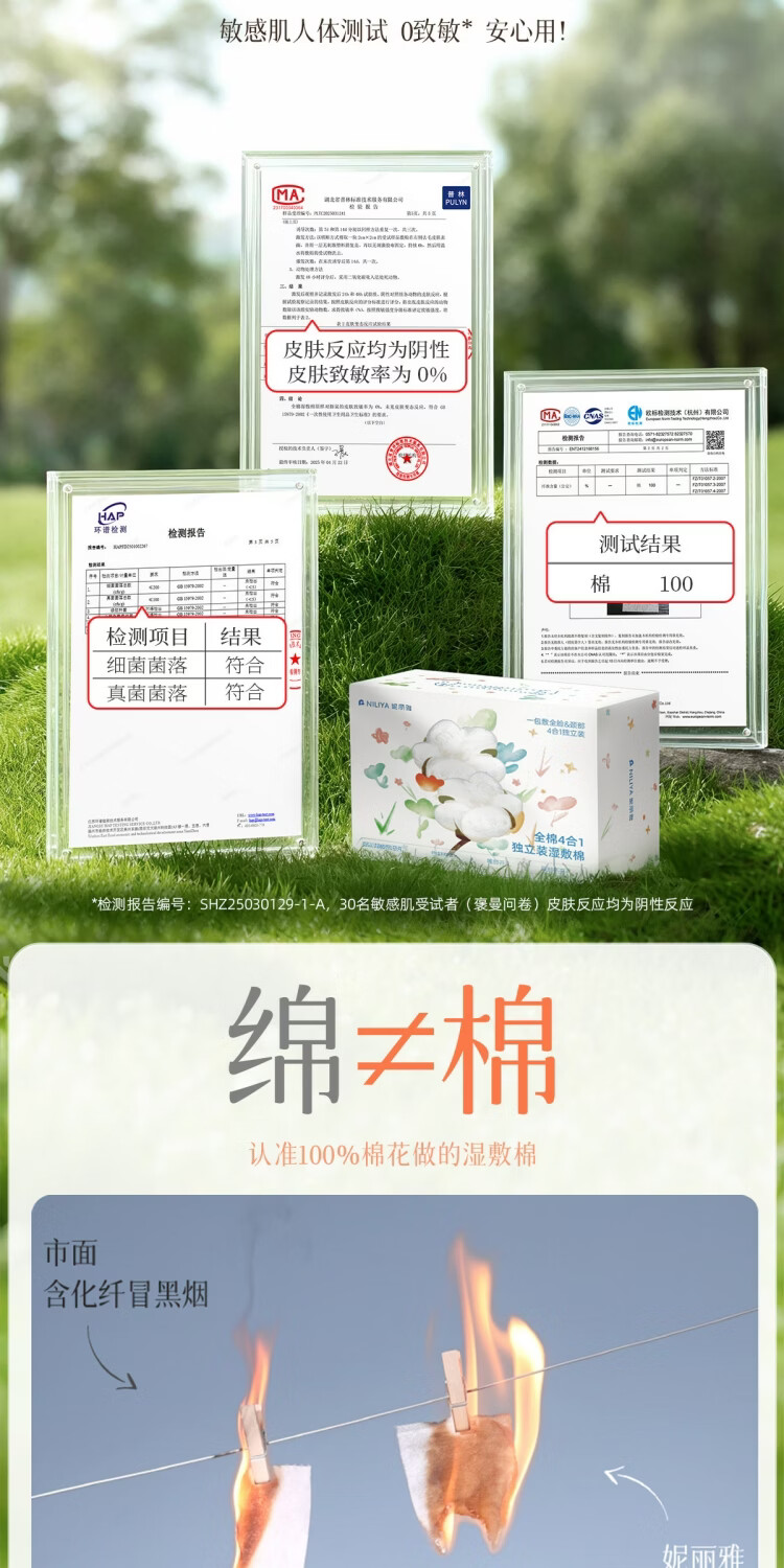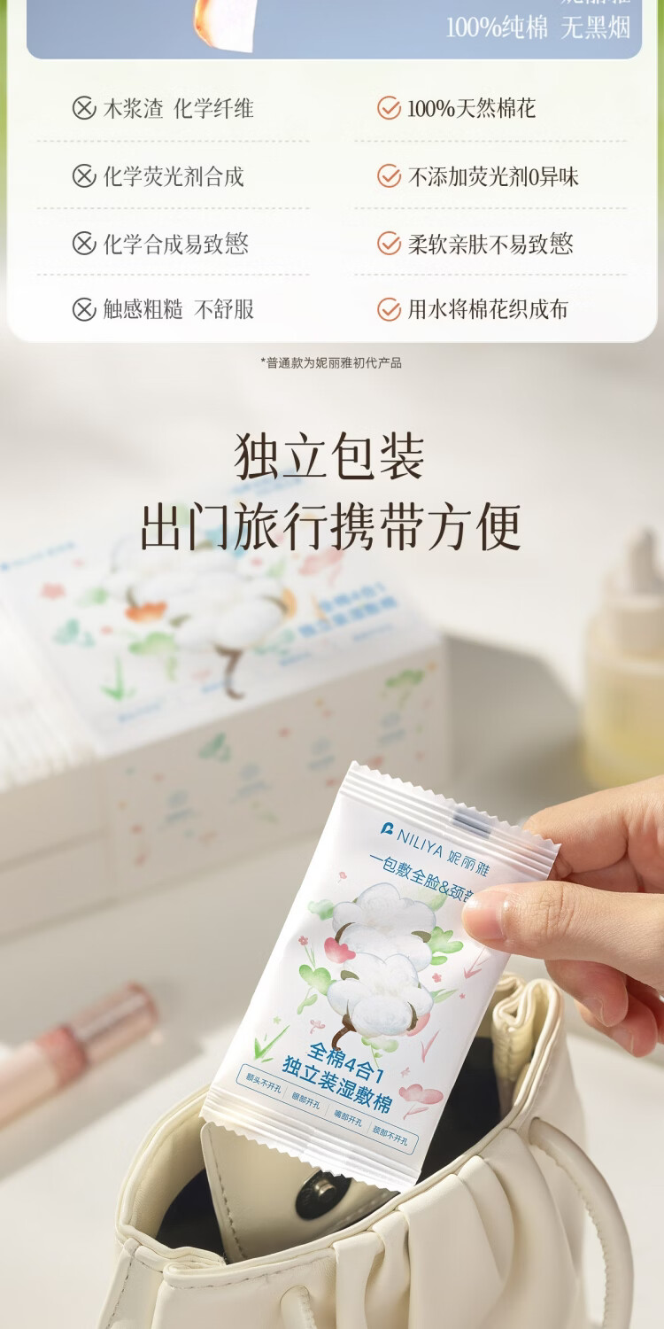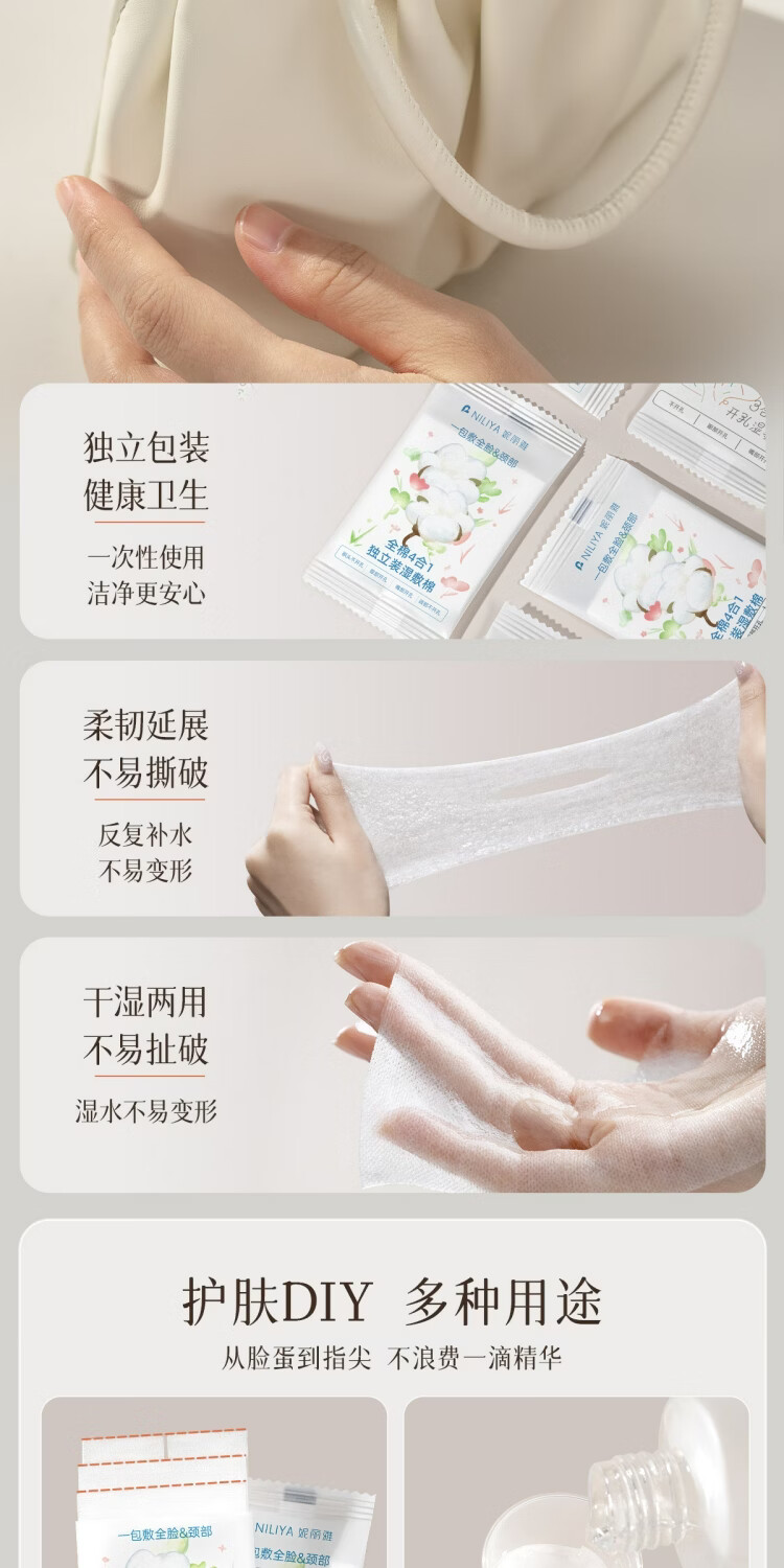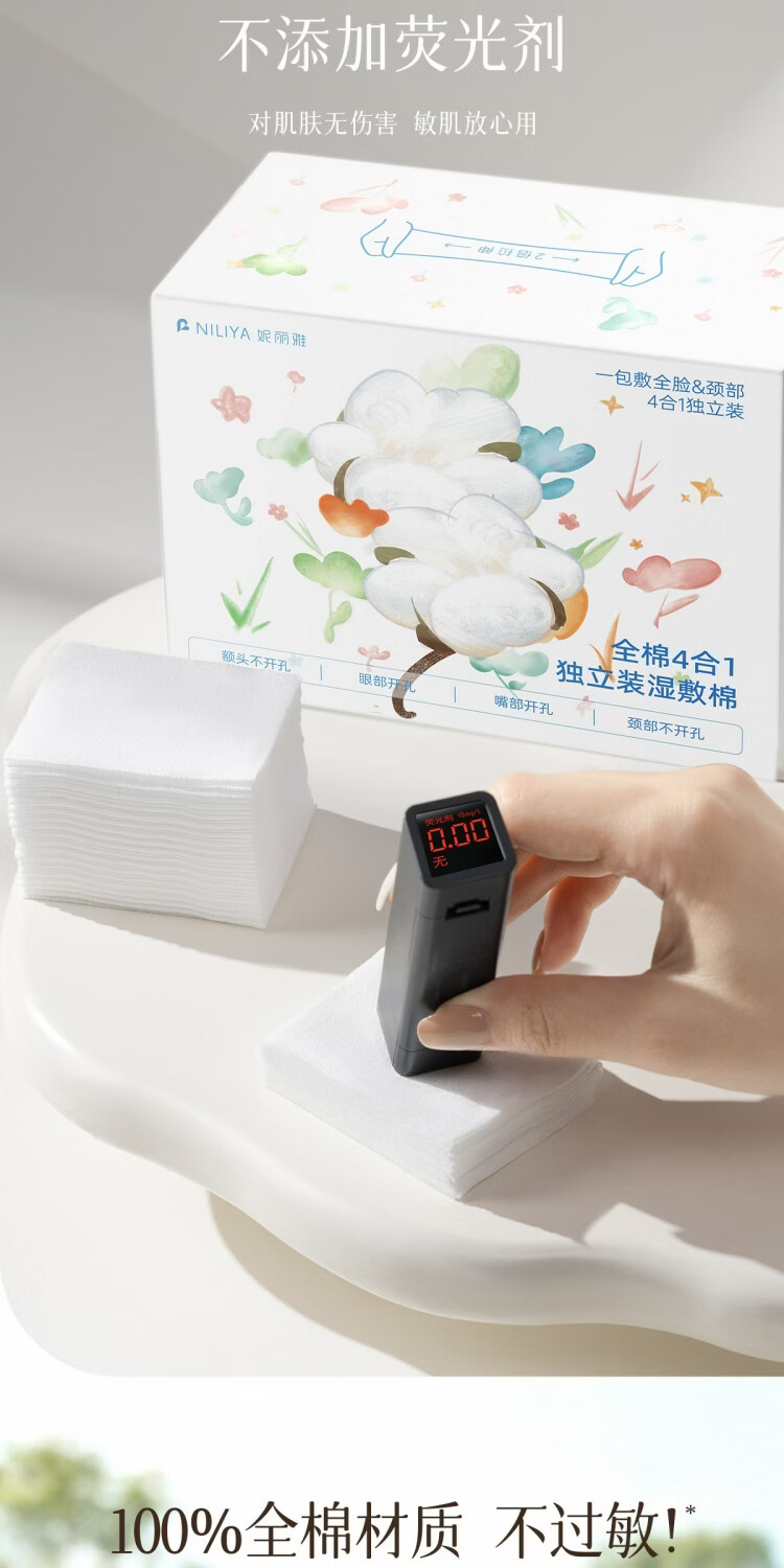 妮丽雅100纯棉开口四合一独立装湿敷棉可拉伸专用开孔式化妆棉 薄款 90包 【独立装/4合1】纯棉3盒/90包-送工具