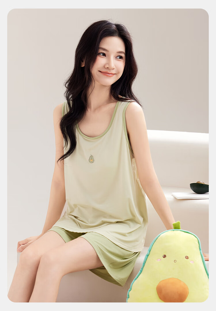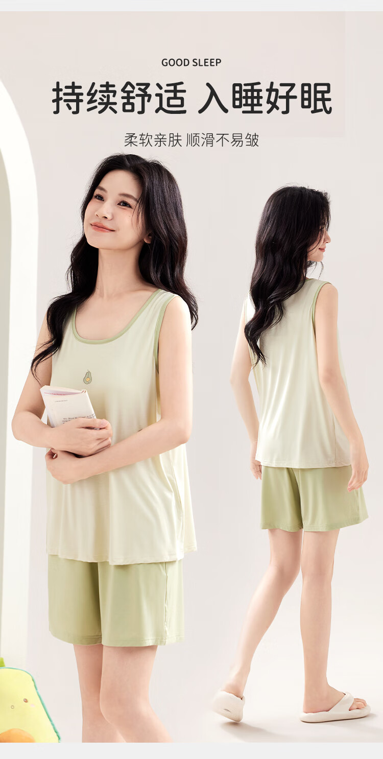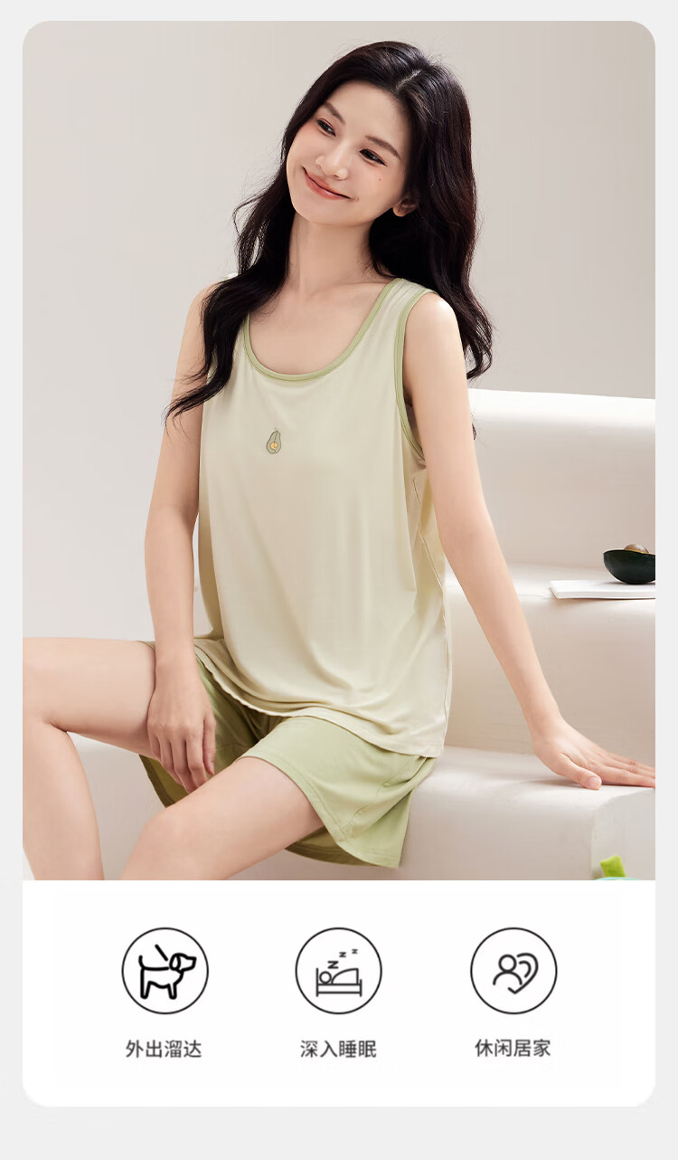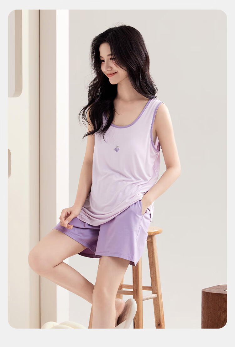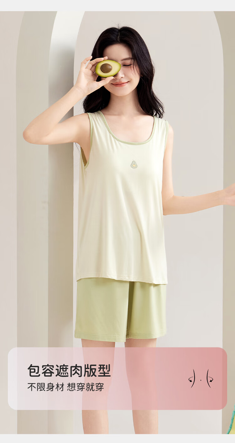 都市丽人女士睡衣女带胸垫春夏款无袖圆领短裤纯色休闲家居服套装可外穿 粉色 L