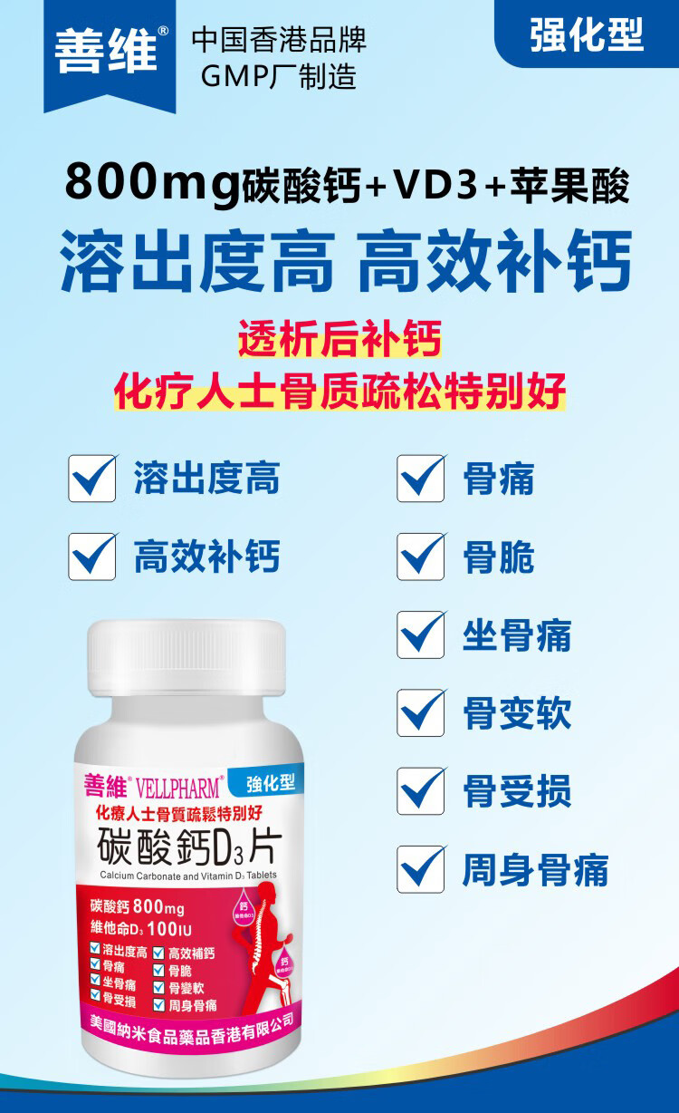 善维香港强化型钙D3片肾虚骨痛肾透析化疗缺钙骨质疏松关节痛腰痛骨痛 强化型钙D3片 60粒*1盒 +尿酸清 降嘌呤1盒