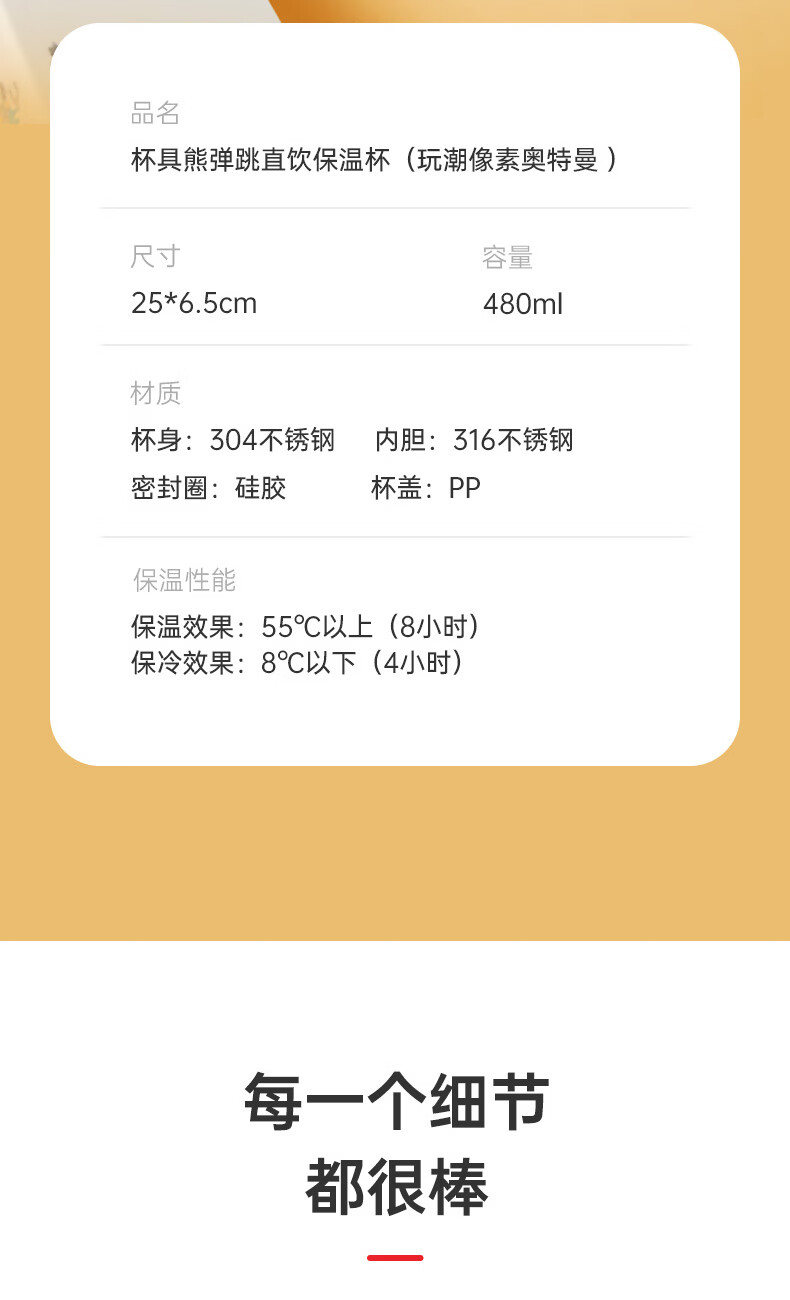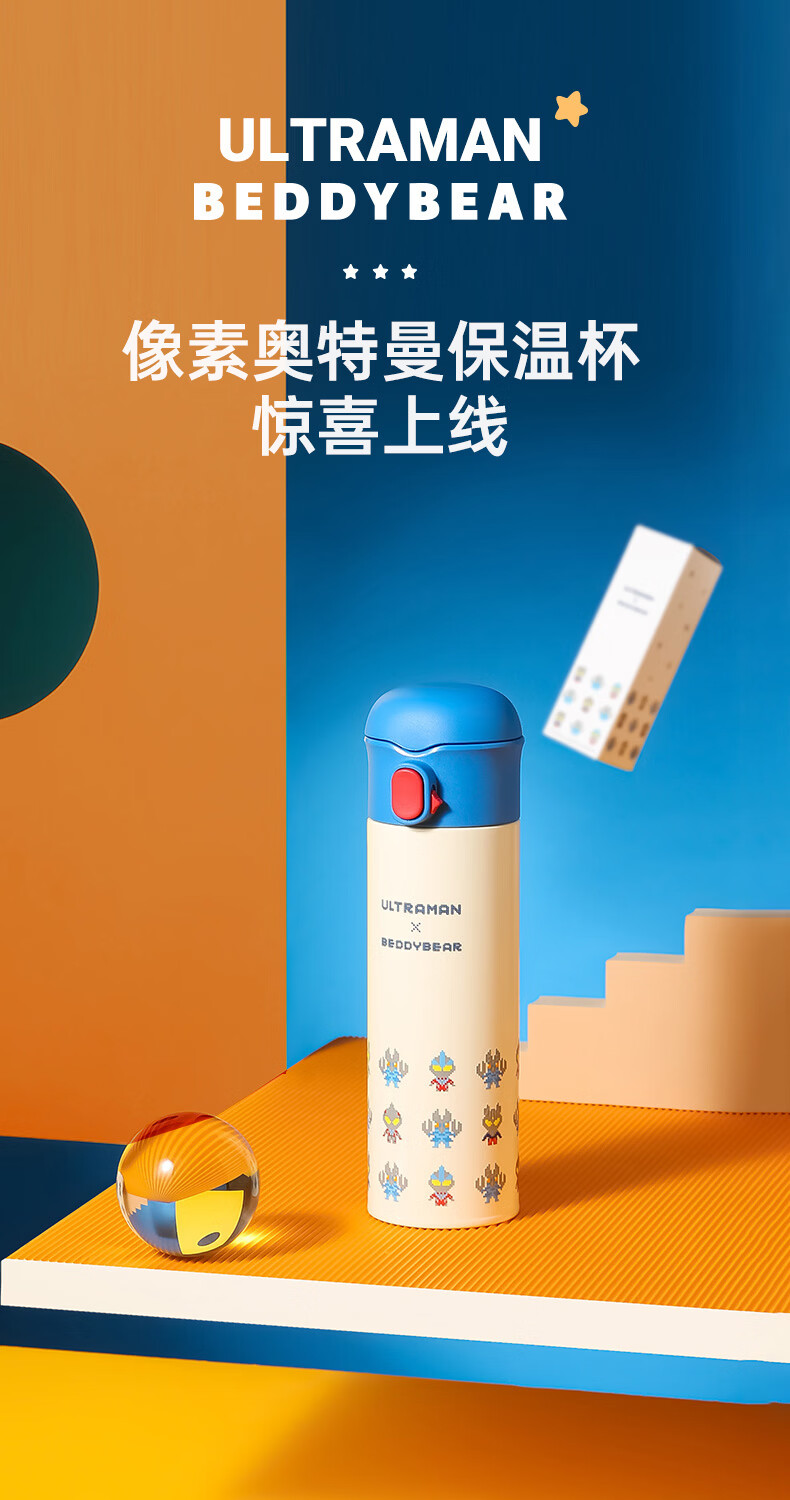 杯具熊(BEDDYBEAR) 成人女保温杯大容量316不锈钢学生水杯车载商务户外水杯送礼物 玩潮像素奥特曼480ml