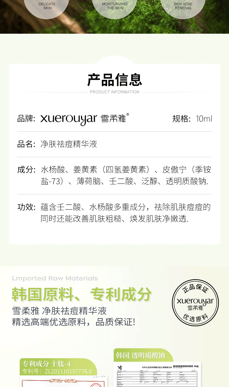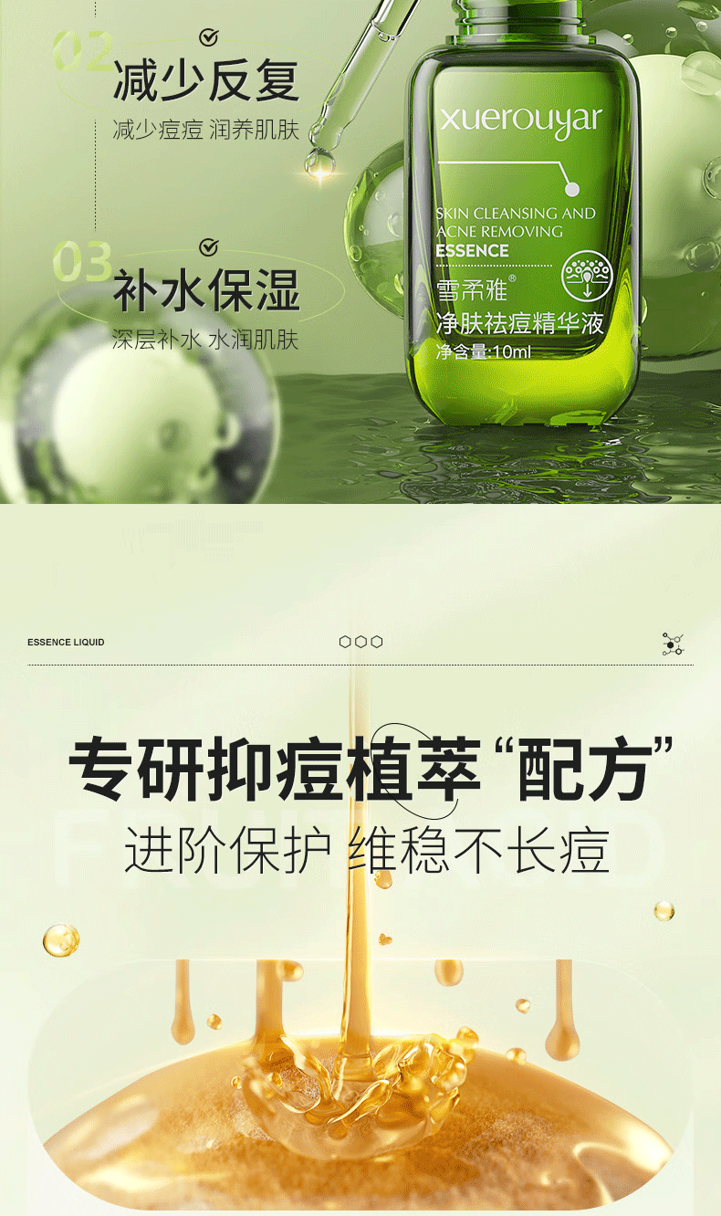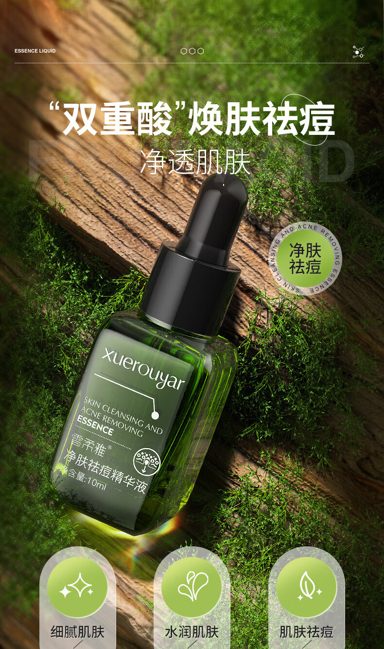 雪柔雅小绿瓶净肤祛痘精华液淡印祛痘精华闭口粉刺保湿黑白头痘坑可用 祛痘精华液*2瓶