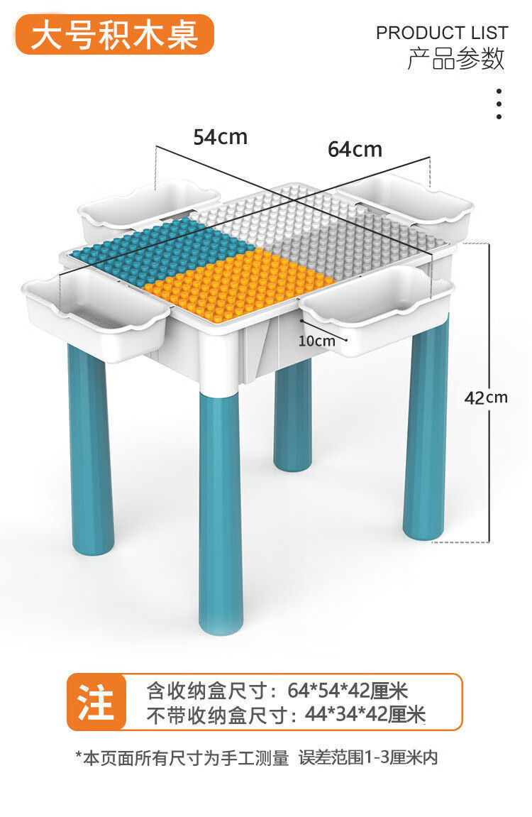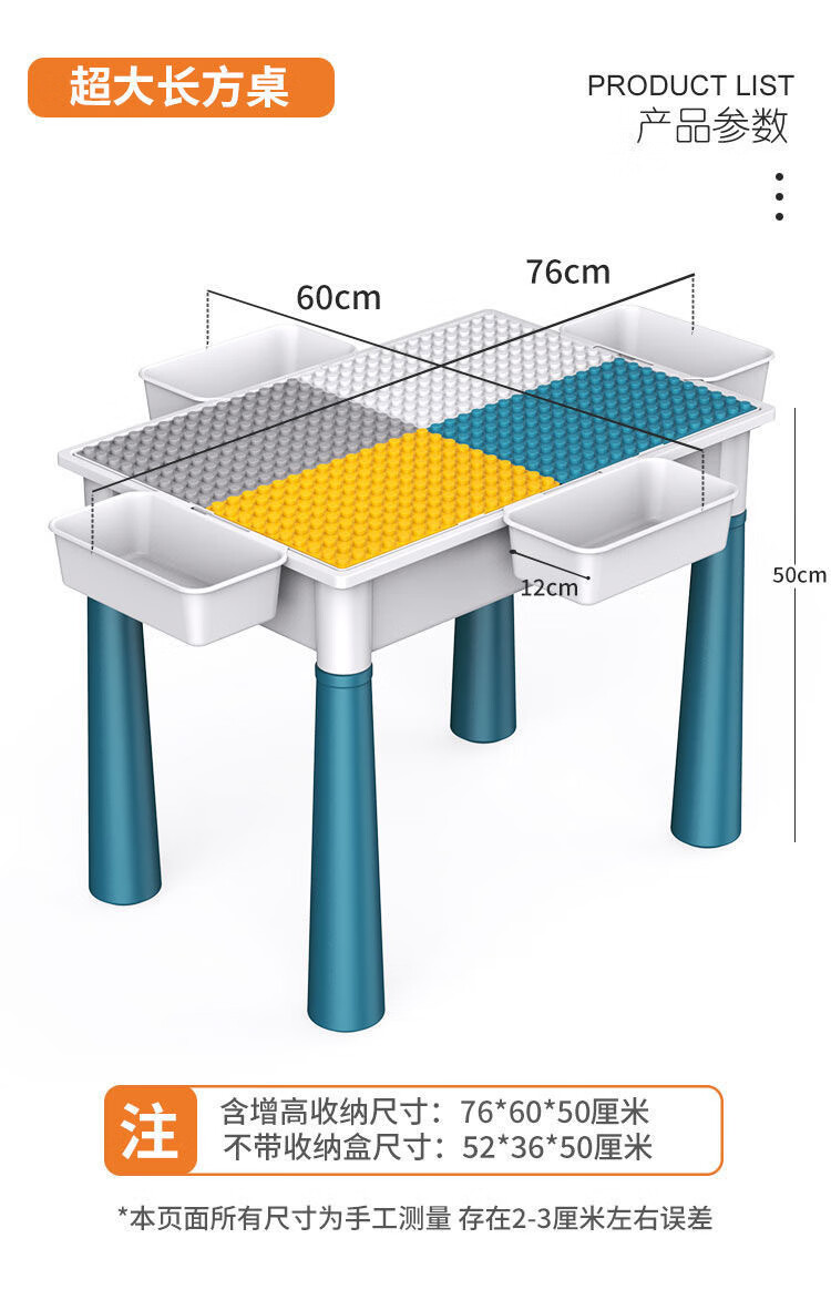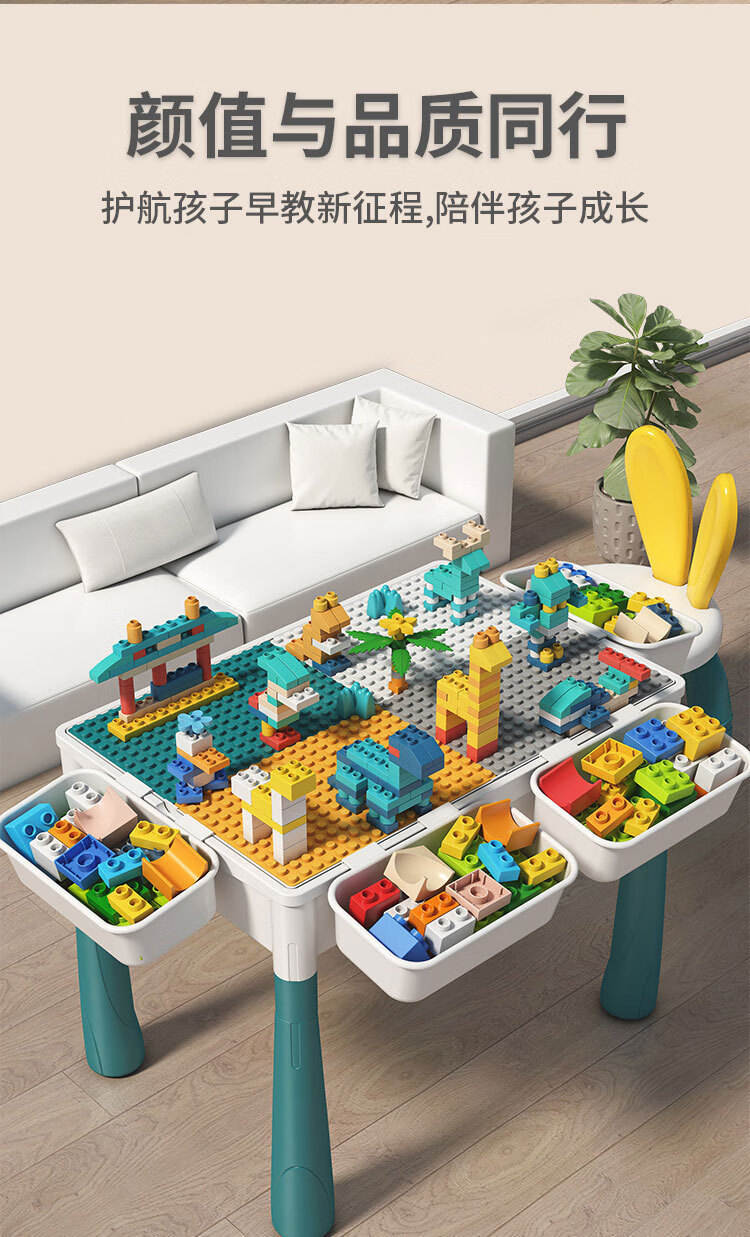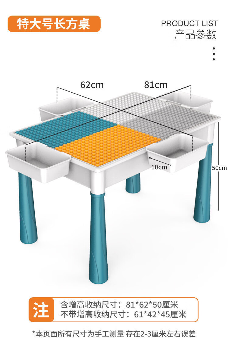 TKHE积木桌大颗粒大尺寸1岁到3岁3-12岁大颗粒多功能积木学习桌儿童 特大号加长桌+1椅+502大颗粒