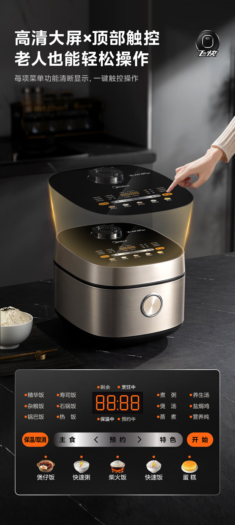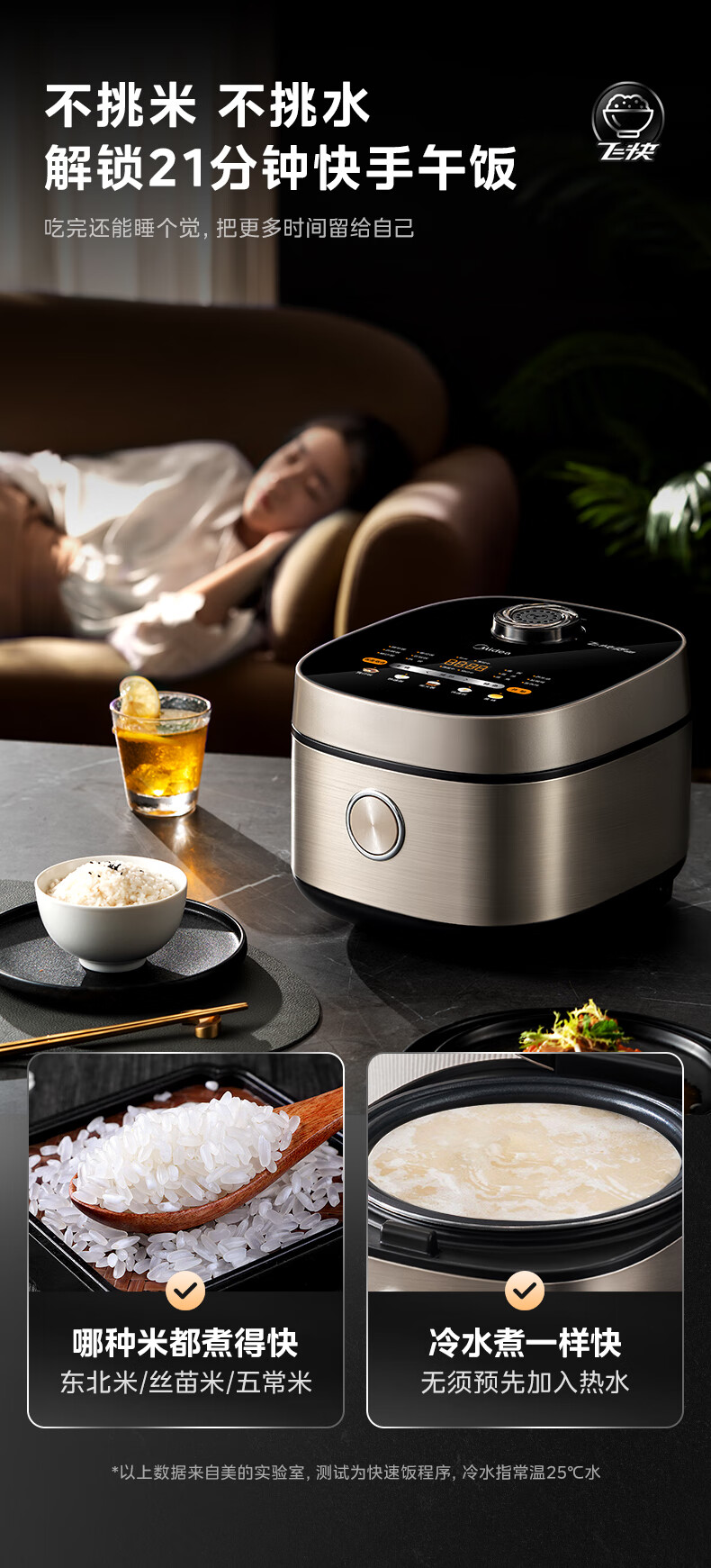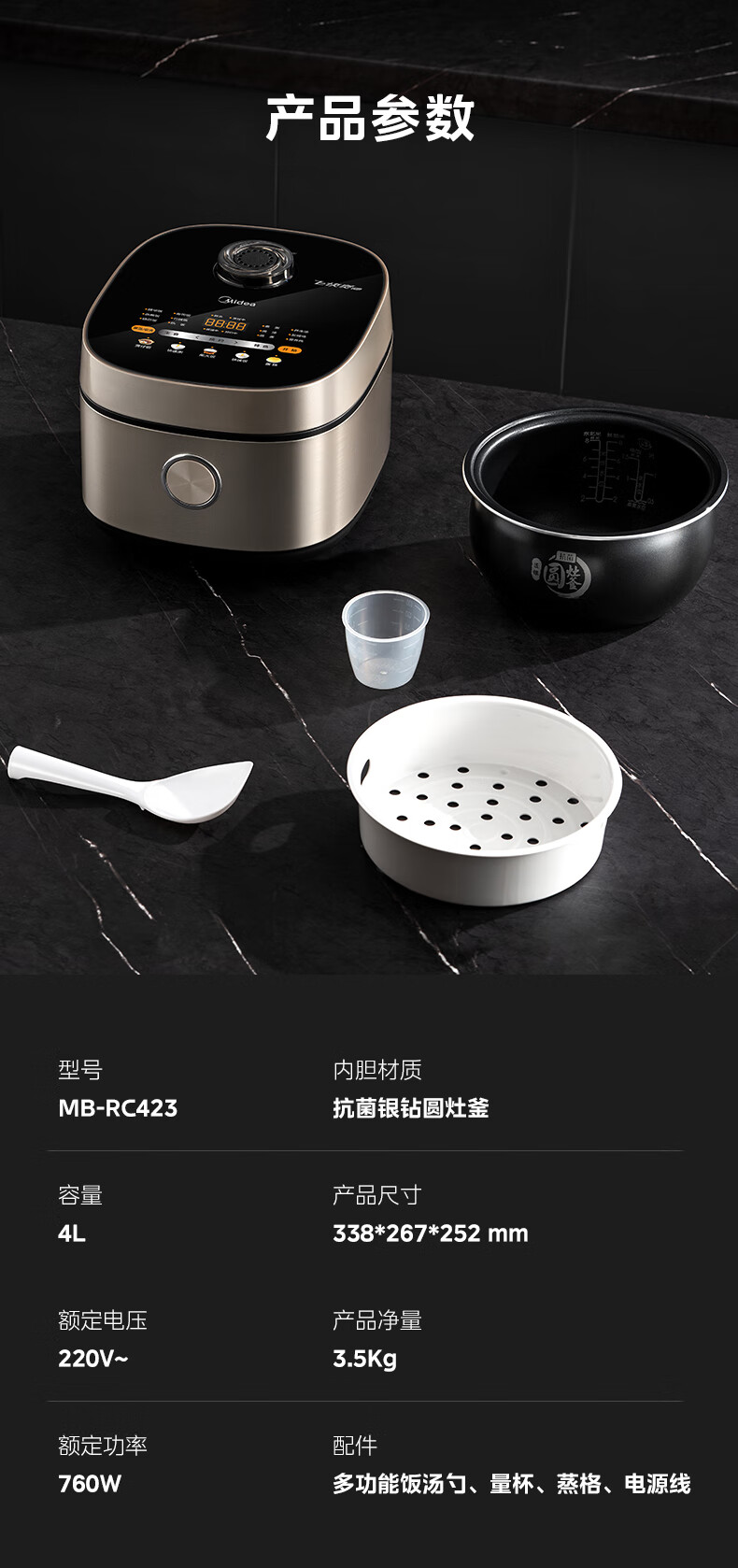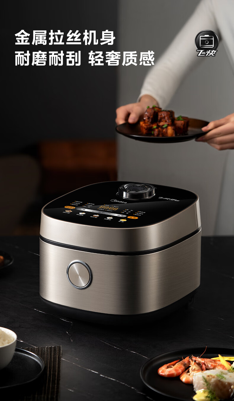 美的(Midea)电饭煲5升大容量电饭锅4-5-6-8-10人家用抗菌青瓷内胆微压柴火饭智能多功能一体多用煮饭粥蛋糕 5L 【抗菌聚能】升级大容量