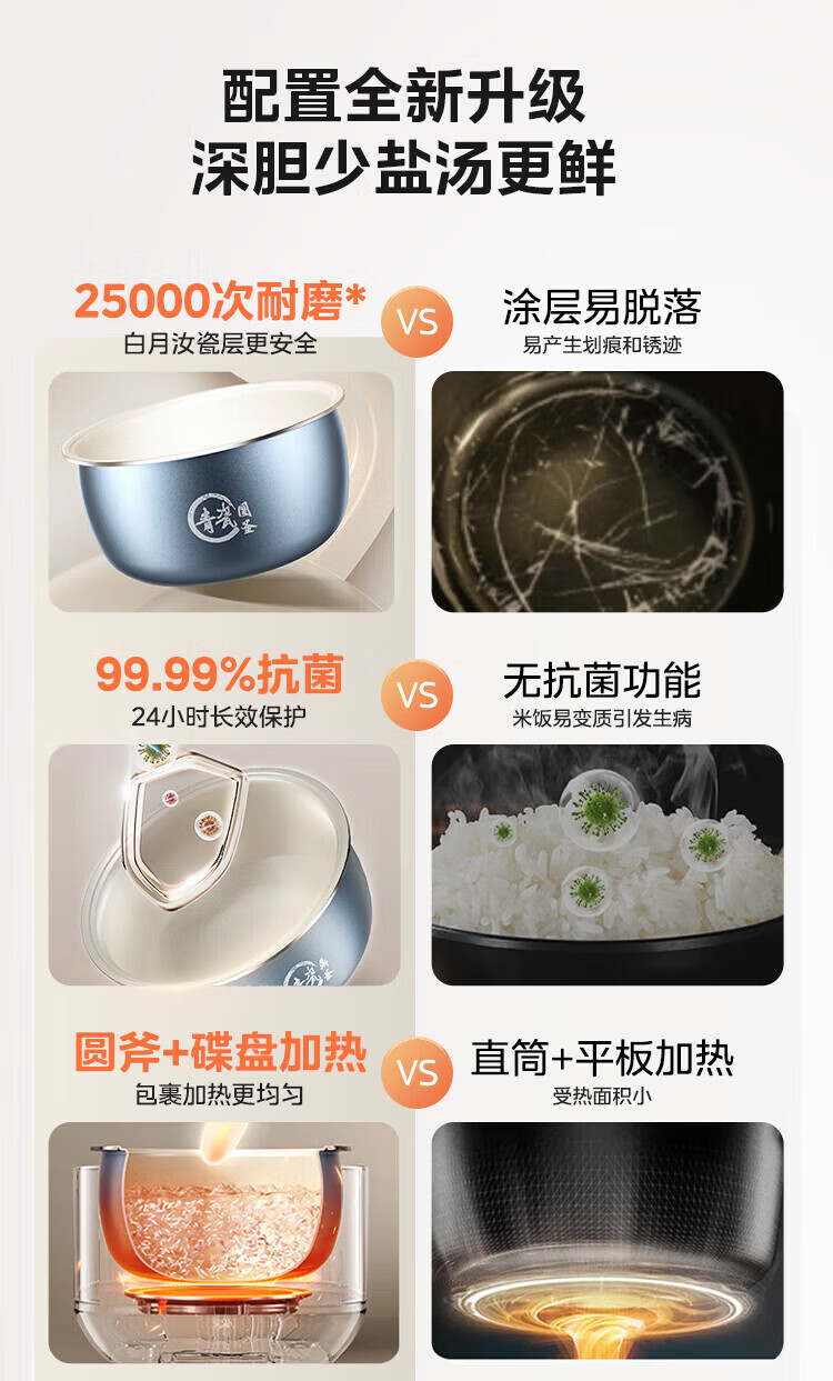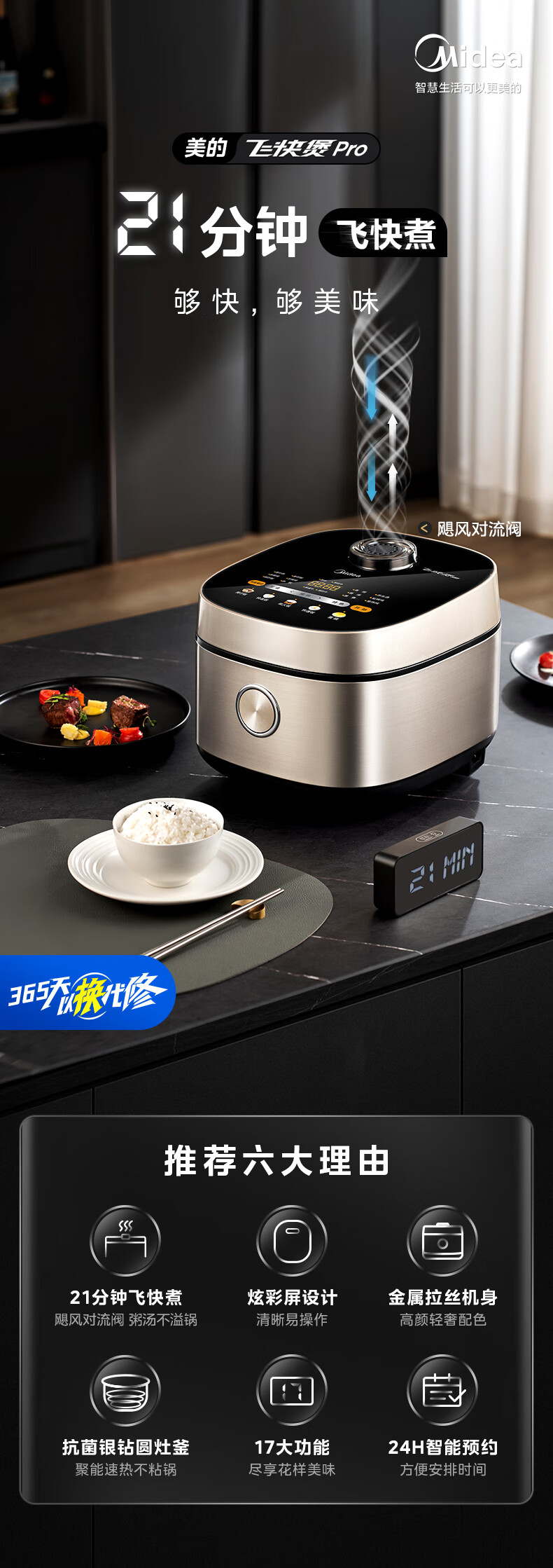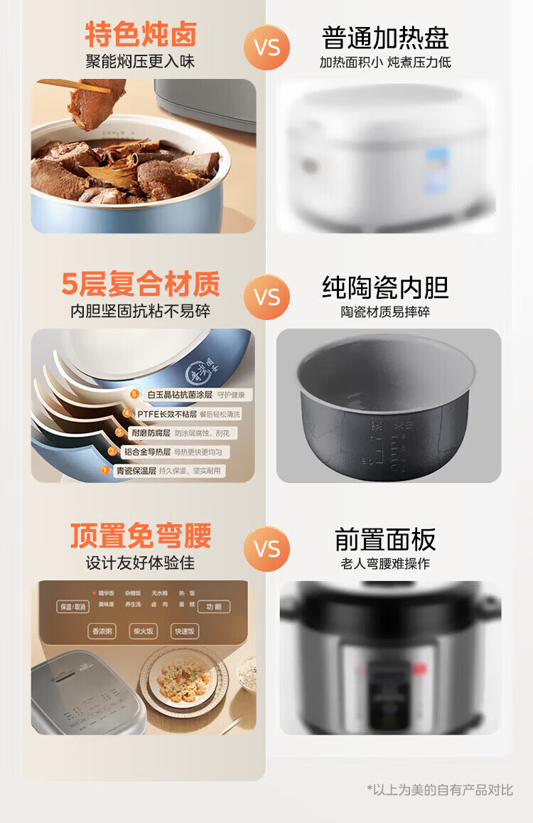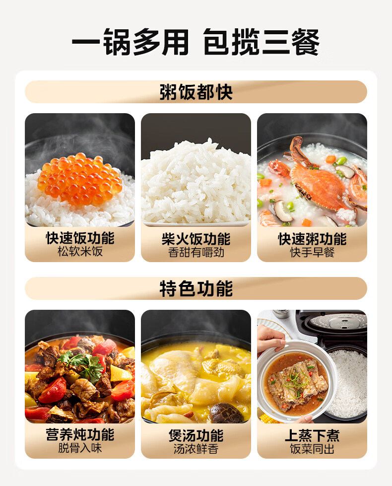 美的(Midea)电饭煲5升大容量电饭锅4-5-6-8-10人家用抗菌青瓷内胆微压柴火饭智能多功能一体多用煮饭粥蛋糕 5L 【抗菌聚能】升级大容量