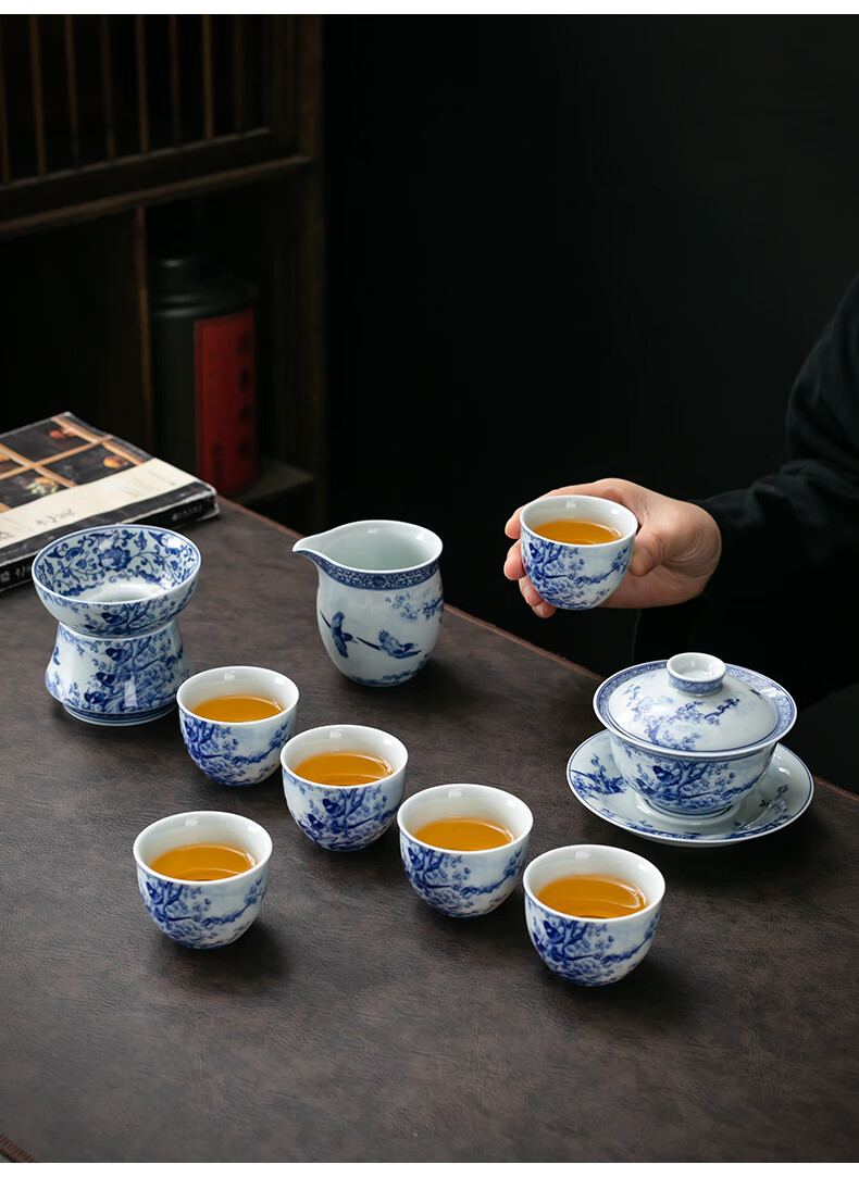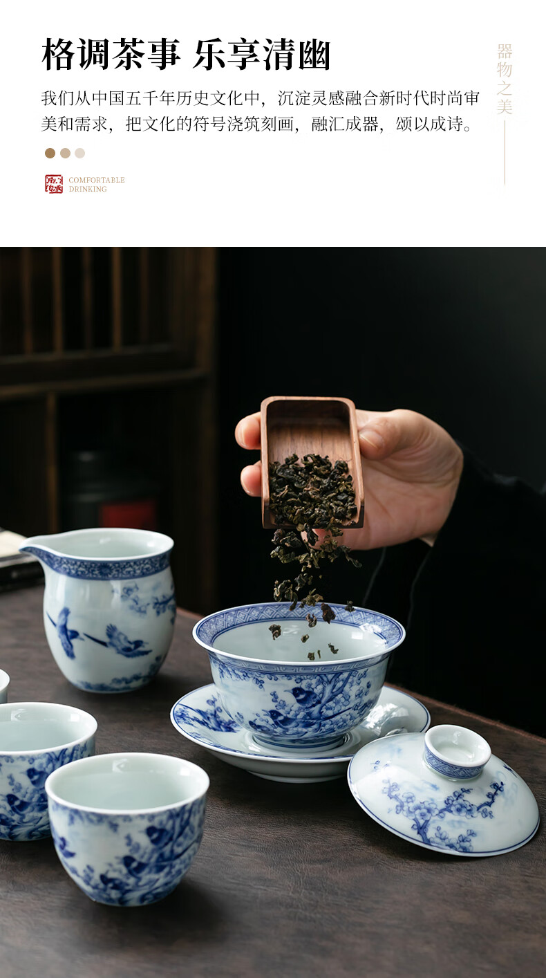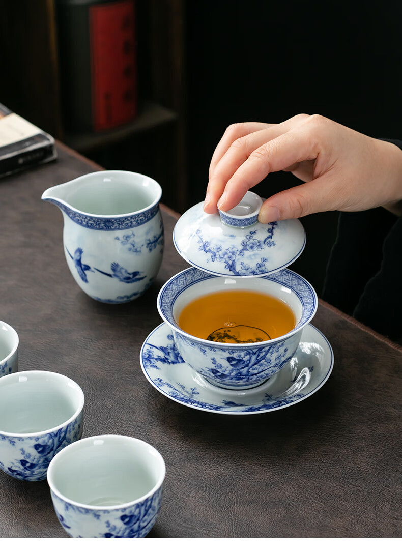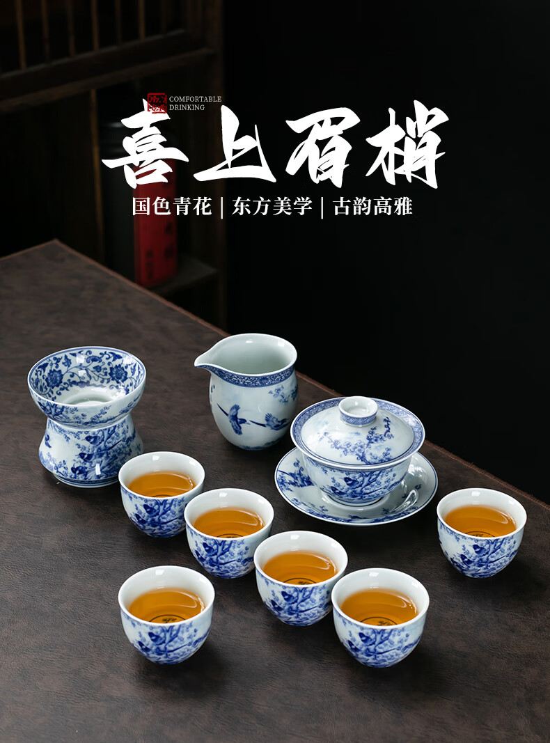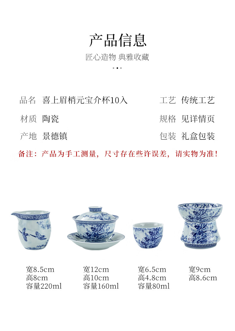 京峰阁 高端茶具整套 喜上眉梢元宝茶杯盖碗套装 轻奢家用办公室送礼物 喜上眉梢元宝盖碗套装 6人饮 10件