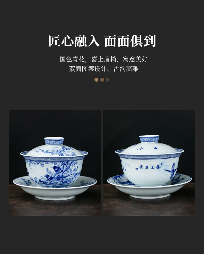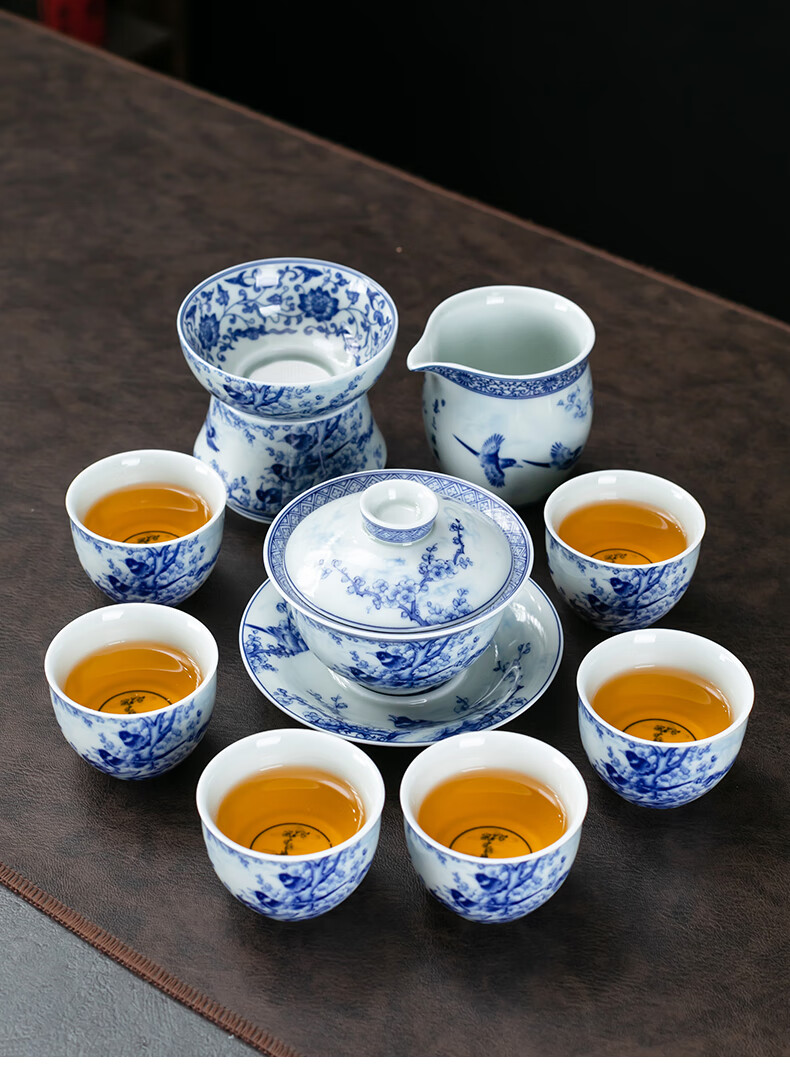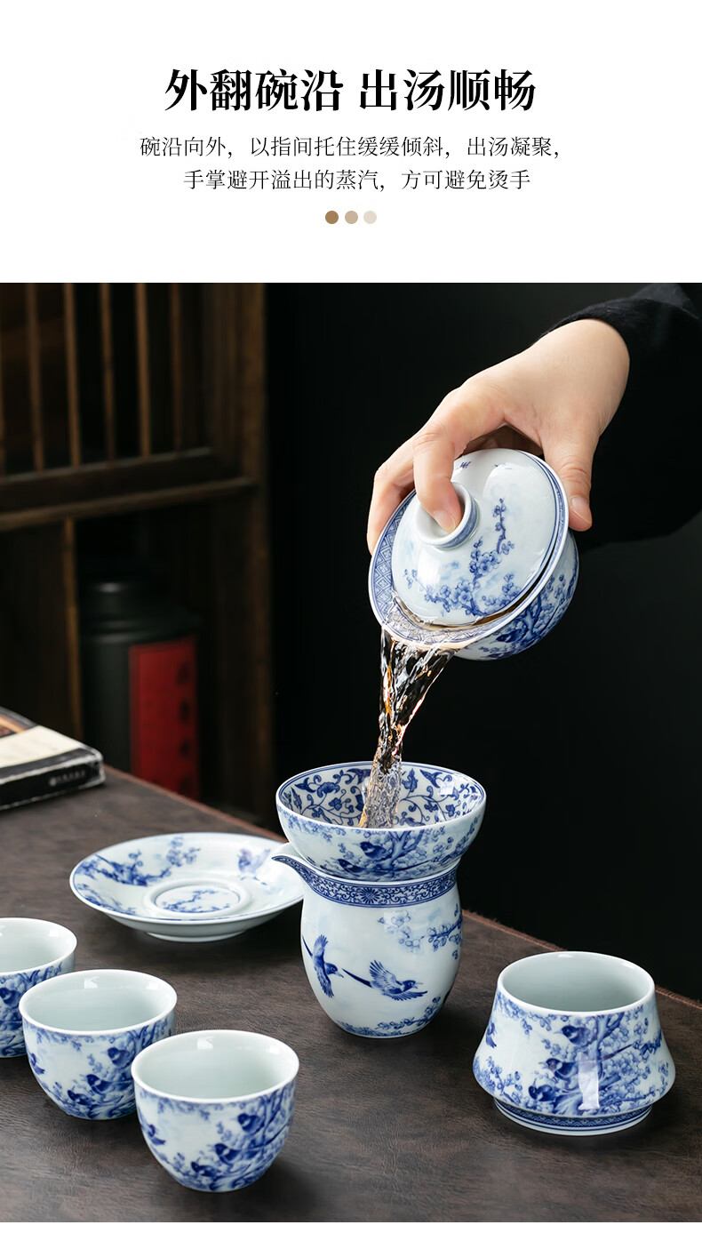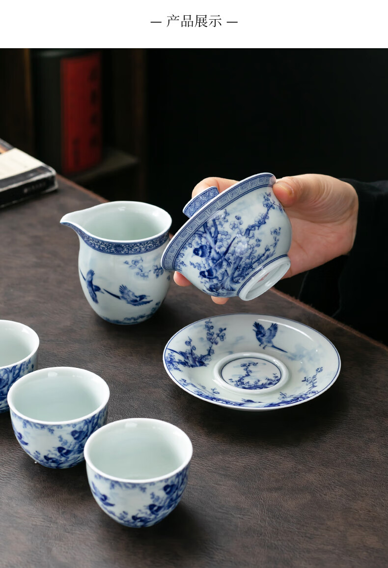 京峰阁 高端茶具整套 喜上眉梢元宝茶杯盖碗套装 轻奢家用办公室送礼物 喜上眉梢元宝盖碗套装 6人饮 10件