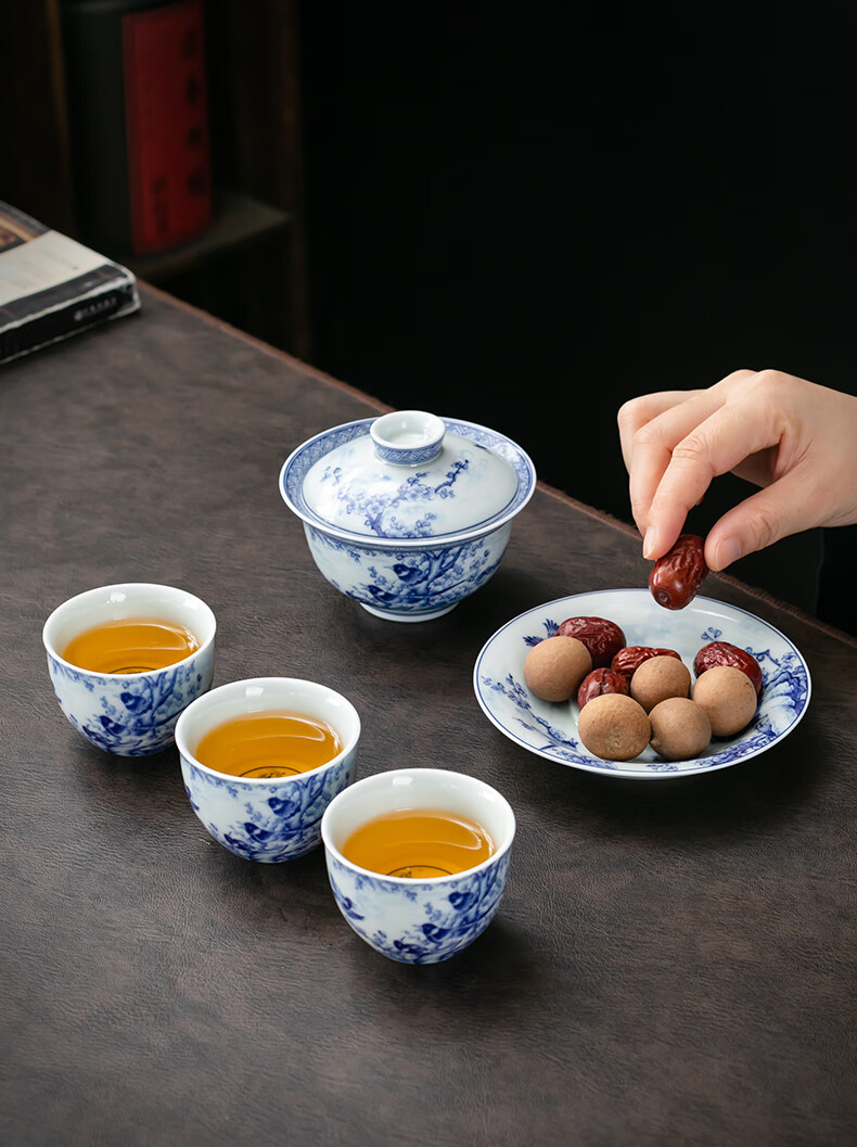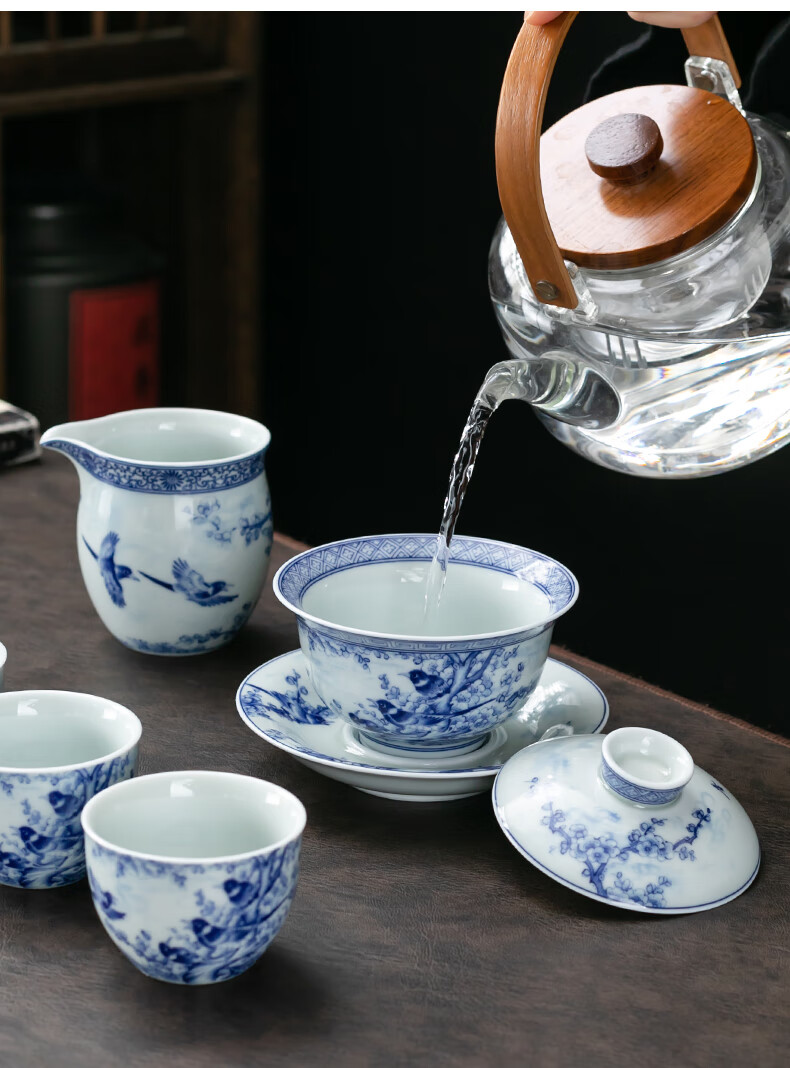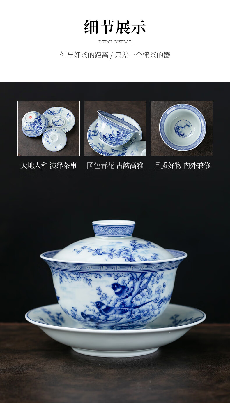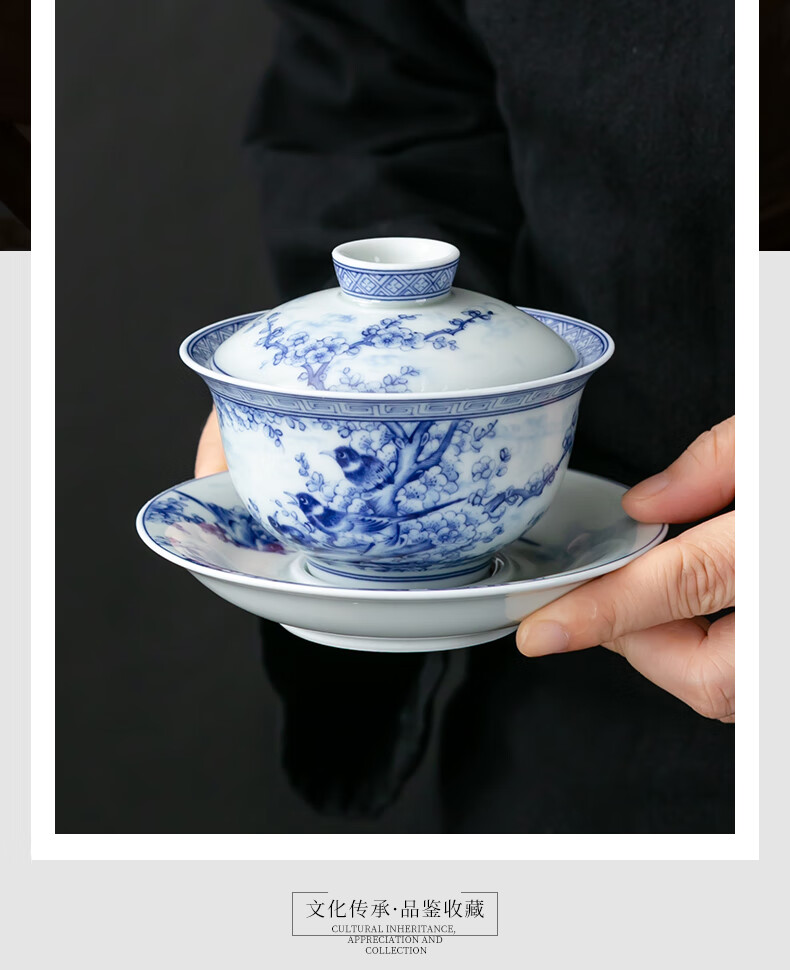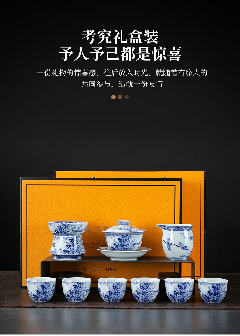 京峰阁 高端茶具整套 喜上眉梢元宝茶杯盖碗套装 轻奢家用办公室送礼物 喜上眉梢元宝盖碗套装 6人饮 10件
