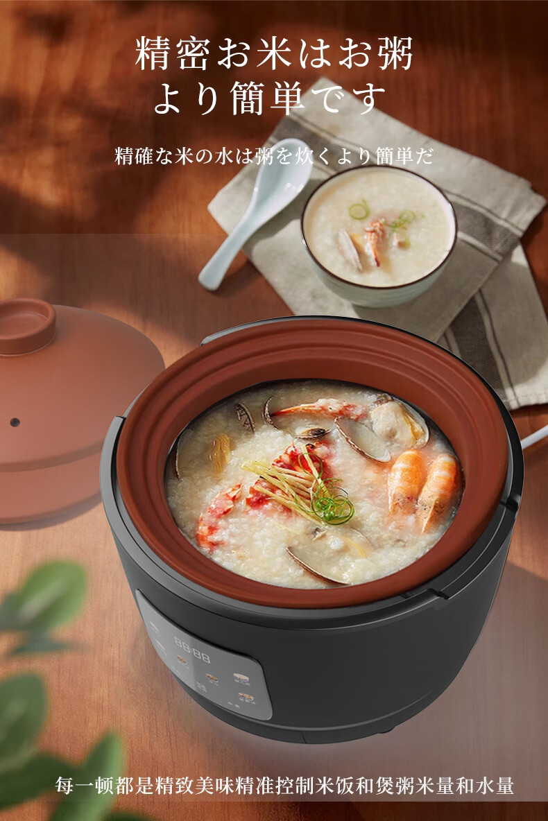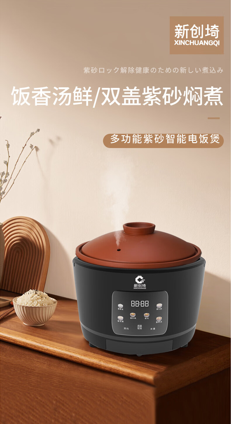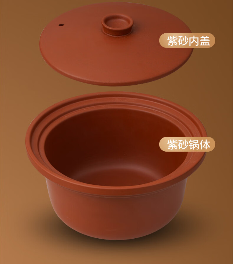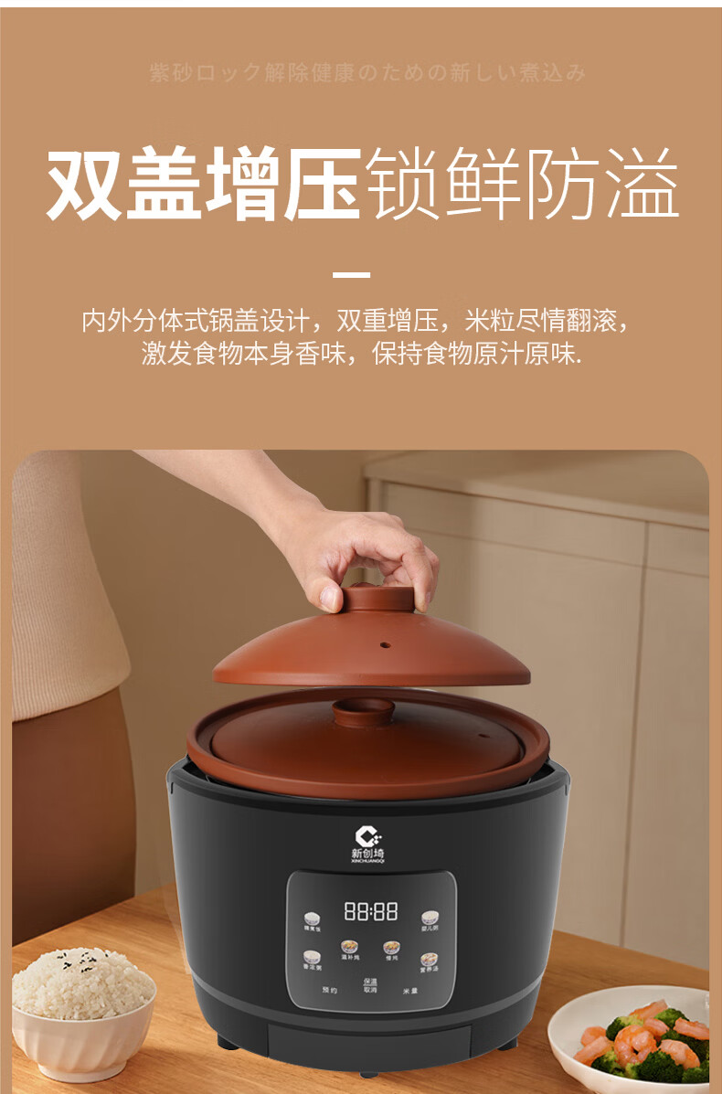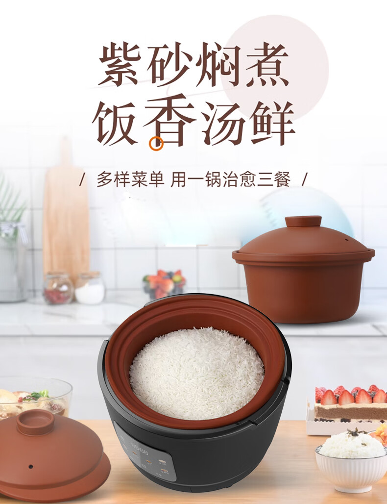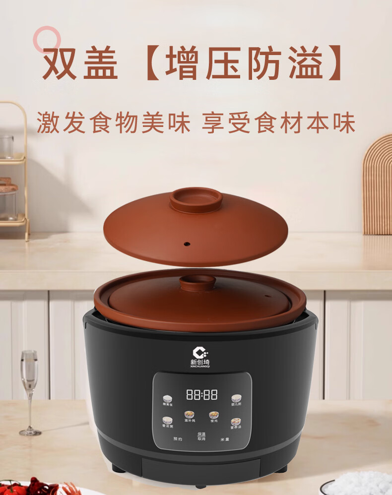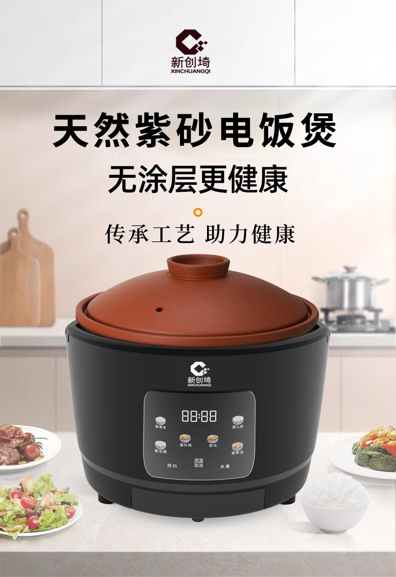 新创埼家用天然紫砂锅电饭煲家用煮饭锅智能预约自动煲汤无水炖肉煲仔饭柴火饭电饭锅 3L 黑色彩屏 3L 天然紫砂双套内胆