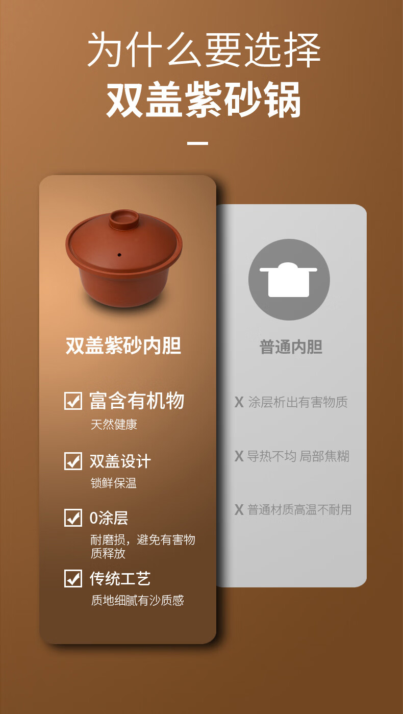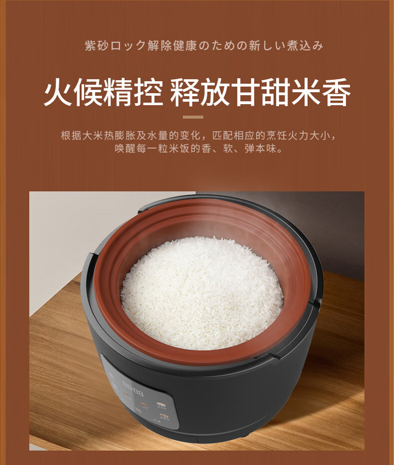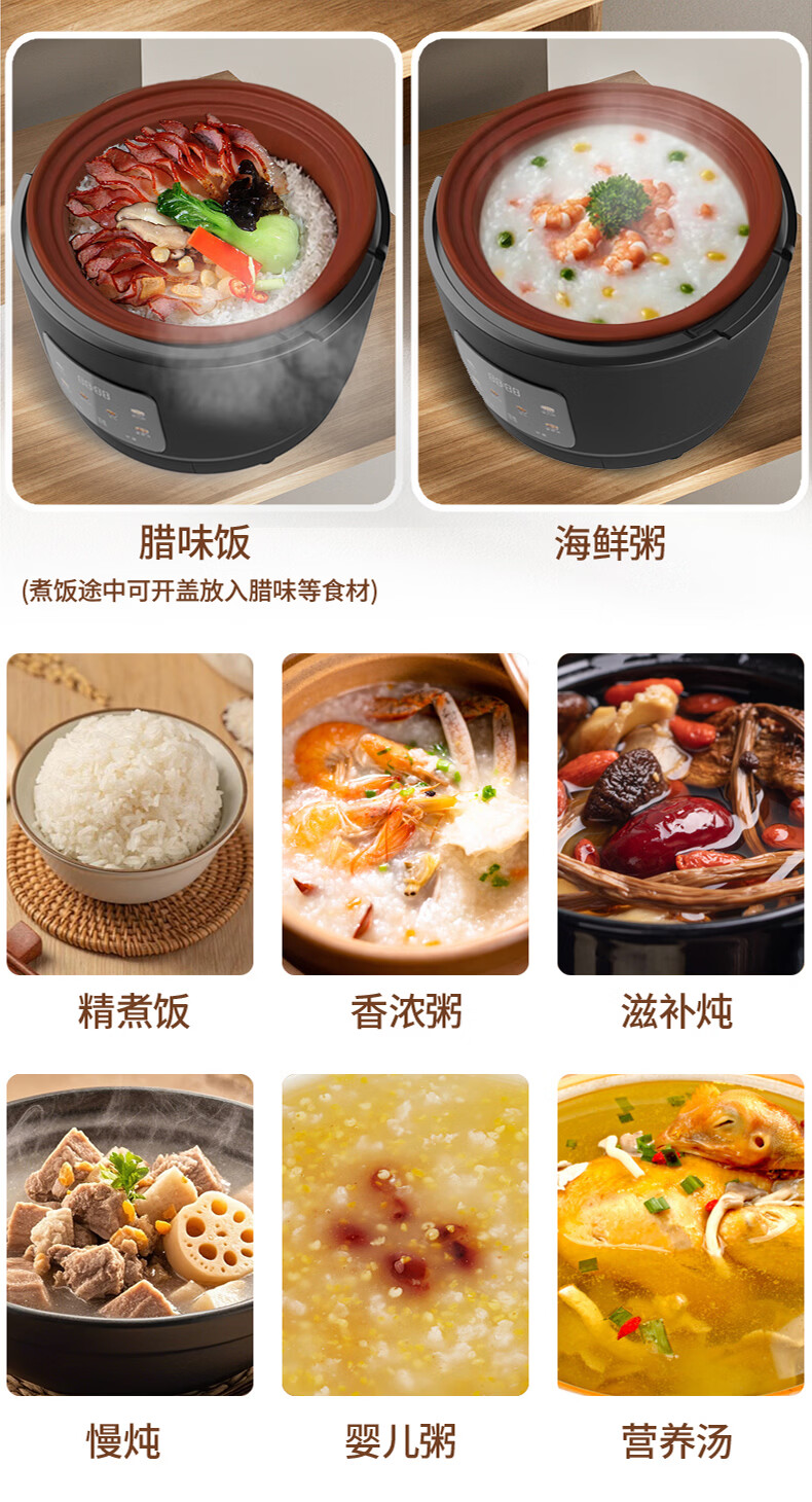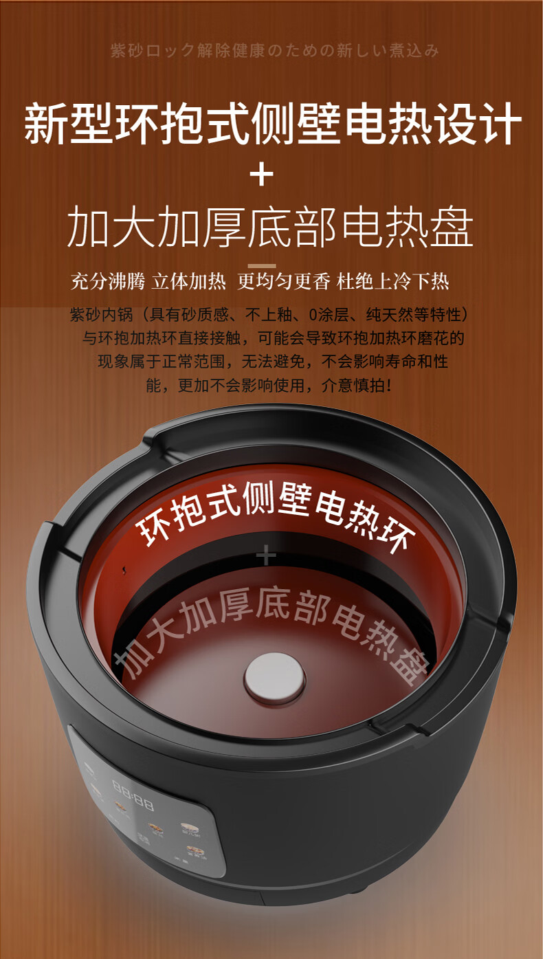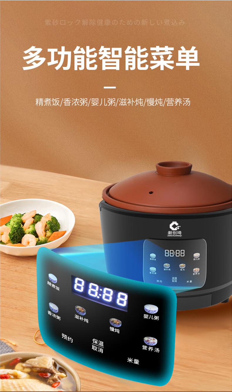 新创埼家用天然紫砂锅电饭煲家用煮饭锅智能预约自动煲汤无水炖肉煲仔饭柴火饭电饭锅 3L 黑色彩屏 3L 天然紫砂双套内胆