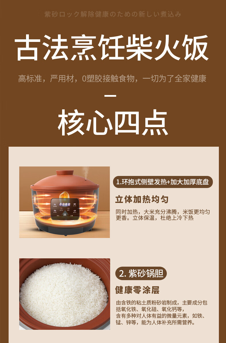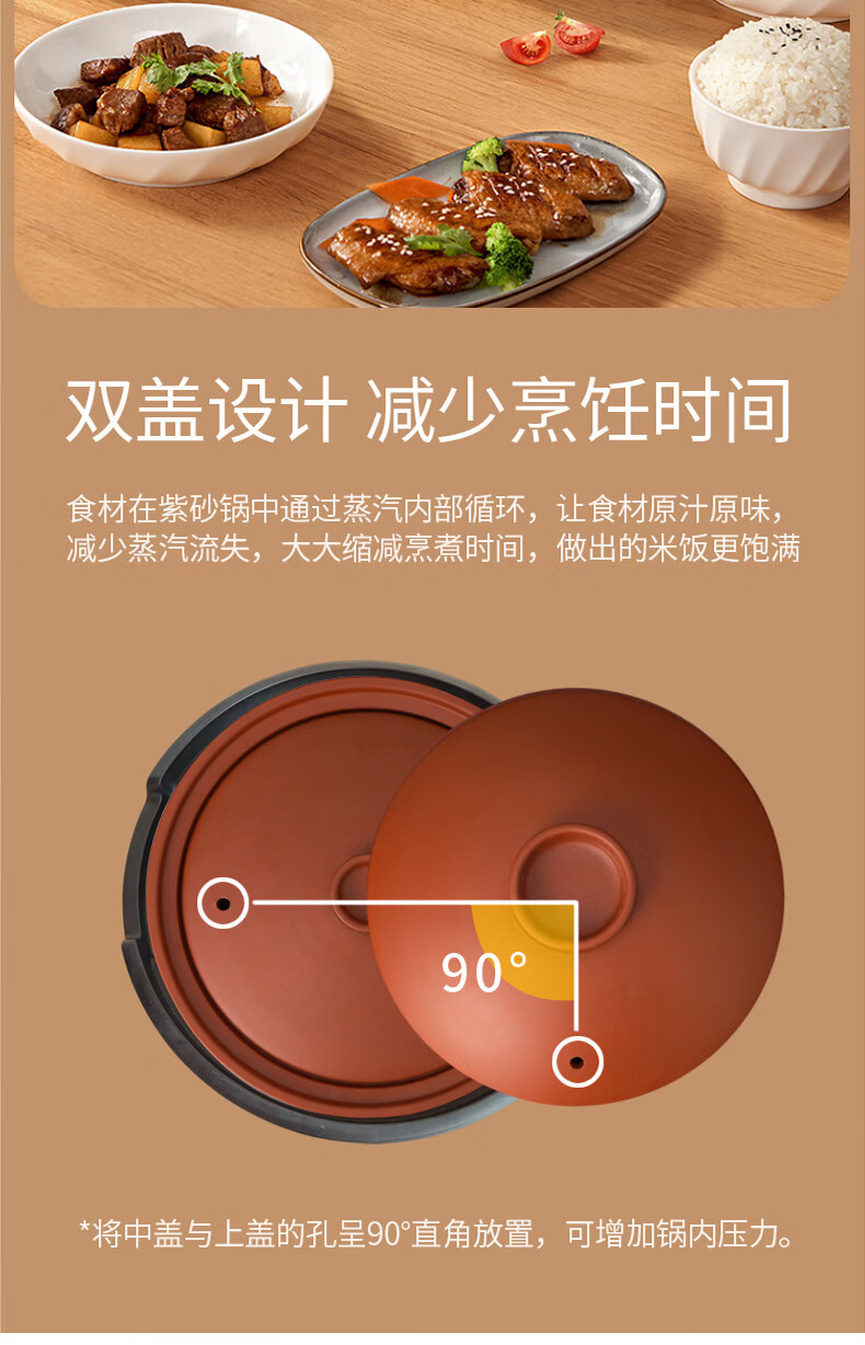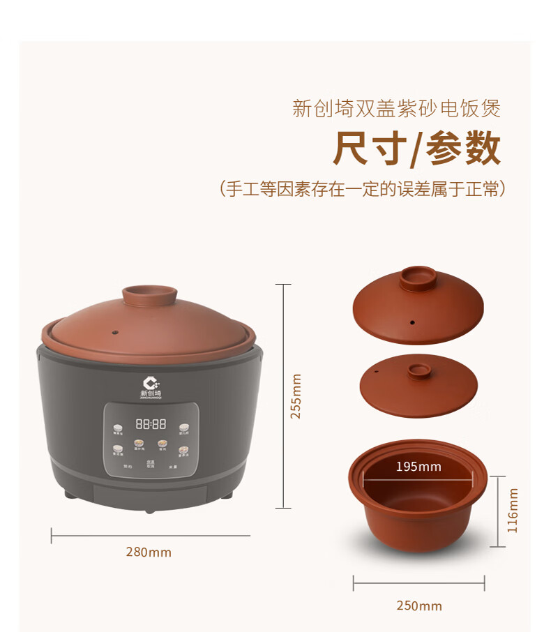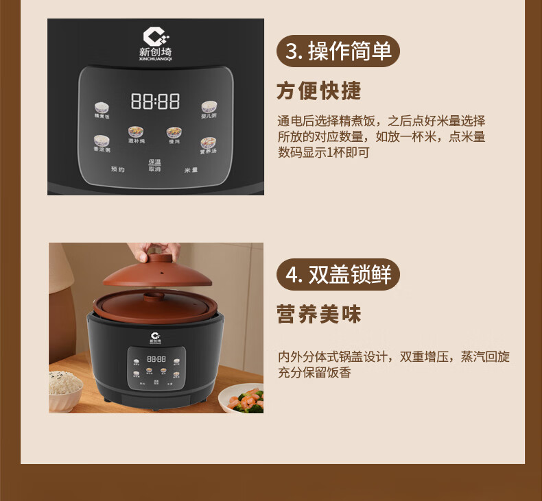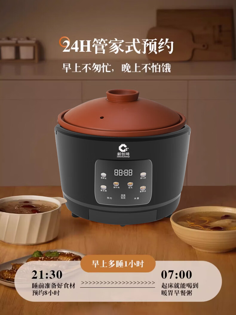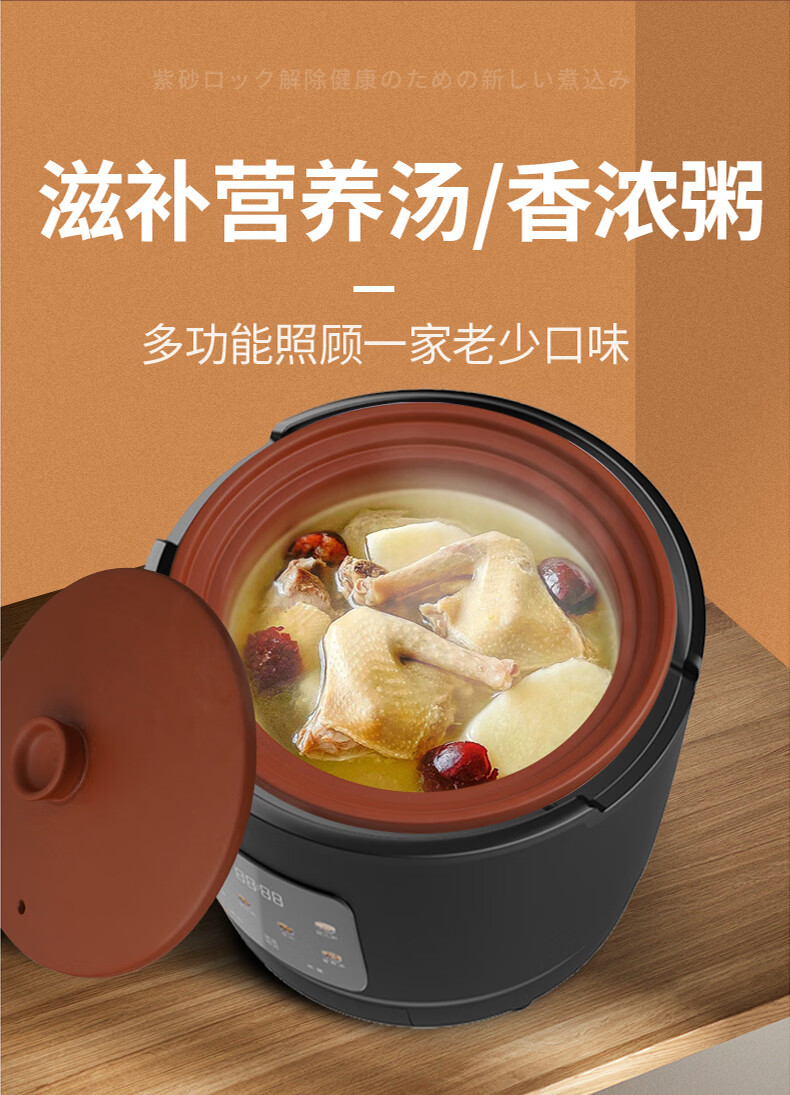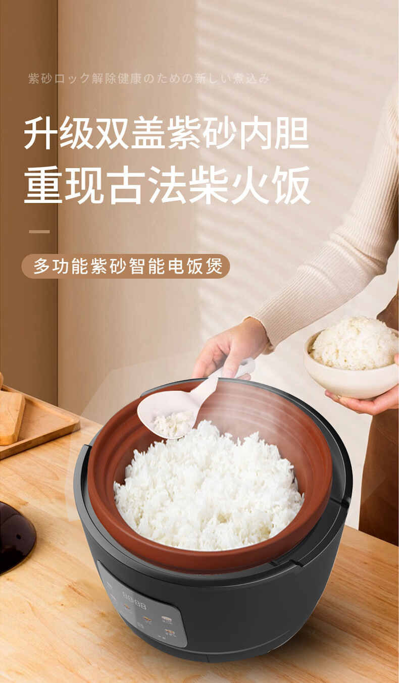 新创埼家用天然紫砂锅电饭煲家用煮饭锅智能预约自动煲汤无水炖肉煲仔饭柴火饭电饭锅 3L 黑色彩屏 3L 天然紫砂双套内胆